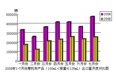 據(jù)海關(guān)提供出口統(tǒng)計(jì)數(shù)據(jù)顯示,由中國(guó)汽車工業(yè)協(xié)會(huì)編輯整理,現(xiàn)將2009年7月份摩托車產(chǎn)品(100mL<排量≤125mL)出口情況分析如下: