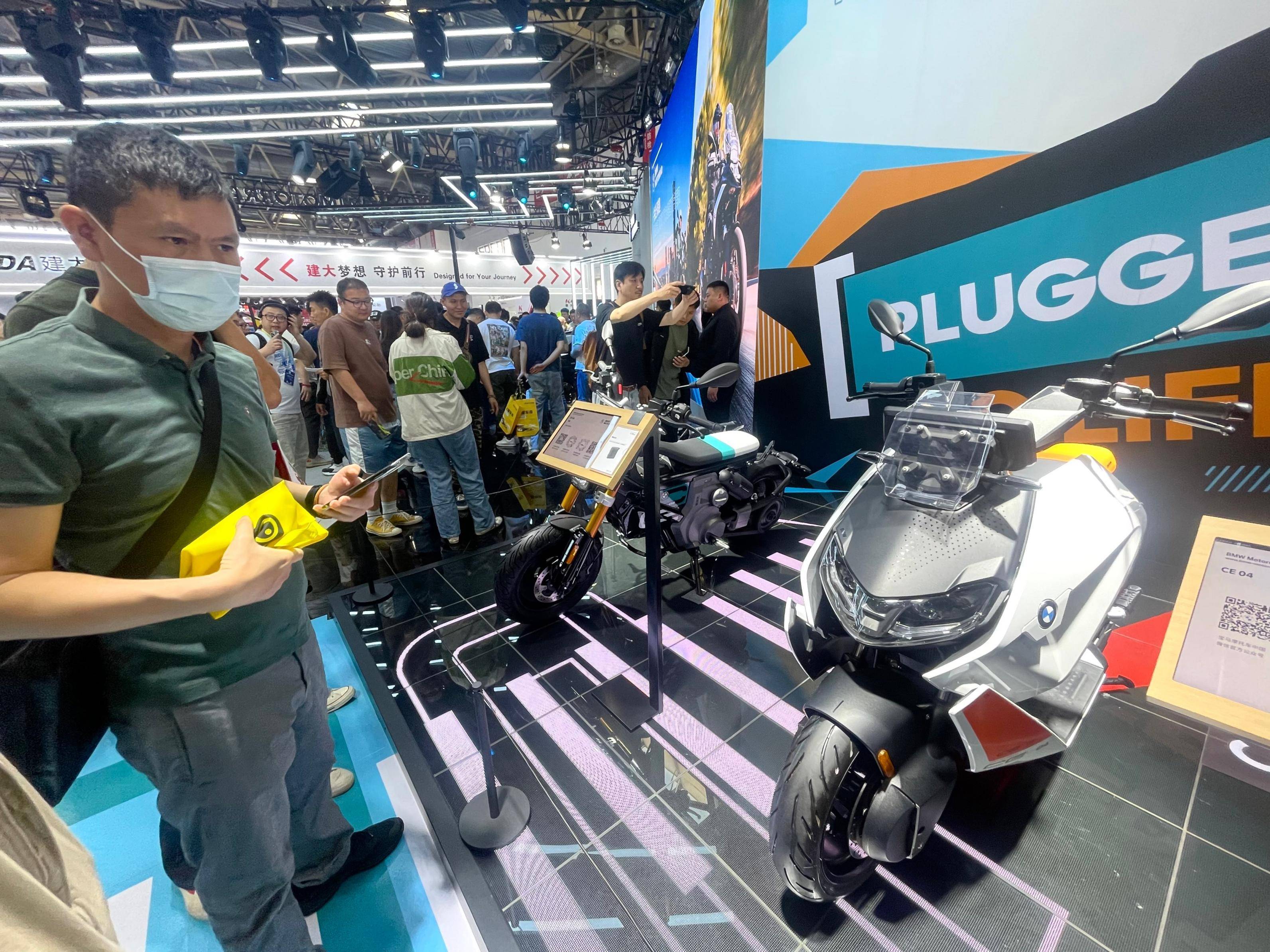 寶馬展臺(tái)一角,車(chē)身輕巧、配色亮眼的全新BMW CE 02車(chē)型四周,許多觀眾正圍觀拍照。整車(chē)重量?jī)H132公斤,搭配大尺寸碟式輪轂,還搭載倒車(chē)輔助、盤(pán)式制動(dòng)器、前輪防抱死系統(tǒng)、自動(dòng)穩(wěn)定控制、動(dòng)能回收穩(wěn)定控制系統(tǒng)等智能化技術(shù)。“這么看來(lái)騎摩托車(chē)也不算太難。”兩位姑娘瞬間“種了草”,相約著今年一起考個(gè)摩托車(chē)駕照。