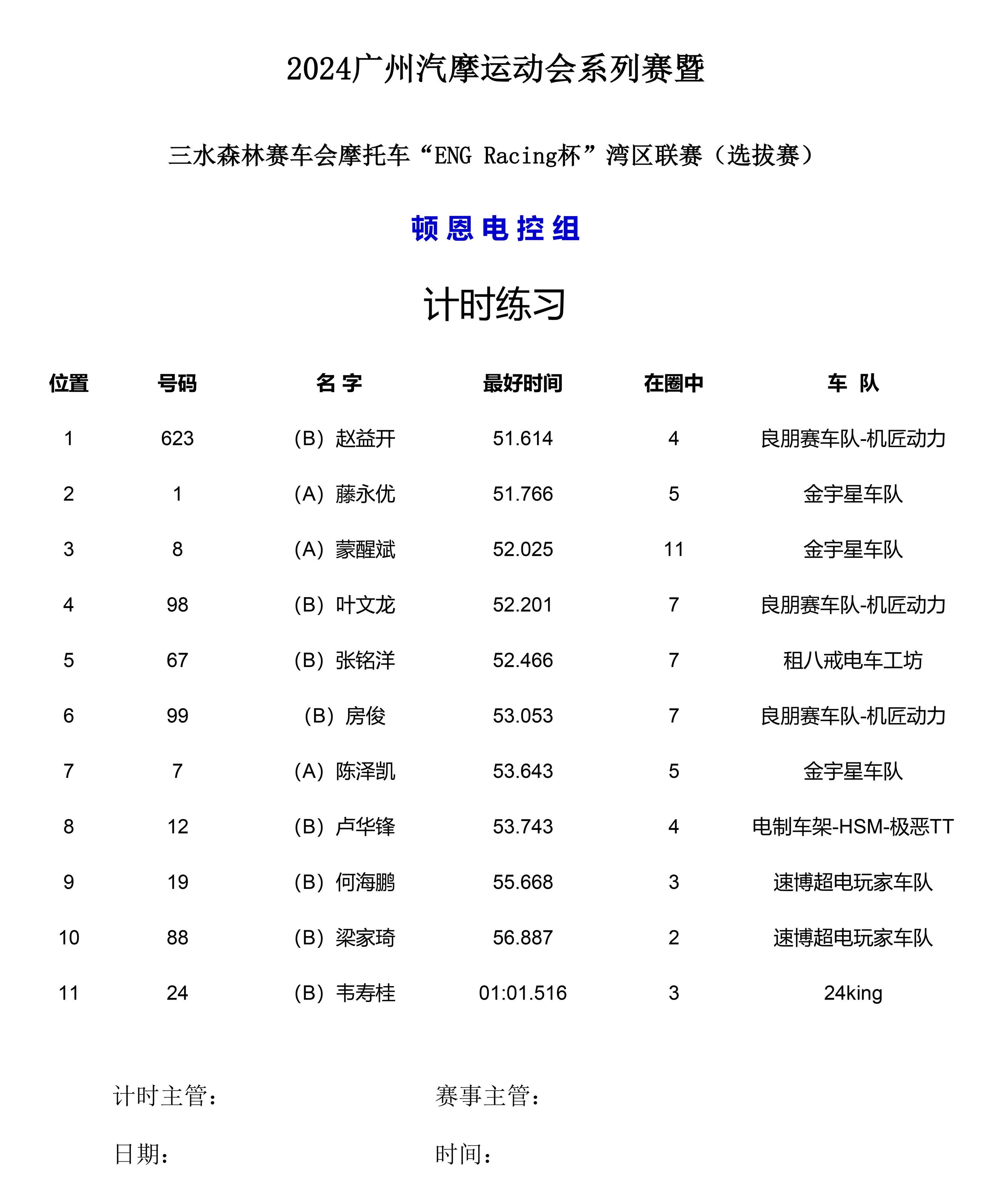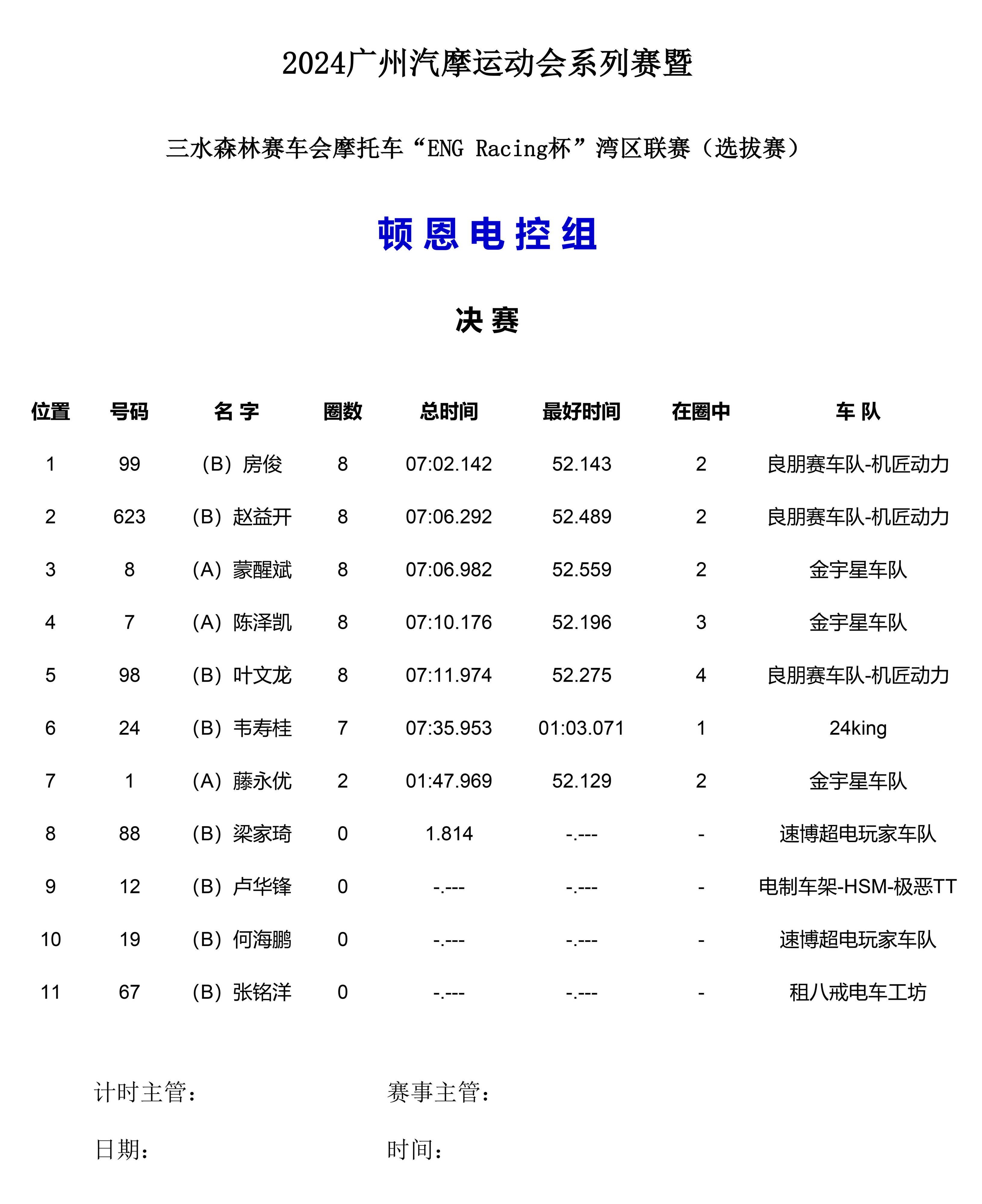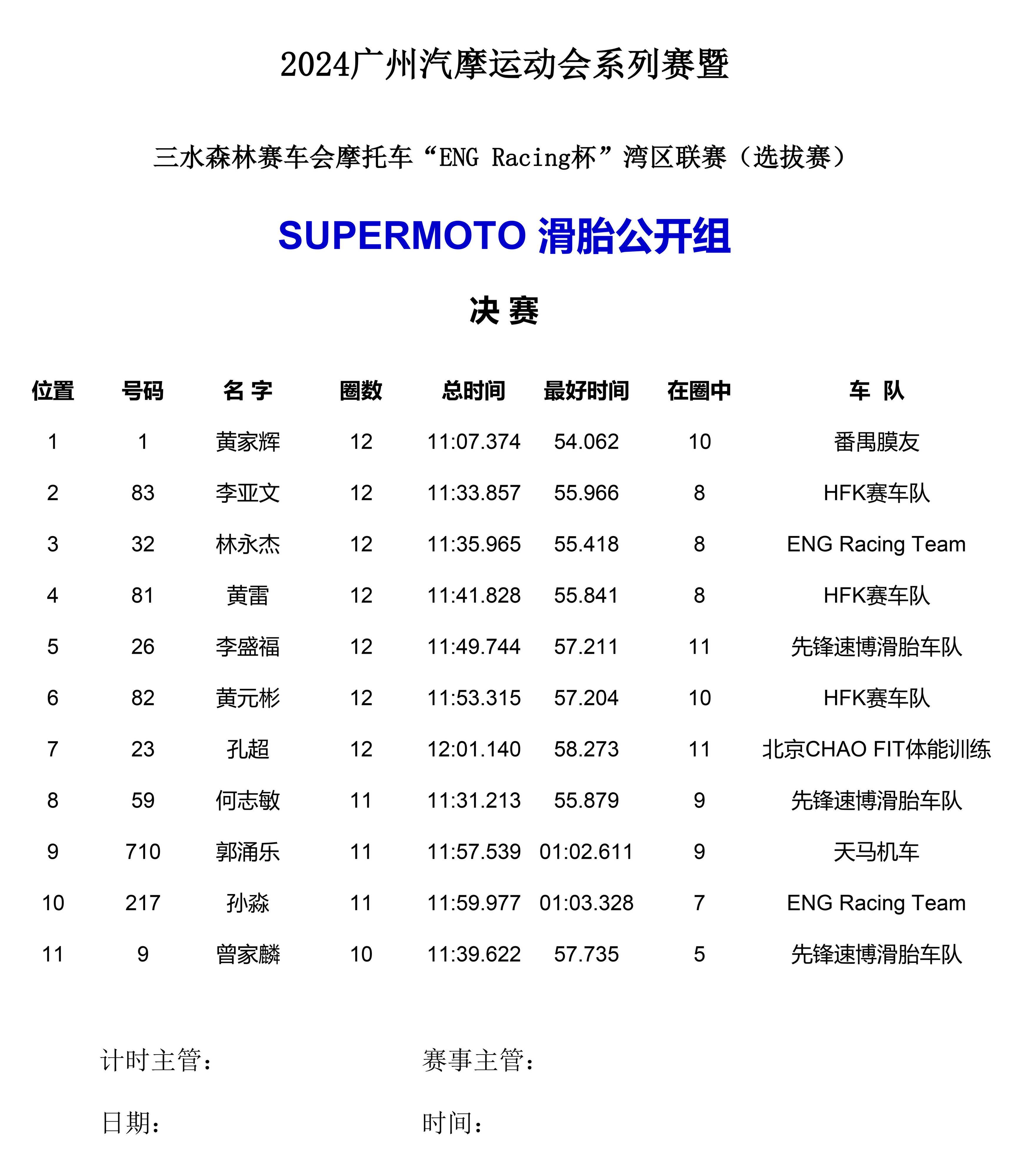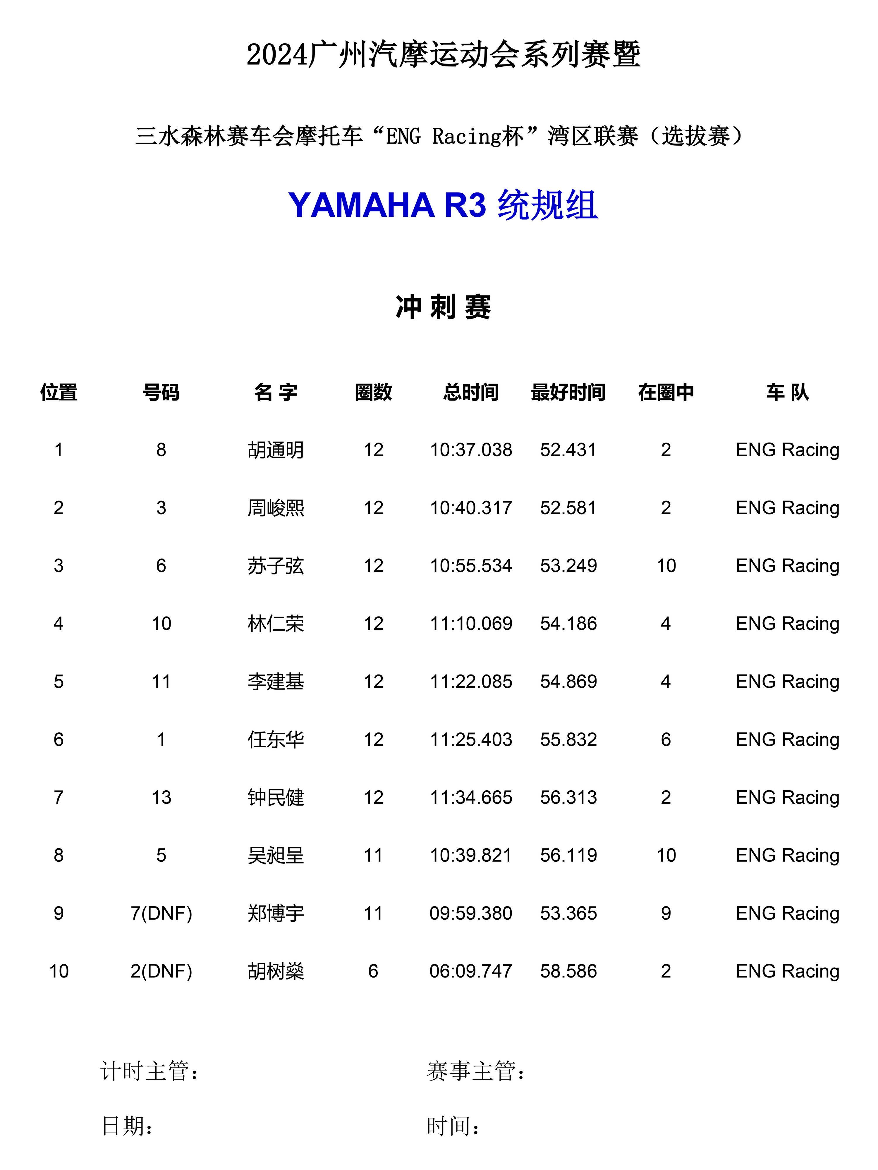 下面的圖片,2024 廣州汽摩運動協(xié)會系列賽暨三水森林賽車會摩托車 ENG Racing 杯灣區(qū)聯(lián)賽第一回合、各競賽組別成績: