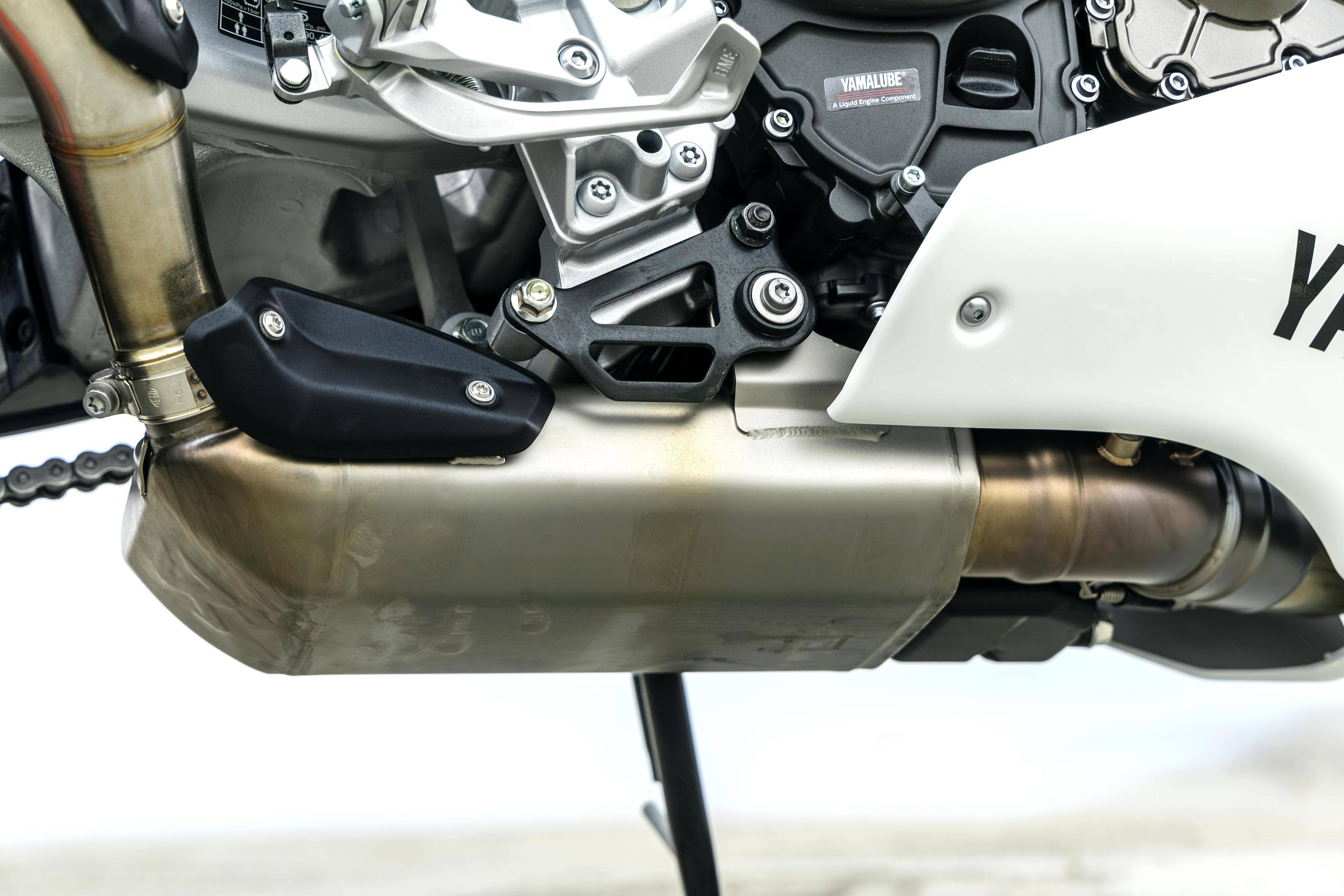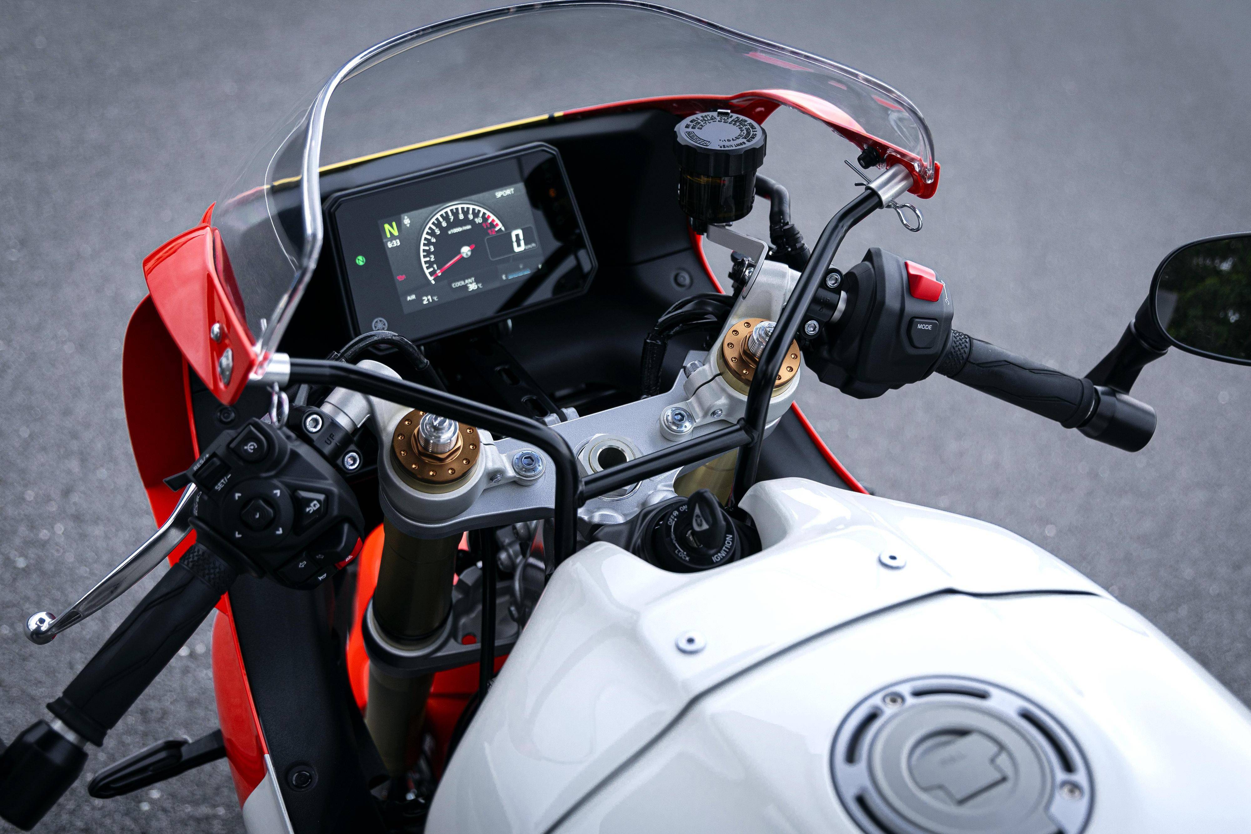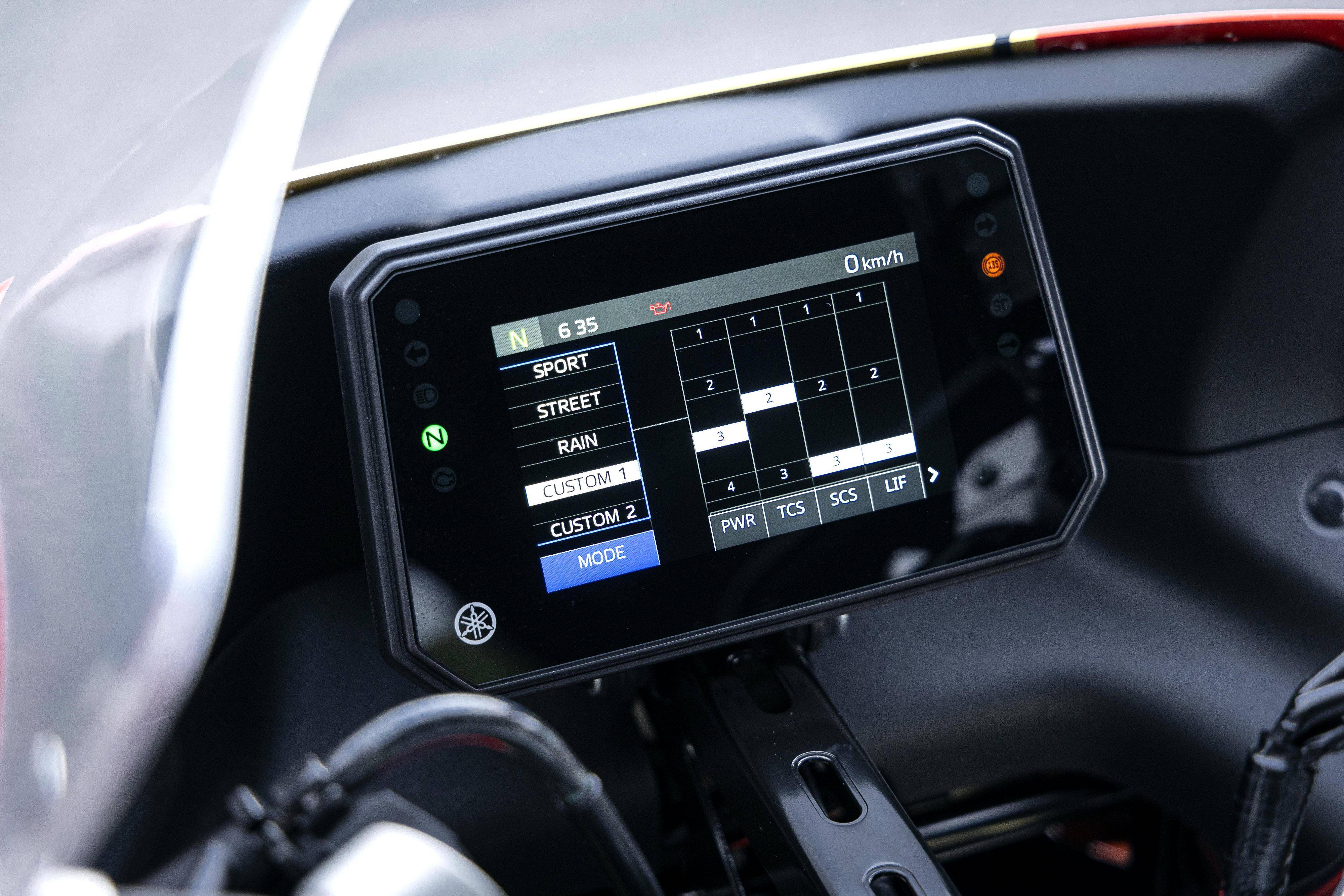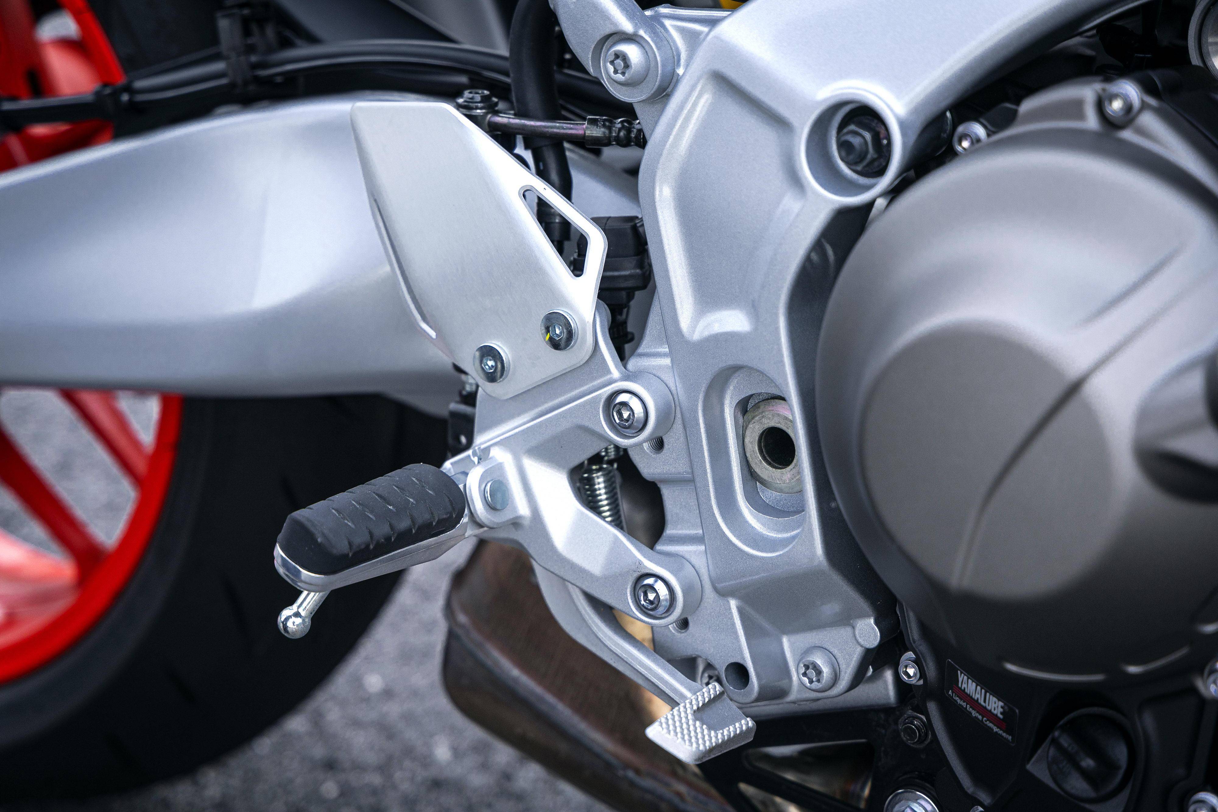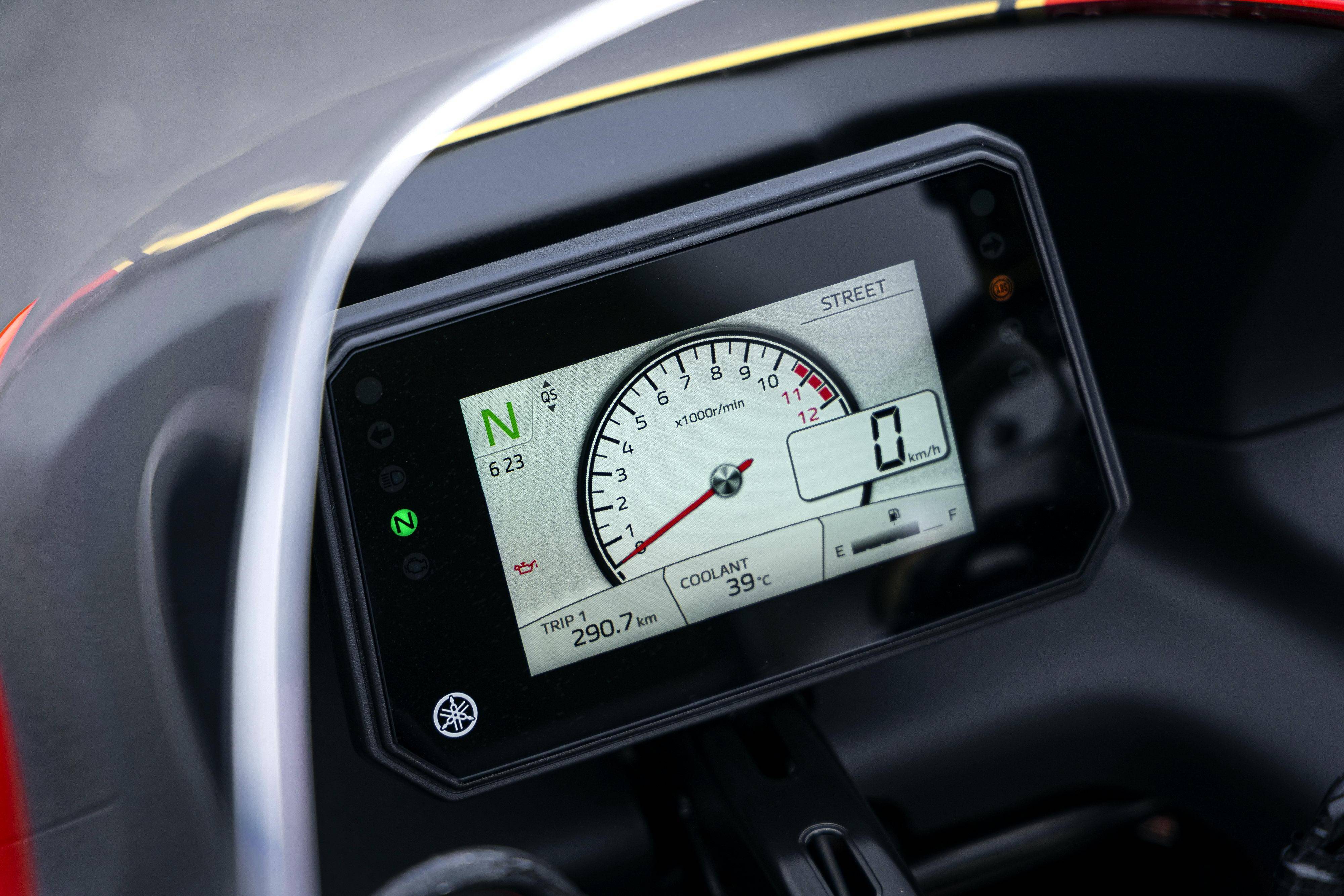 車體采用一副 Deltabox 風格的鋁合金制雙翼樑鉆石型車架;KYB 配套的懸掛系統(tǒng),倒立式前叉具有可完全調(diào)節(jié)預(yù)載、壓縮阻尼以及回彈阻尼的功能,多連桿式聯(lián)接的單筒后減震,采用了前傾式的安裝,同樣具有全可調(diào)功能;對應(yīng)當時跑車的騎行風格,換裝了鋁合金制的賽車分離式車把;采用了更厚的座椅;數(shù)字式的儀表板等。電子輔助駕駛控制系統(tǒng)方面,內(nèi)置能夠向 ECU 發(fā)送實時數(shù)據(jù)的六軸 IMU,配備集成了可選騎行模式、發(fā)動機動力輸出模式的 YRC(Yamaha Ride Control,Yamaha 騎行控制)駕駛輔助系統(tǒng),標配了快速換檔系統(tǒng)。