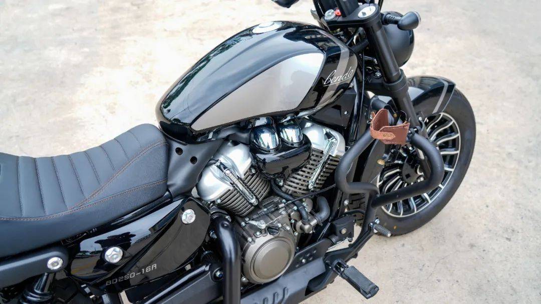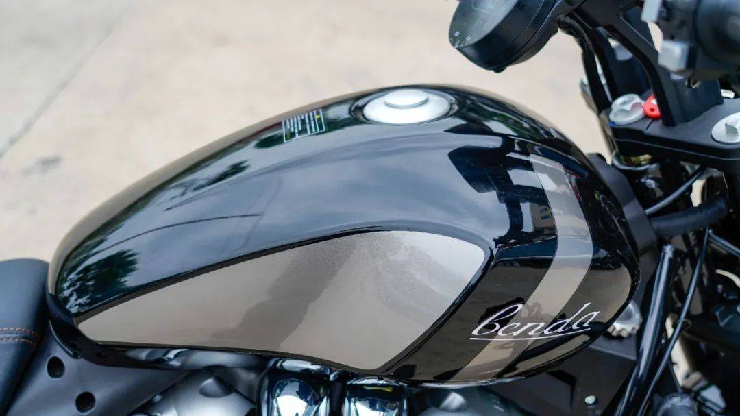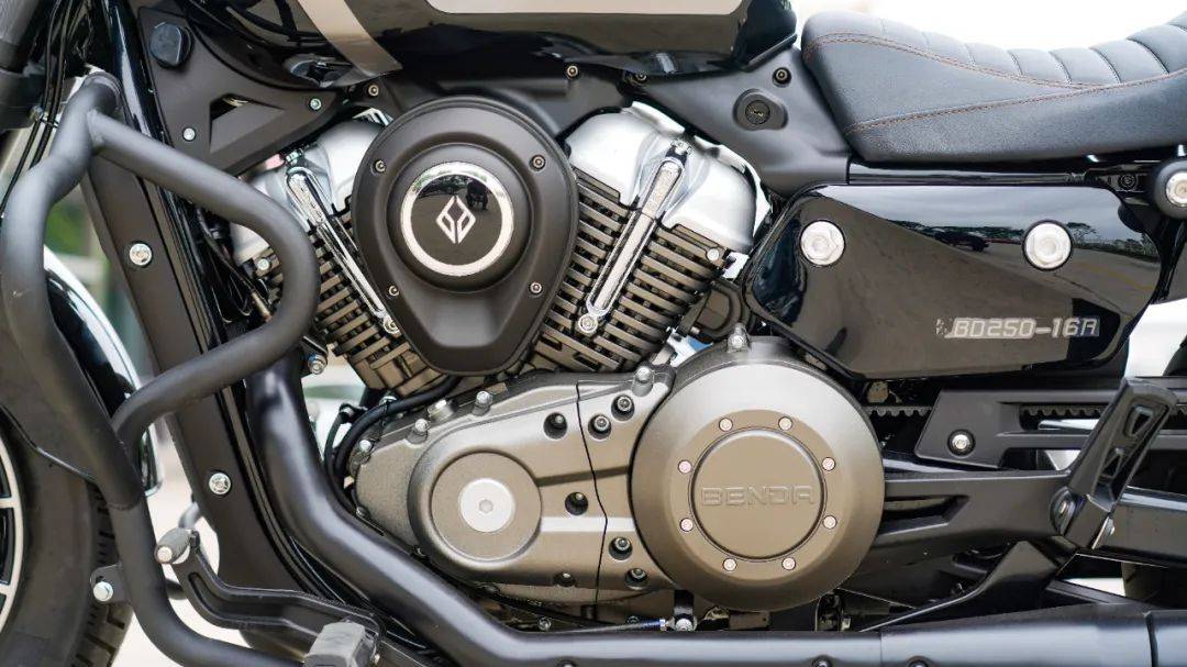 作為新手選擇的入門級巡航車,灰石250的外觀延續(xù)了奔達(dá)的家族化設(shè)計,貓牙造型的大燈,黑色輪廓內(nèi)置日行燈具有很高的辨識度,尾燈的設(shè)計與車尾融為一體,時尚且動感十足,雖然是250排量的車型,但V2引擎的布局,使得車身的造型飽滿,有一種超越排量的視覺,細(xì)節(jié)進(jìn)行了優(yōu)化與調(diào)整,油箱側(cè)的的BENDA字樣與空濾蓋的品牌logo很有質(zhì)感,好看且耐看,單論設(shè)計這塊兒,奔達(dá)的審美一直在線,如大家說的那樣“你永遠(yuǎn)可以相信奔達(dá)的設(shè)計師”。細(xì)節(jié)處理方面肉眼可見的進(jìn)步,整車漆水飽滿亮澤,整體看起來很精致,引擎外表經(jīng)過特殊處理,采用一致性良好的鍍鉻螺絲,外觀的質(zhì)感上加分不少,可以看出,奔達(dá)新晉產(chǎn)品的細(xì)節(jié)打磨日漸成熟。動力平臺動力方面采用奔達(dá)自研的V型水冷雙缸引擎,最大馬力來到了25.8匹,最大功率19kw/9000rpm,最大扭矩25N.m/5500rpm,大家也一定注意到了,灰石250的功率相較于灰石300降低了3.5kw,最大扭矩變化很小的同時,將扭矩的輸出提前了1500rpm,好處顯而易見,扭矩的爆發(fā)更提前,更適合中低轉(zhuǎn)速起步,更貼近新手的駕駛習(xí)慣,這是其用心的地方。同時這臺V2引擎特意在缸體位置做出了頂桿機(jī)的造型,標(biāo)準(zhǔn)的鍍鉻件在視覺觀感上非常奪目,確實(shí)很帥,讓人產(chǎn)生了一眾哈雷大排量引擎的錯覺,外觀精致飽滿的同時,更是向經(jīng)典致敬。燈光及儀表燈光部分全部采用LED燈源,包括內(nèi)嵌奔達(dá)品牌新Logo的圓形大燈,圓形的前后轉(zhuǎn)向燈,尾燈設(shè)計為內(nèi)嵌式燈帶,與后座融為一體,更顯時尚,配合原廠150的寬胎,質(zhì)感以及協(xié)調(diào)性良好,視覺效果很吸引人。儀表方面與金吉拉300,灰石300保持一致,依舊是反置式圓形液晶儀表,轉(zhuǎn)速,時速,TC,ABS,數(shù)據(jù)顯示齊全,日間騎行時有一定的反光,清晰度表現(xiàn)一般。灰石250與300保持一致的是同樣采用大直把的設(shè)計,同樣經(jīng)典的手把后視鏡,帥氣值+1,手把按鍵依然沿用灰石300上的通用按鍵,按壓質(zhì)感效果都屬于良好水準(zhǔn),是非常成熟的按鍵總成。