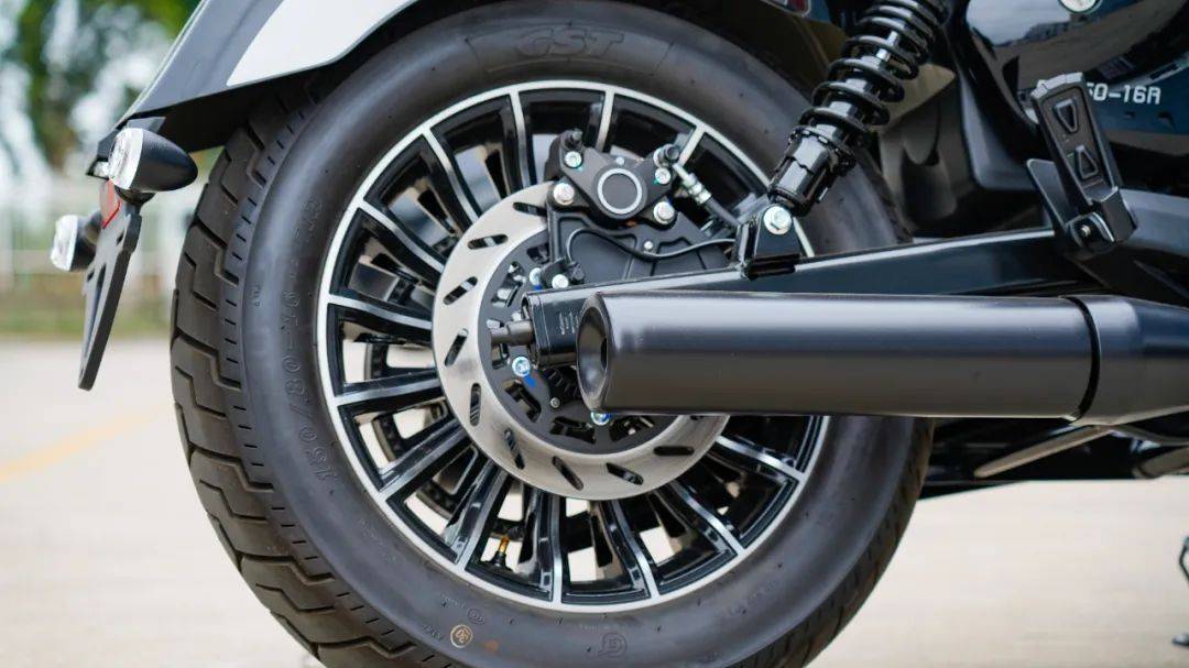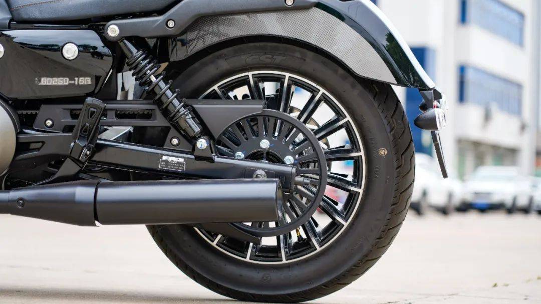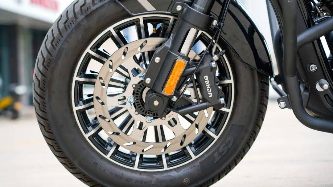 行走系統(tǒng)剎車規(guī)格上前對向四活塞、后對向雙活塞,博世第十代前后雙通道ABS,搭配TCS,在目前的250級別中屬于主流水準(zhǔn)。避震器采用前倒立式減震,后雙槍可調(diào)式減震,據(jù)工廠反映針對不少用戶反饋的避震偏硬的情況,已經(jīng)更換了相對舒適減震,具體表現(xiàn)期待接下來的動態(tài)測試。輪胎方面與灰石300保持一致,CST品牌GT胎,前輪130/90-16,后150/80-16同規(guī)格的寬胎讓其巡航的風(fēng)格更為徹底,外觀是絕對到位了,與之相隨的前輪的指向性以及彎道的快速傾倒受到一定的損失,但為了顏值,這也是不可避免的事情。