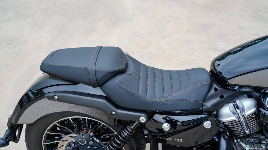 傳動部分標(biāo)配皮帶,巡航范經(jīng)典配置,騎行安靜,免維護(hù),當(dāng)然后期換皮帶時成本也更高。細(xì)節(jié)處理部分,灰石250原廠配備15.5L的容量,同級中屬于較大的油箱,可以保證不錯的續(xù)航水準(zhǔn),同時坐墊前端有所收窄,更利于落腳。坐墊采用分體式設(shè)計,主駕駛的面積寬大,實(shí)際的坐舒適感良好,臀部的包裹性,支撐性屬于較好的范疇,僅720mm的坐高基本是不挑人的,很親民。更多細(xì)節(jié)處理部分,黑化的雙出排氣讓整車的質(zhì)感提升不少,如本車那樣在后市場加裝一副護(hù)杠,能讓更多新手朋友不必?fù)?dān)心倒車后車輛的損傷問題,還是非常貼心的。