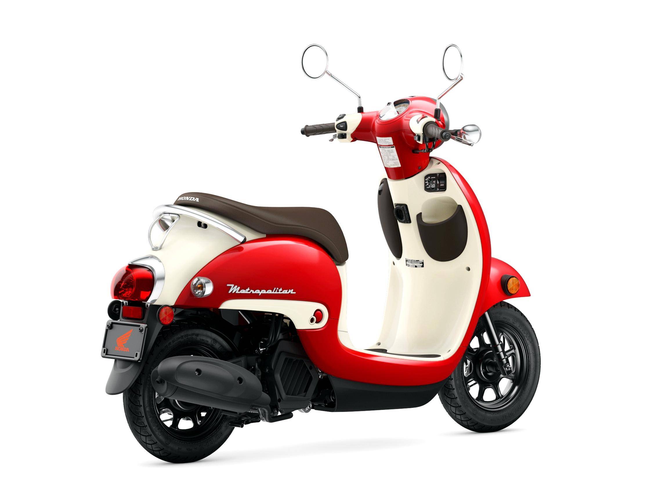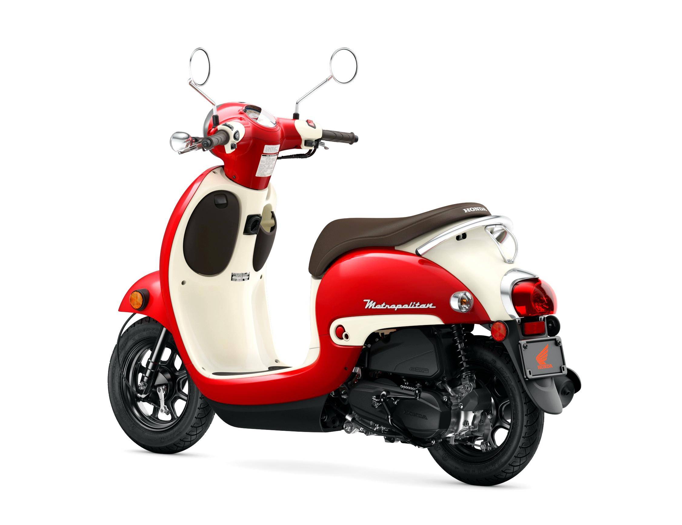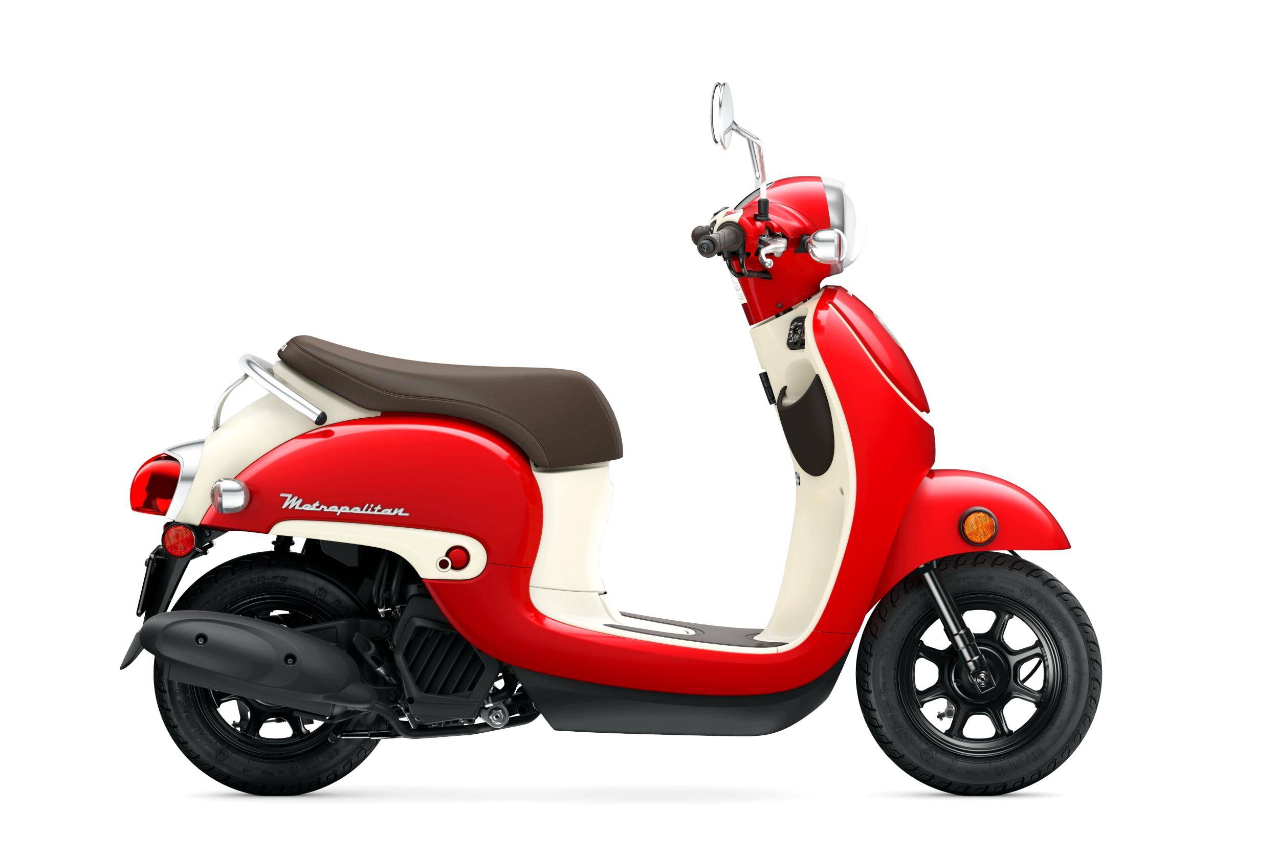 美國(guó)市場(chǎng)銷售中的 2025 NCW50 Metropolitan、實(shí)際上就是日本本土版的 Giorno 50(工廠編號(hào) AF77)。該車搭載一副水冷四沖程單氣缸、SOHC 兩氣閥的發(fā)動(dòng)機(jī),缸徑、行程為 39.5 mm x 40.3 mm,排氣量 49.4 cc,油/氣混合系統(tǒng)同樣采用了化油器(口徑為 19 mm),最大動(dòng)力輸出 4.5 匹。車體采用一副鋼管車架,歐式風(fēng)格的外觀造型,直徑為 10 英寸的前后車輪。