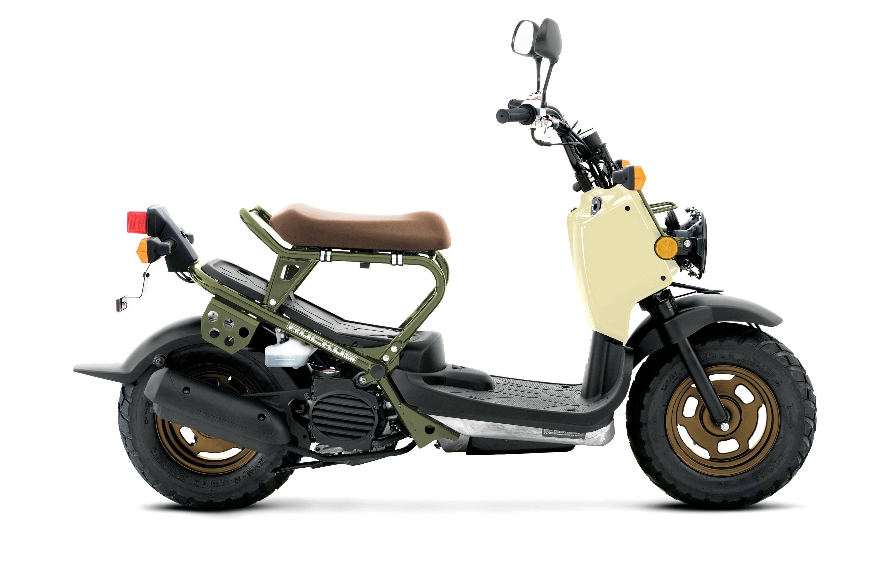 2025 Ruckus 搭載一副水冷四沖程單氣缸、SOHC 兩氣閥的發(fā)動(dòng)機(jī),缸徑、行程為 37.8 mm x 44 mm,排氣量 49.4 cc,口徑為 18 mm 的化油器、無段自動(dòng)變速,最大動(dòng)力輸出 4.9 匹。車體采用一副鋼管車架,雙圓燈、圓形儀表板的設(shè)計(jì),前后鼓式的制動(dòng)系統(tǒng)、直徑為 10 英寸的車輪。與現(xiàn)行的版本相比,新的 2025 Ruckus 采用兩個(gè)新的(黑色、米黃色)車身圖案。