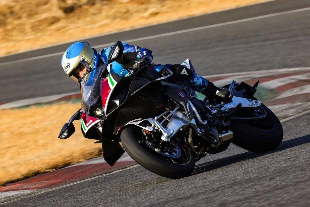 按下Tesi H2的電鈕,輕轉油門車把,立即會傳來與眾不同的“咻咻咻”聲浪,暗示這顆動力心臟涌動著巨大的能量。盡管從規(guī)格參數來看,水冷、DOHC 16氣門、并列四缸發(fā)動機沒有什么特別之處,76.0mm× 55.0mm的缸徑和沖程、998mL的排量也很常規(guī),但是Tesi H2擁有超乎尋常的能量,讓騎手獲得異常刺激的加速體驗!