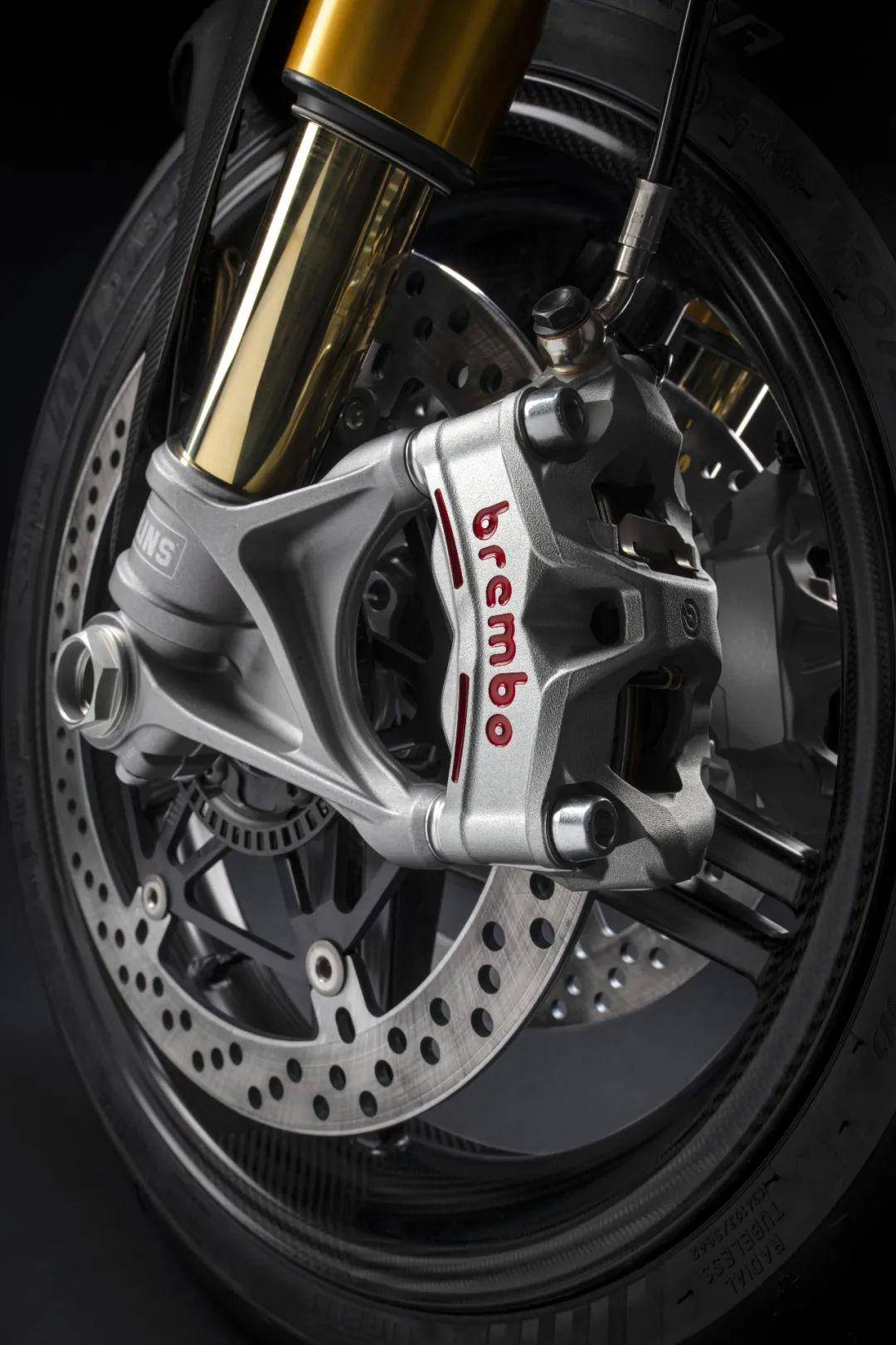 此前,標(biāo)準(zhǔn)版Streetfighter V4的43mm BPF倒立式前叉已經(jīng)備受好評,但是作為最高規(guī)格版本,Streetfighter V4 SP2武裝更高規(guī)格的奧林斯電控懸掛系統(tǒng),前輪安裝的是NIX30 43mm倒立式前叉,后端安裝的是TTX36單筒減震器,盡管前后行程與標(biāo)準(zhǔn)版一樣,都是120mm和130 mm,但是基于第二代Smart EC 2.0,這套奧林斯懸掛系統(tǒng)已經(jīng)進(jìn)化到電控時代。當(dāng)騎手選定運(yùn)動模式時,這套懸掛系統(tǒng)能夠基于6軸IMU以及其他傳感器傳來的信息,根據(jù)駕駛實(shí)際情況,自動優(yōu)化壓縮和回彈阻尼,從而為騎手創(chuàng)造更佳的騎乘體驗(yàn)!