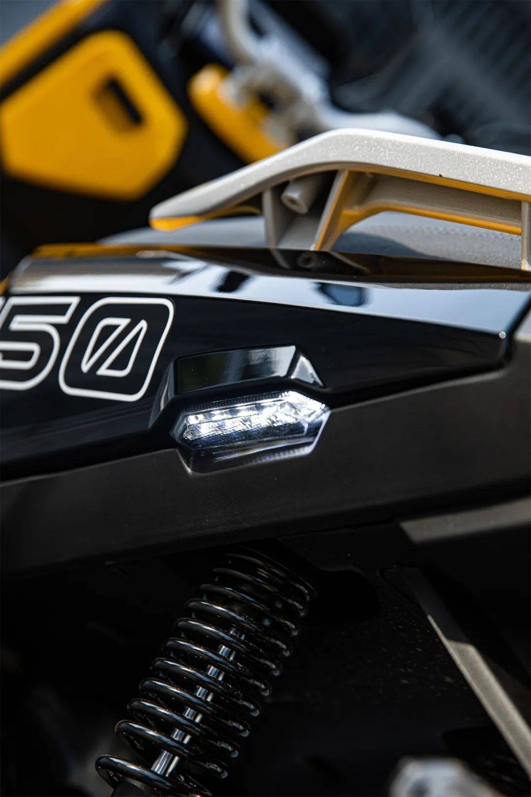 在很多同級(jí)別的ADV踏板車上都取消了前置物掛鉤的設(shè)計(jì),使得日常使用很不方便。但MR150卻配備了前置物掛鉤,在日常使用中非常方便,這個(gè)小細(xì)節(jié)的設(shè)計(jì)值得點(diǎn)贊。配備了11L的中置油箱,可以為這輛車提供超過(guò)300km的續(xù)航里程,不論是日常出行還是長(zhǎng)途摩旅,都能讓人更加安心。根據(jù)這個(gè)發(fā)動(dòng)機(jī)的實(shí)測(cè)油耗表現(xiàn)來(lái)看,高原上可以突破400km的續(xù)航里程,對(duì)于長(zhǎng)途摩旅來(lái)說(shuō),簡(jiǎn)直不要太友好。縫線座墊除了給座墊輪廓進(jìn)行定型外,還有更好的觀感效果。實(shí)測(cè)該座墊的駕駛座坐姿較為舒適,后段凸起的設(shè)計(jì)給了腰部一定的支撐效果,能減輕長(zhǎng)時(shí)間騎行時(shí)的疲勞感。MR150座墊下的置物空間較大,除了可以放下一頂3/4盔外還有較大的空間可以放雨衣等物品。由于它的電池倉(cāng)被設(shè)計(jì)到了靠近油箱的位置,故而多出了一部分空間,這種設(shè)計(jì)特別值得點(diǎn)贊,也讓座墊下的空間最大化。并且它的電池倉(cāng)還是采用了卡扣式設(shè)計(jì),維護(hù)更加方便。動(dòng)力上,MR150搭載了一臺(tái)來(lái)自隆鑫的單缸水冷發(fā)動(dòng)機(jī),最大功率是10.5k·W(8250rpm),最大扭矩14N·m(6500rpm)。最高時(shí)速105km/h,匹配博世電噴系統(tǒng)。行走系統(tǒng)上,配備了前正置后置雙簧式避震。這里有個(gè)小細(xì)節(jié)是后雙簧式避震處增加了補(bǔ)光燈的設(shè)計(jì),點(diǎn)亮行車燈時(shí)即可開(kāi)啟,夜晚會(huì)有不錯(cuò)的照明效果。安全配置上有ABS+TCS的組合,但這里需說(shuō)明的是它的都市版沒(méi)有ABS、TCS,但配備了CBS。MBY MR150作為一輛售價(jià)不到萬(wàn)元的150級(jí)水冷ADV踏板,以其獨(dú)特的外形設(shè)計(jì)和較高的配置從一眾萬(wàn)余元的同類型車型中“脫穎而出”。9900元即可擁有當(dāng)下主流的配置,即便是放在現(xiàn)在,也是具備相當(dāng)高的性價(jià)比。目前,同類型的產(chǎn)品價(jià)格都在萬(wàn)元以上,MBY MR150作為一輛不到萬(wàn)元的ADV踏板,可以說(shuō)已經(jīng)是開(kāi)了同類產(chǎn)品之先河了。車輛具體的騎行表現(xiàn)如何?下期與大家詳細(xì)分享,至于它的市場(chǎng)表現(xiàn),我們可以拭目以待!