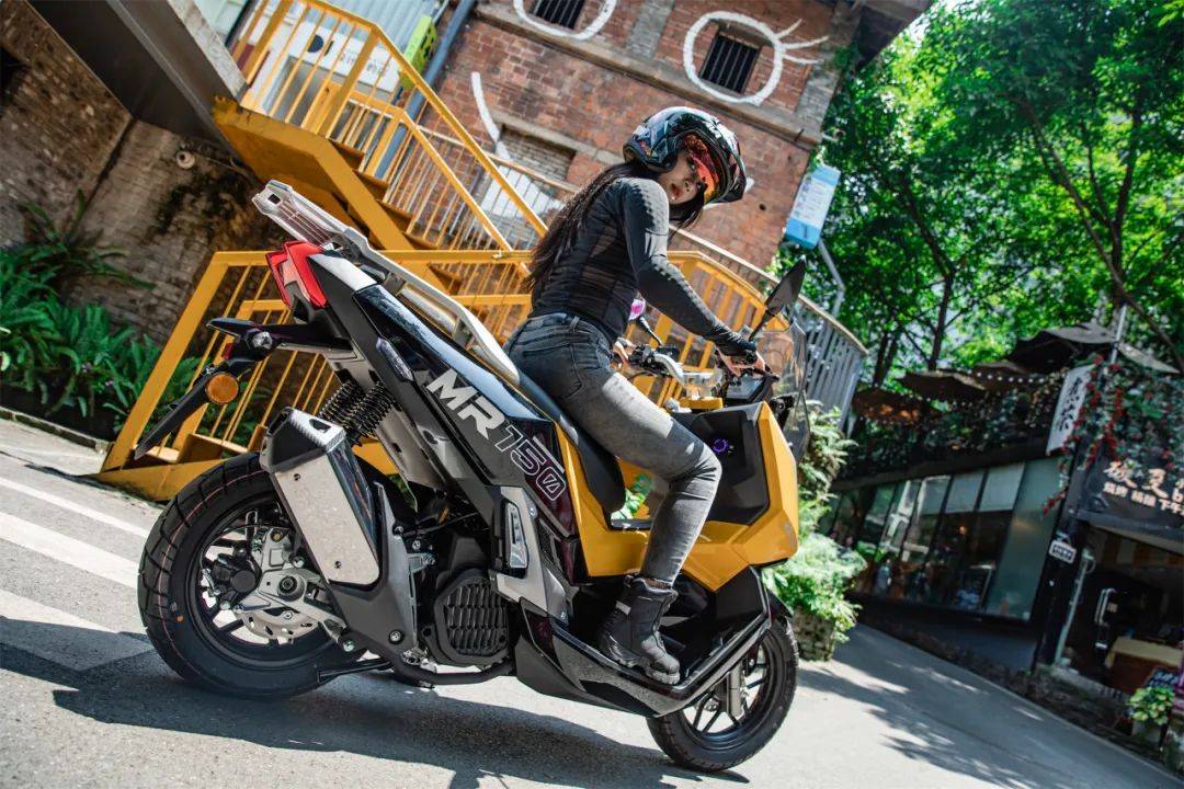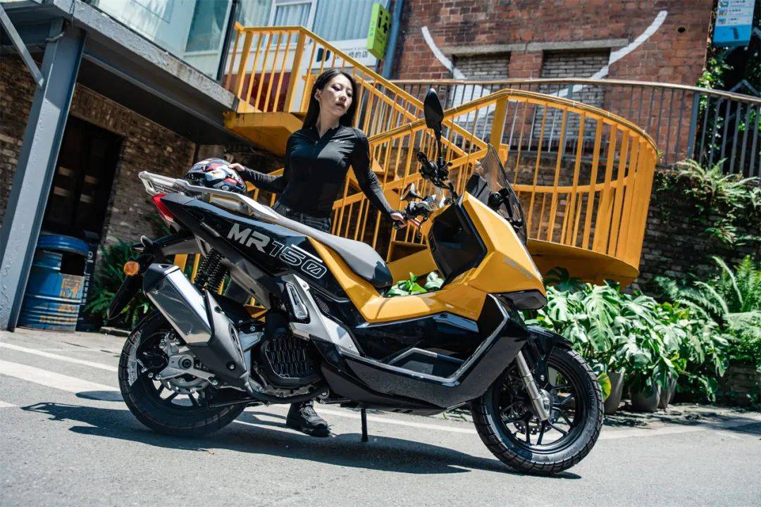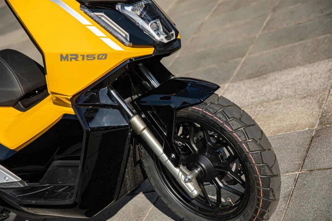 MR150穿越版售價(jià)為9900元,摩旅版(目前售價(jià)未公布),各版本在配置上略有不同,本次我們測(cè)試車為穿越版。初看MR150便有一種與眾不同的感覺(jué),它沒(méi)有采用大眾化的外形設(shè)計(jì),反而是一種類似于跨界踏板的風(fēng)格,但卻結(jié)合了運(yùn)動(dòng)車型銳利的線條感,外形上看上去有一定的辨識(shí)度。側(cè)面看,有類似于ADV踏板的設(shè)計(jì),并且增加了棱角分明的線條,使其看上去不僅具備一定的運(yùn)動(dòng)元素,還有一定“力量感”。它并沒(méi)有采用雙大燈的設(shè)計(jì),而是采用單大燈加上下雙透鏡的組合,使其從側(cè)面看去,和車身的切面處于一個(gè)平面,一體性更好。如果用汽車類似的設(shè)計(jì)來(lái)說(shuō),就是流線型前臉,對(duì)于氣流的導(dǎo)向性會(huì)更好。外觀是MR150的一大亮點(diǎn),極具個(gè)性化的設(shè)計(jì)也讓它在一眾產(chǎn)品中“與眾不同”,讓人一眼便記住了它的“樣子”。而配置層面,同樣較出眾,使得它在同級(jí)別產(chǎn)品中具備較強(qiáng)的競(jìng)爭(zhēng)力。三段可調(diào)的熏黑風(fēng)擋,滿足大多數(shù)人的使用需求。原廠熏黑的設(shè)計(jì)在這個(gè)排量級(jí)別中屬于較少的存在,看上去也更符合整車設(shè)計(jì)風(fēng)格,一體性更好,觀感層面更加高級(jí)。大尺寸的TFT儀表(都市版是液晶儀表)除了信息讀取更加方便以外,在觀感上也會(huì)更顯高級(jí)。MR150采用的是白底黑字的設(shè)計(jì),在強(qiáng)光環(huán)境下的顯示效果會(huì)更好,數(shù)據(jù)讀取更加方便。此外,廠家還貼心地配置了多檔背光亮度可調(diào),方便在暗光環(huán)境下的使用。手把背光也有配備,在暗光環(huán)境下散發(fā)出均勻的藍(lán)光調(diào),看上去氛圍感較好,頗有些類似于汽車上的氛圍燈的效果。采用機(jī)械鑰匙一體的無(wú)鑰匙啟動(dòng)系統(tǒng),方便了日常的使用。(都市版是傳統(tǒng)的機(jī)械鑰匙)左側(cè)前置物箱里配備了USB充電接口,方便我們?yōu)殡娮釉O(shè)備供電。