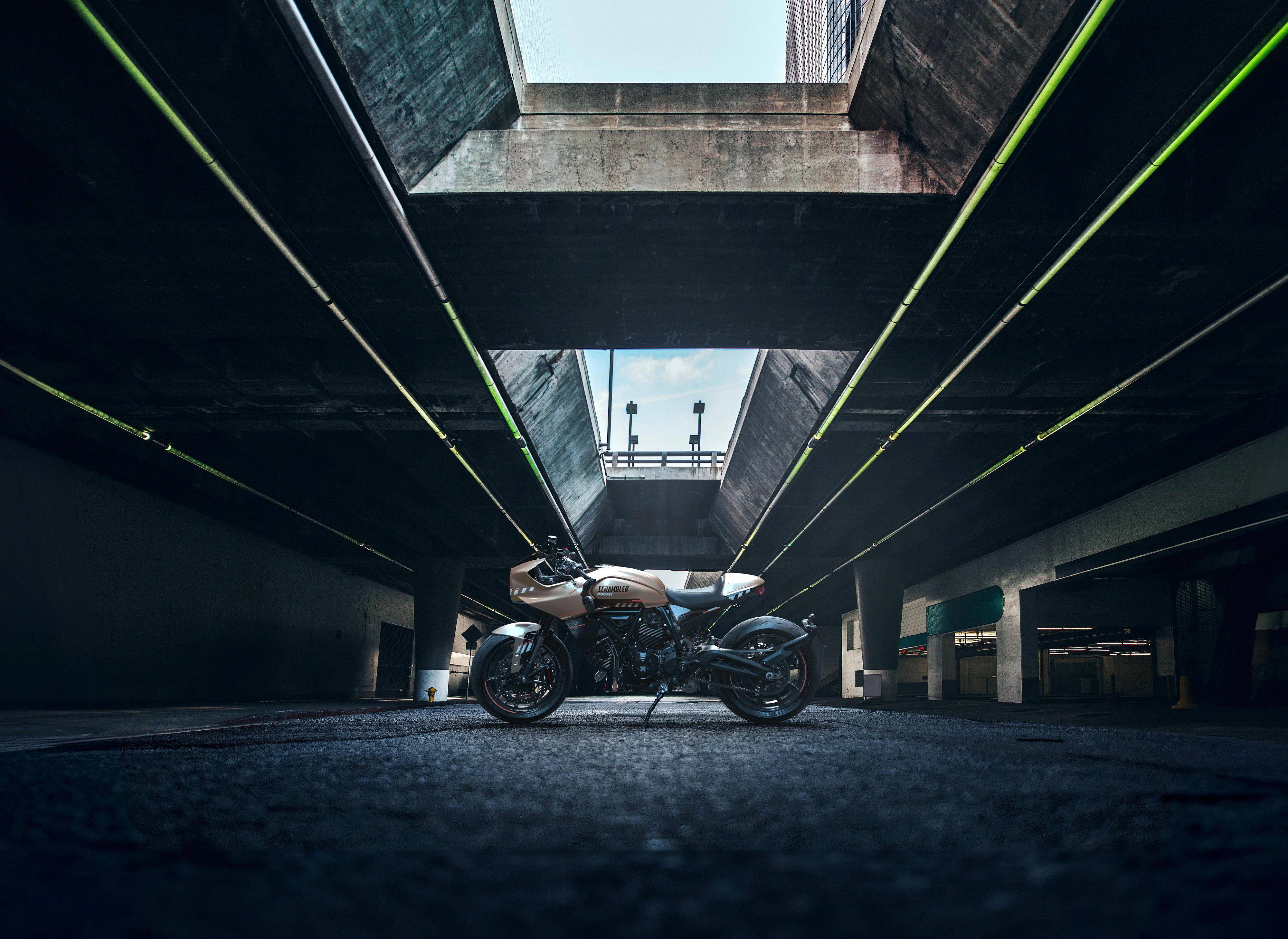 咖啡賽車風(fēng)格的 CR24I,其靈感來自上世紀(jì)六十年代時(shí)、流行于英國(guó)街頭的經(jīng)典跑車款式,換裝了直徑為 17 英寸的前輪框(Scrambler 原廠標(biāo)準(zhǔn)狀態(tài)下、采用 18 英寸的前輪框)和公路運(yùn)動(dòng)型的輪胎;前整流罩一直延伸到油箱,讓全車的外觀有著杜卡迪上世紀(jì)七十年代經(jīng)典車型 Pantah 和 750 SS 的輪廓;分離式設(shè)計(jì)的車把、位于車把兩端的后視鏡,單座位的設(shè)計(jì),都流露著對(duì)過去那些線條的緬懷。