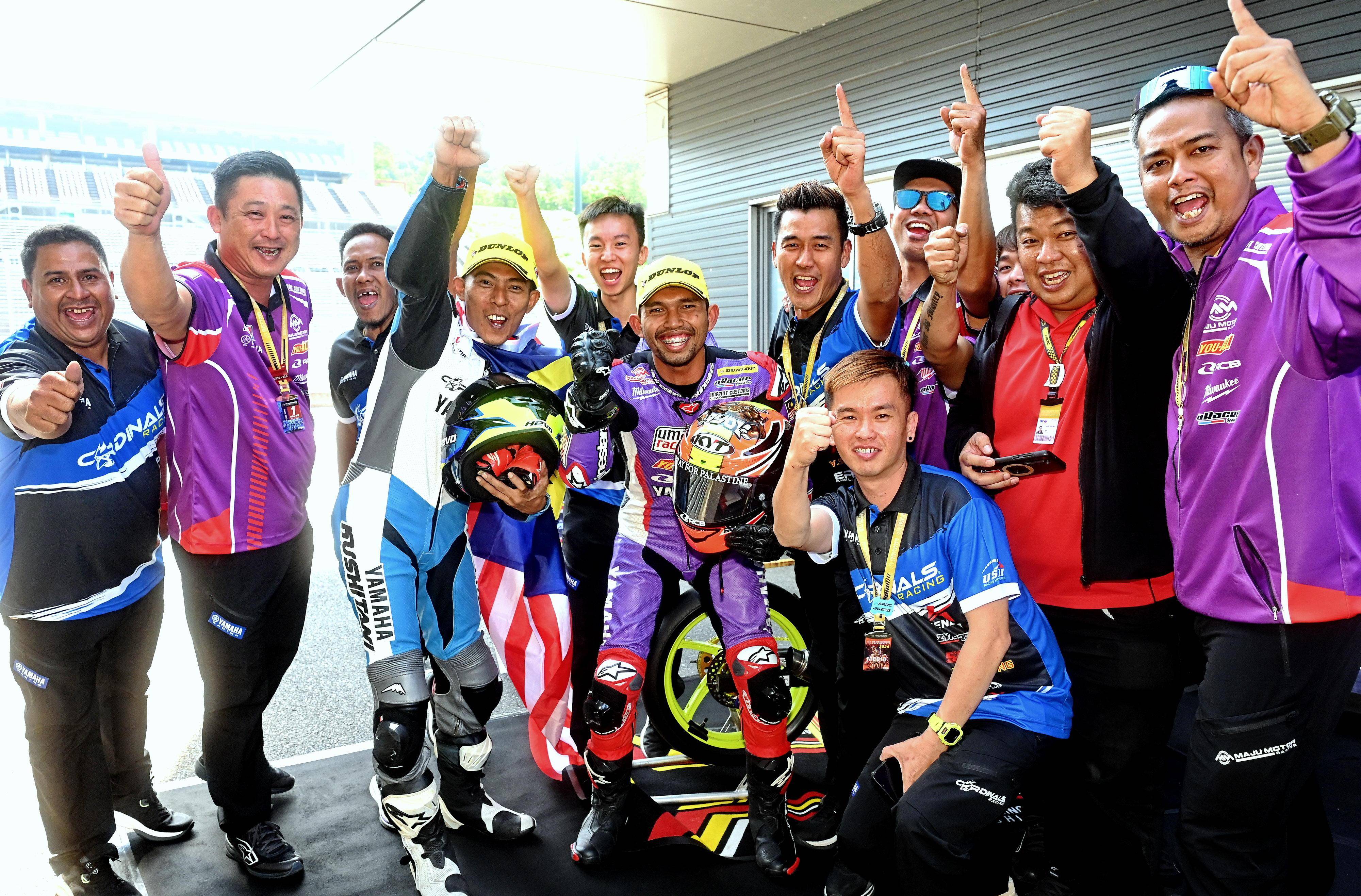 * UMA Maju Yamaha 亞洲車隊(duì),出場(chǎng)陣容是兩位來自馬來西亞的車手:2023 賽季的年度總冠軍、駕駛 1 號(hào)車的納茲魯.伊扎特(Nazirul Izzat Md Bahauddin),以及 36 號(hào)車的羅斯利(MD Syafiq Rosli);