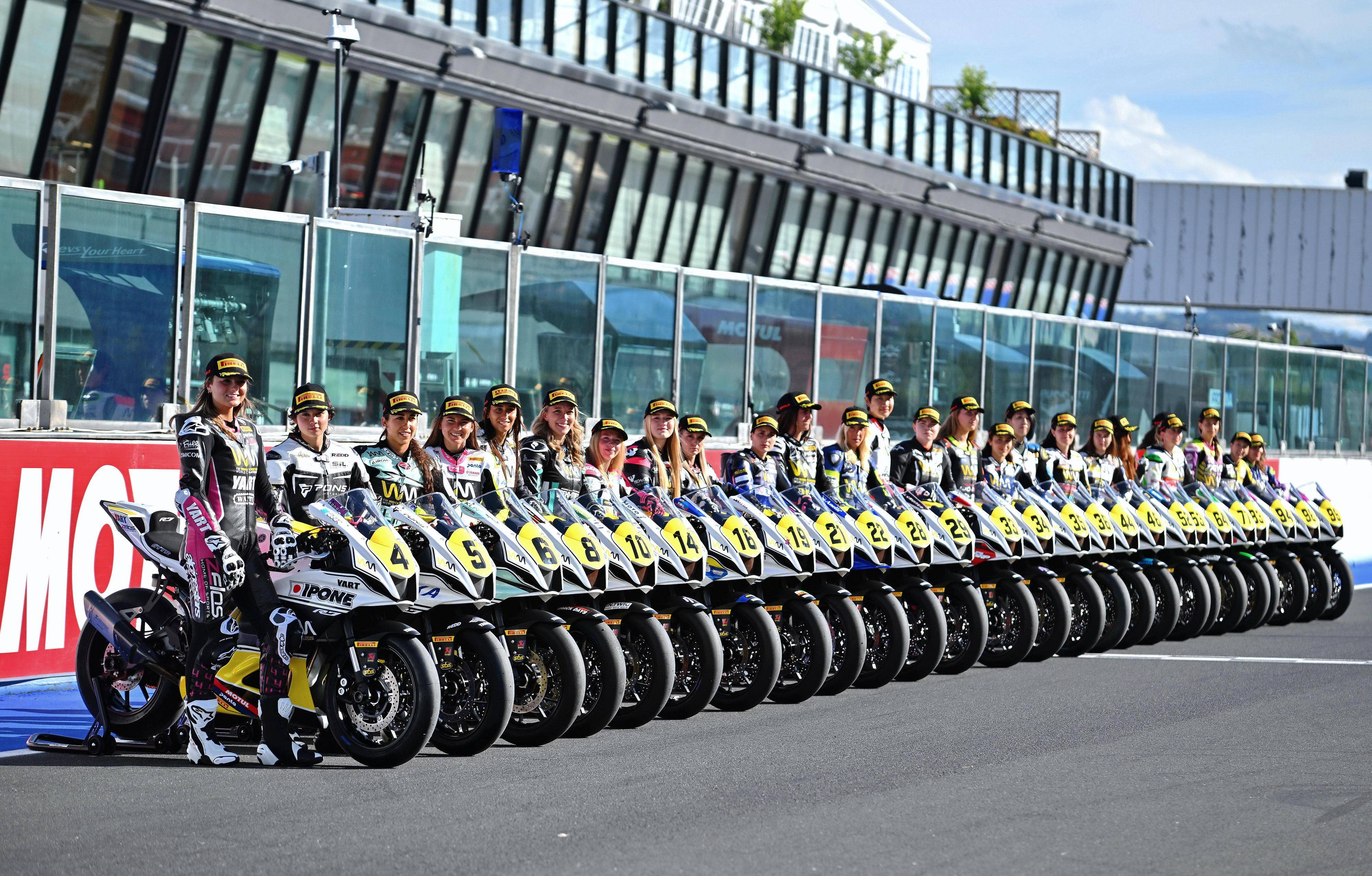 FIM 在多年前就一直努力為女子公路型世界大賽的開辦進(jìn)行了多次的嘗試,以求擴(kuò)大公路型賽車的市場(chǎng)、并提升影響力。但在尚未流行統(tǒng)一規(guī)格賽車的時(shí)代背景下,這些嘗試最終都無(wú)法實(shí)現(xiàn)突破,直到兩年前、多個(gè)統(tǒng)一車型的競(jìng)賽組別,成為 WorldSBK 和 MXGP 部分分站比賽里面的常規(guī)競(jìng)賽組別之后、契機(jī)的顯現(xiàn),促成了 2024 年 WorldWCR 的創(chuàng)辦。