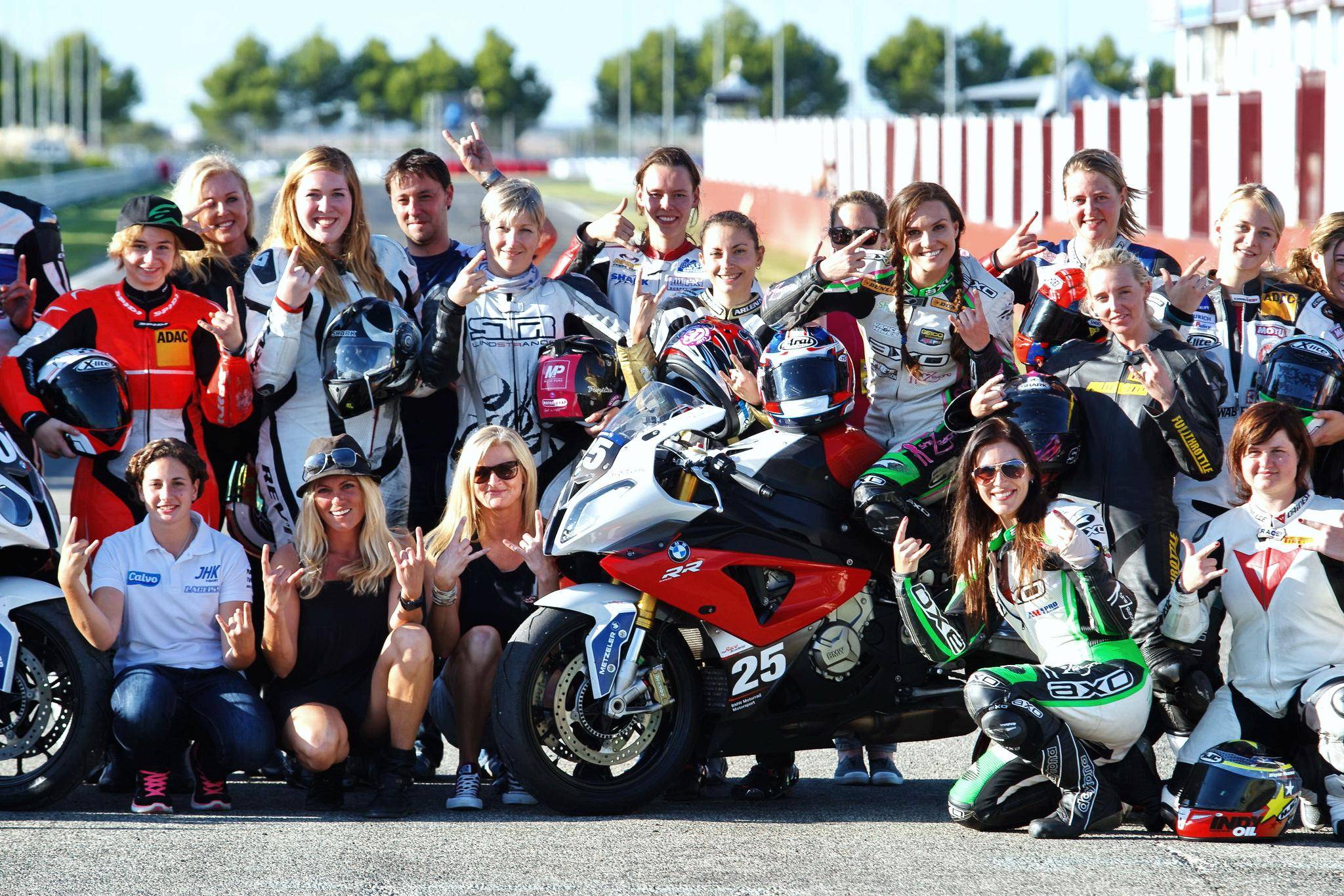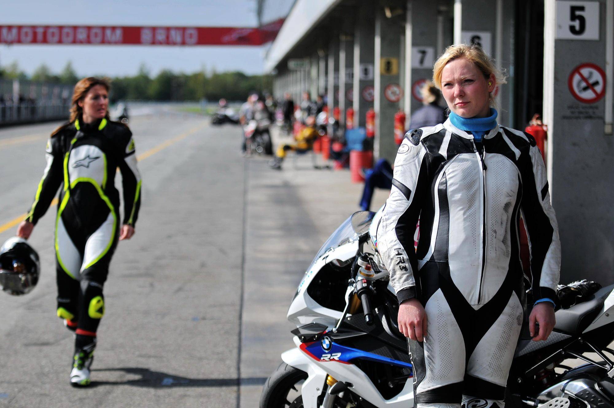 下面的圖片,2014 年在捷克布諾(Brno)賽車場(chǎng)舉行的第二屆 FIM 女子公路賽車訓(xùn)練營(yíng)。這一屆的訓(xùn)練營(yíng)獲得了 BMW Motorrad 寶馬摩托的支持,使用 S 1000 RR 作為訓(xùn)練用車。