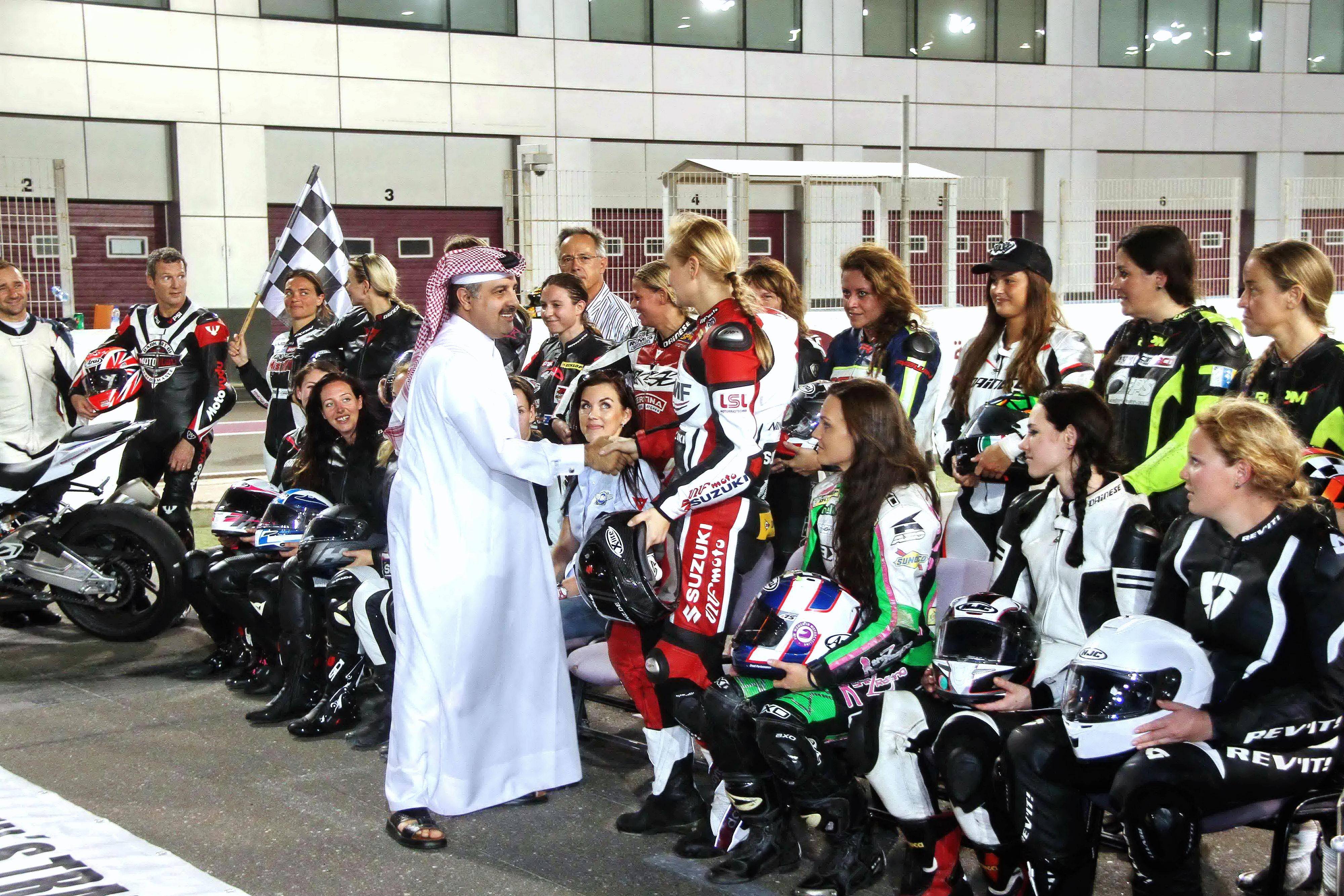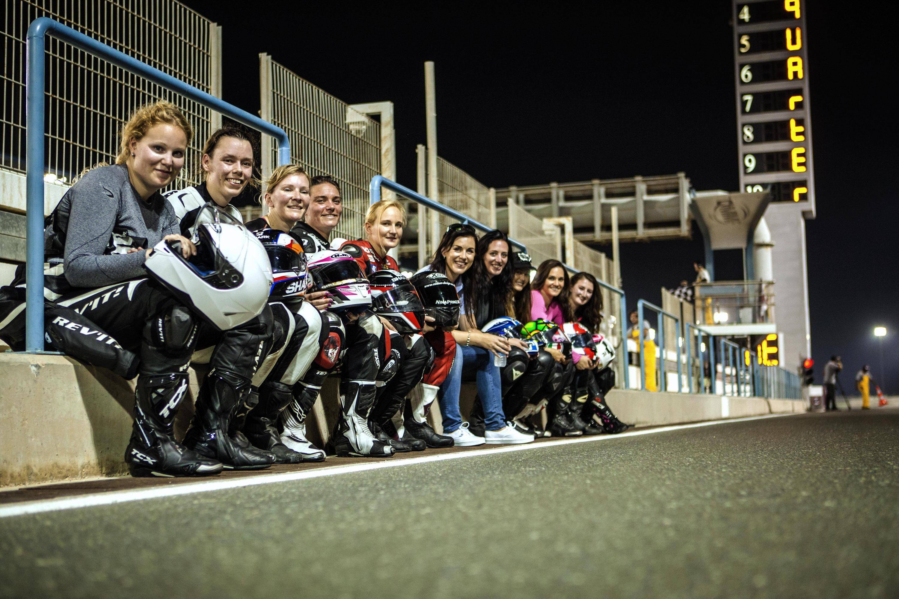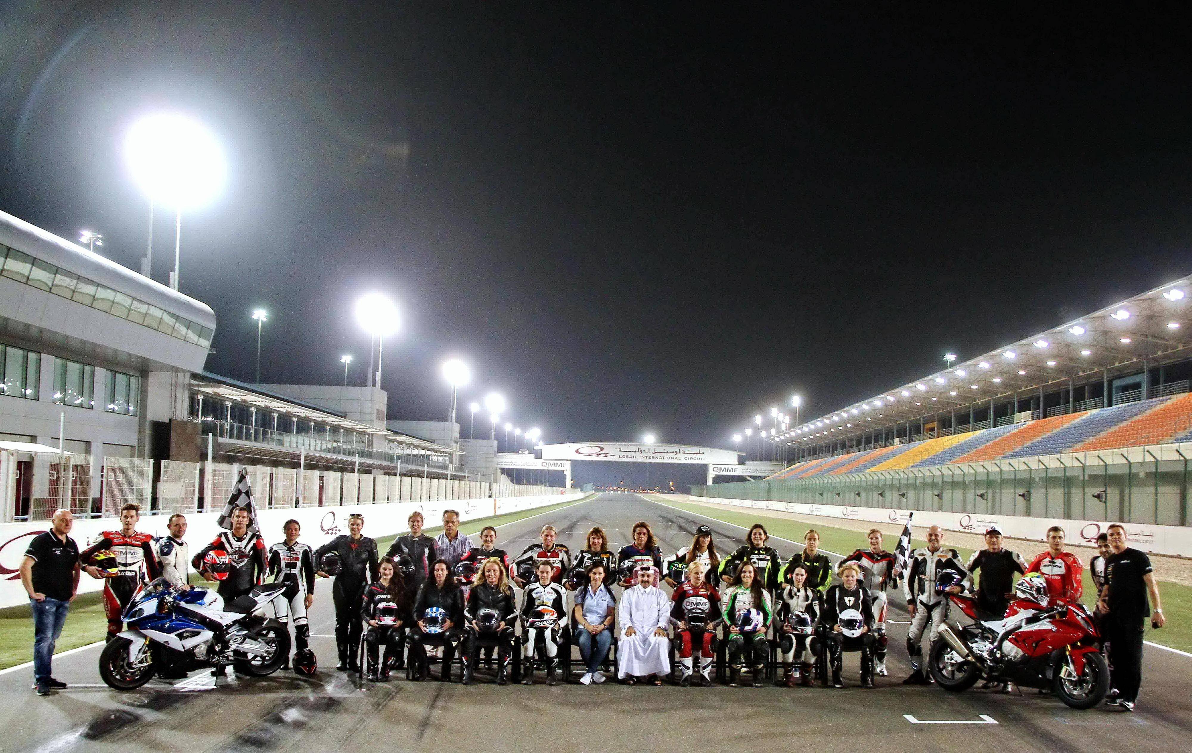 下面的圖片,2015 年十月、在卡塔爾舉行的 FIM 女子公路賽車訓(xùn)練營(yíng)。