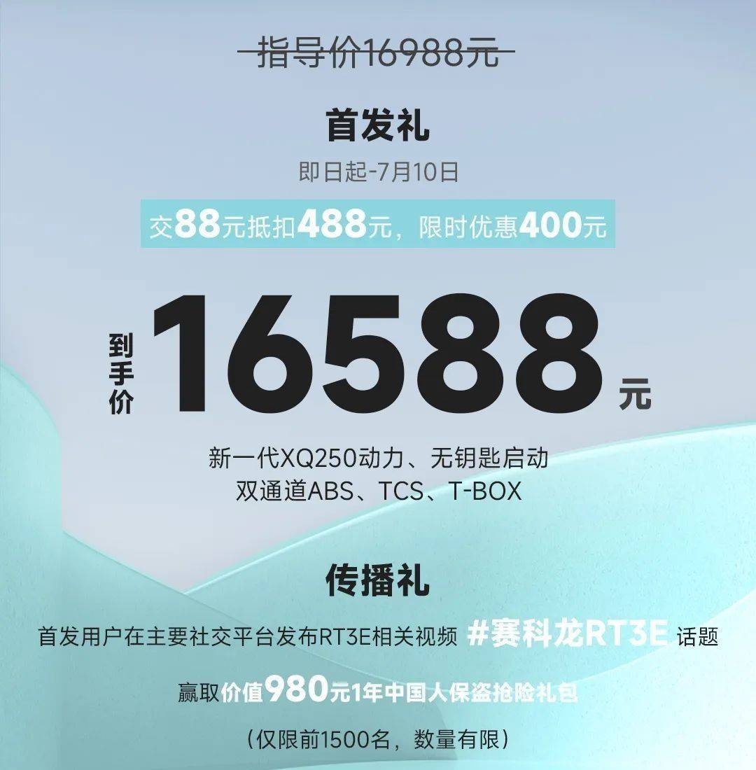 目前共有5種車色可選,首批下單還能享受88元抵488元活動(dòng),相當(dāng)于到手價(jià)16588元。