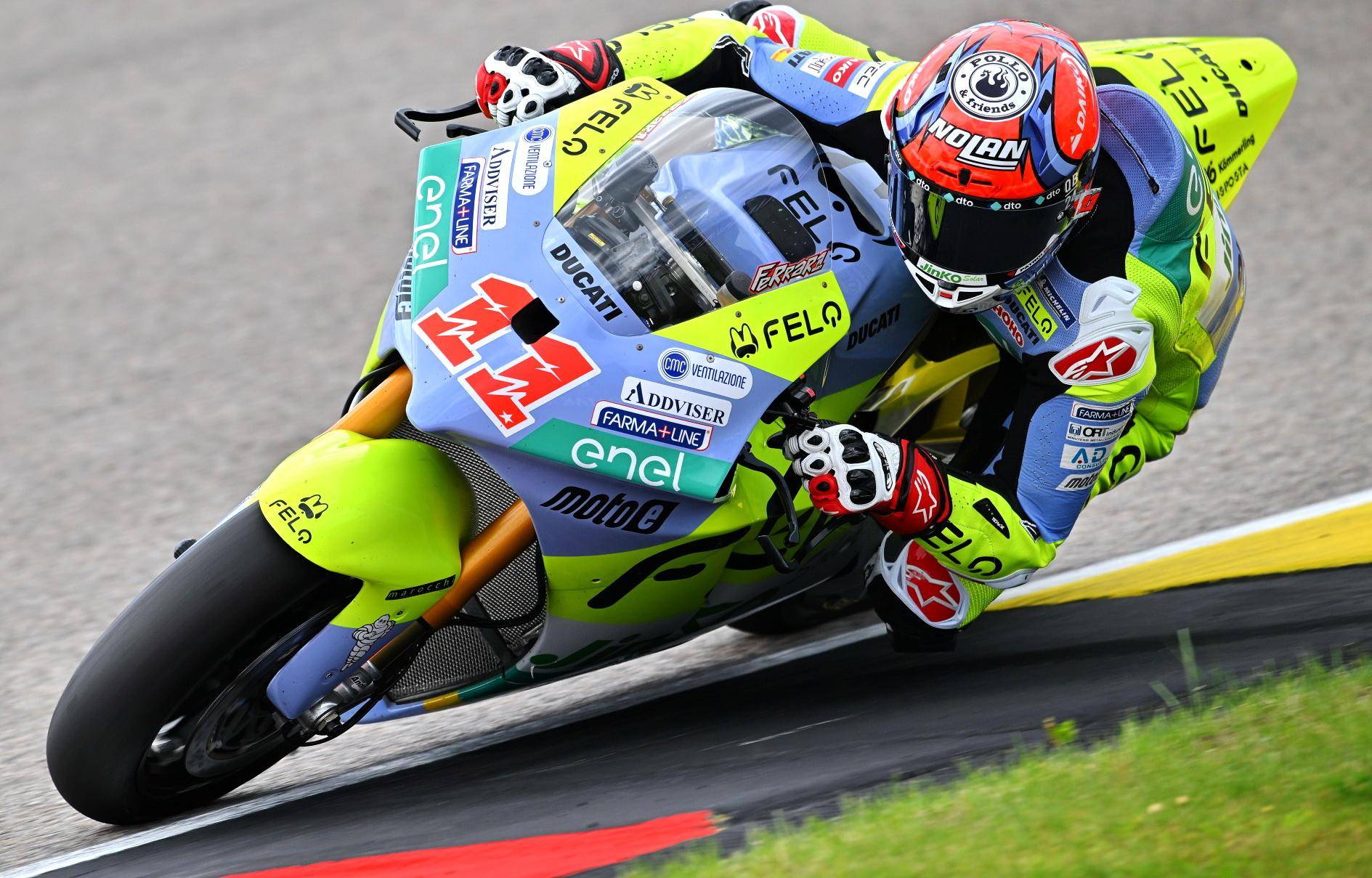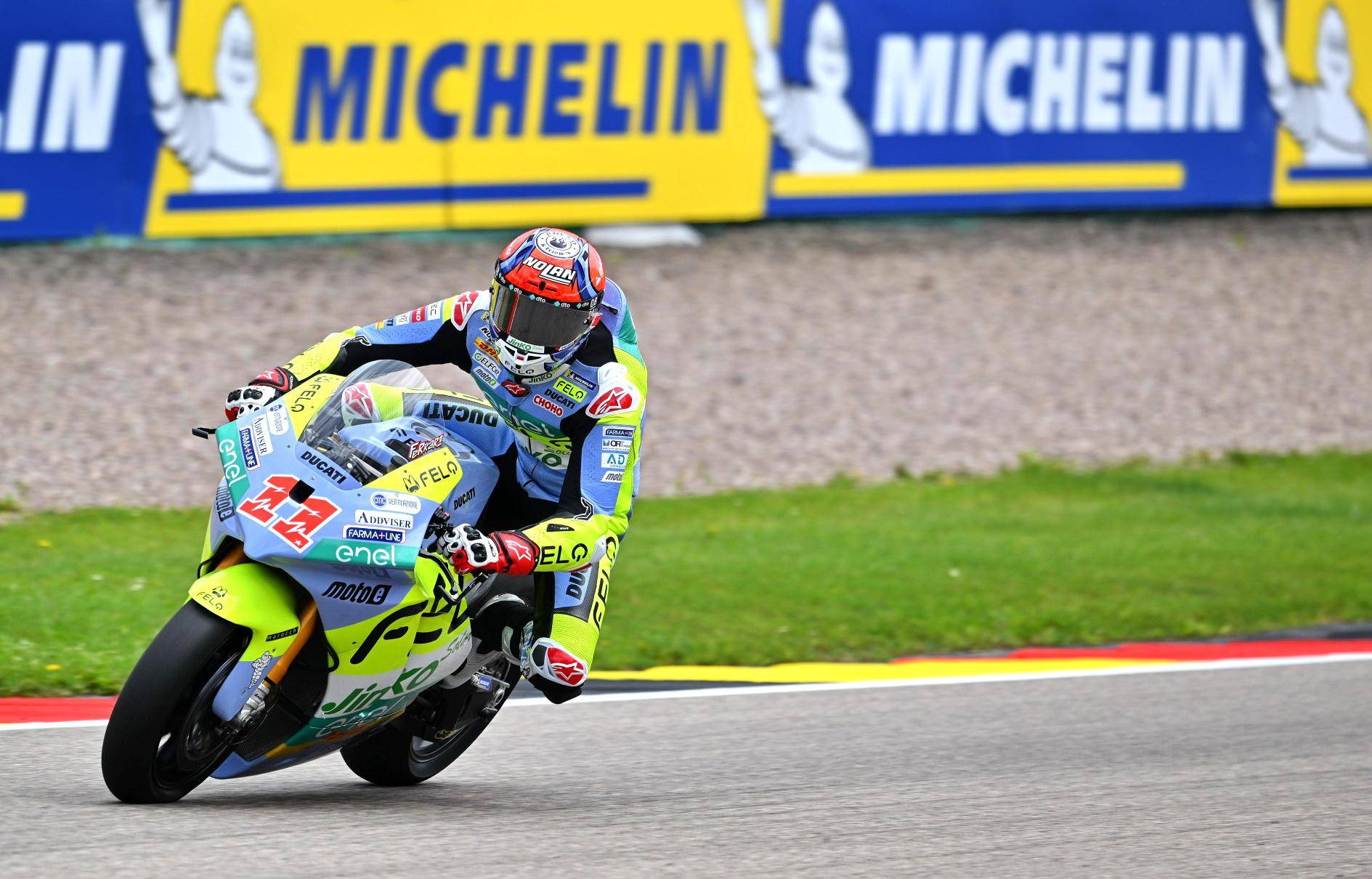 昨天周五(七月 5 日),MotoE 級(jí)別的練習(xí)和排位賽,法拉利從練習(xí)時(shí)候就一直名列前茅:FP1 他跑出了全場(chǎng)第三快的圈速,到 FP2 也跑出了第四快的 1 分 26.896 秒的個(gè)人最好圈速、直接進(jìn)入 Q2;到了 Q2,接連不斷的意外、黃旗打斷了他努力刷新圈速的節(jié)奏,他最終跑出了 1 分 26.507 秒的圈速、拿到了排位的第七。