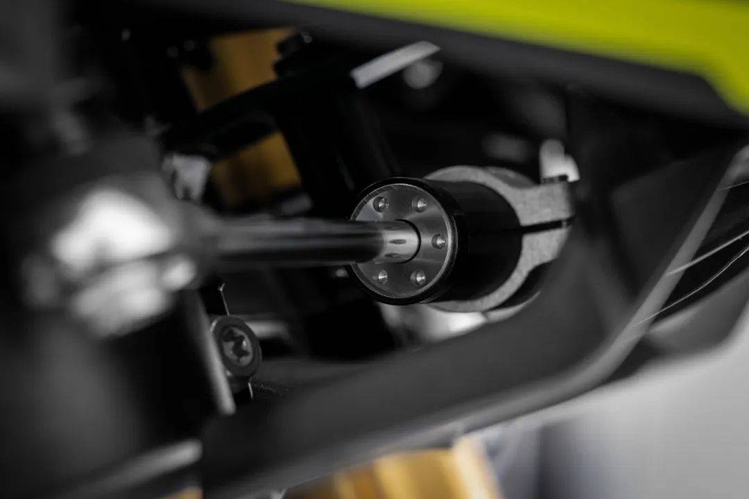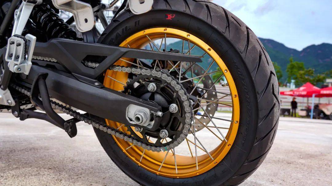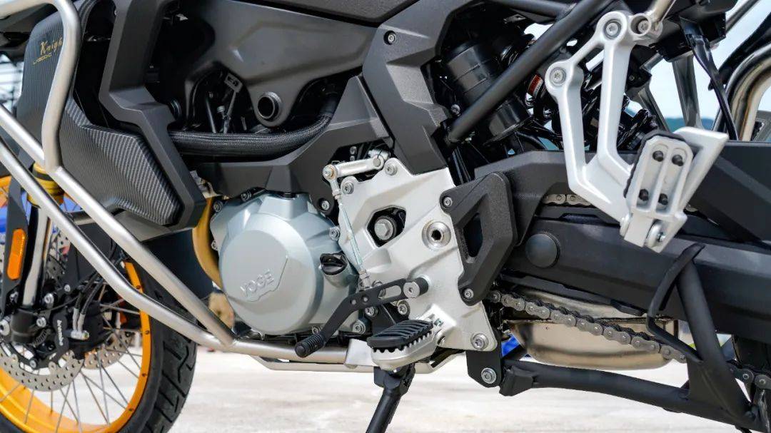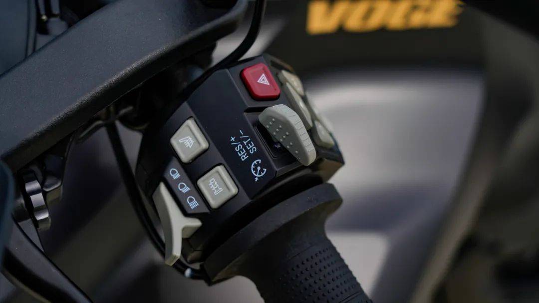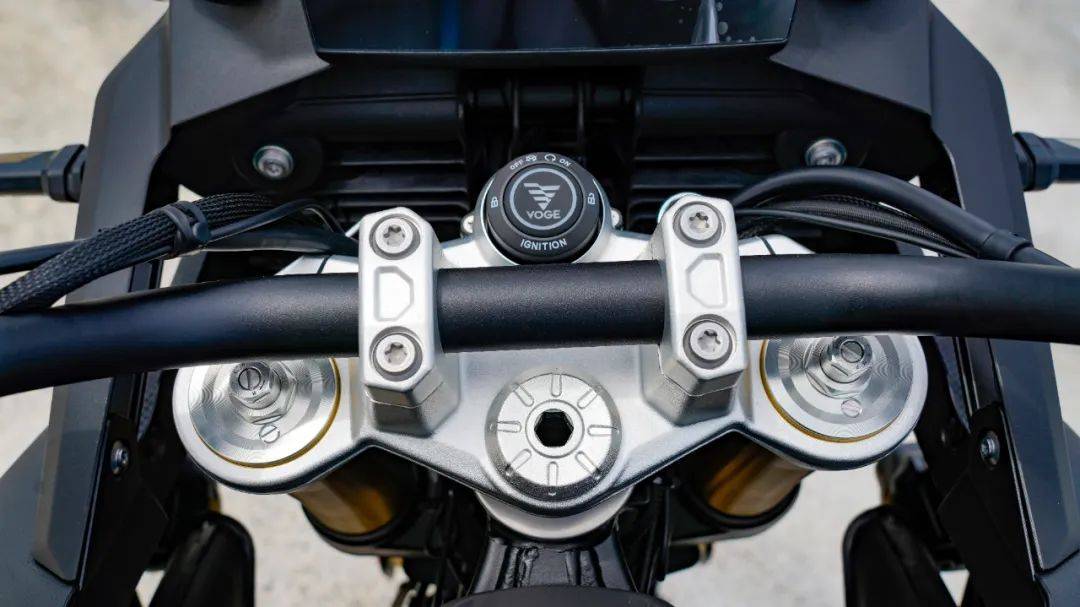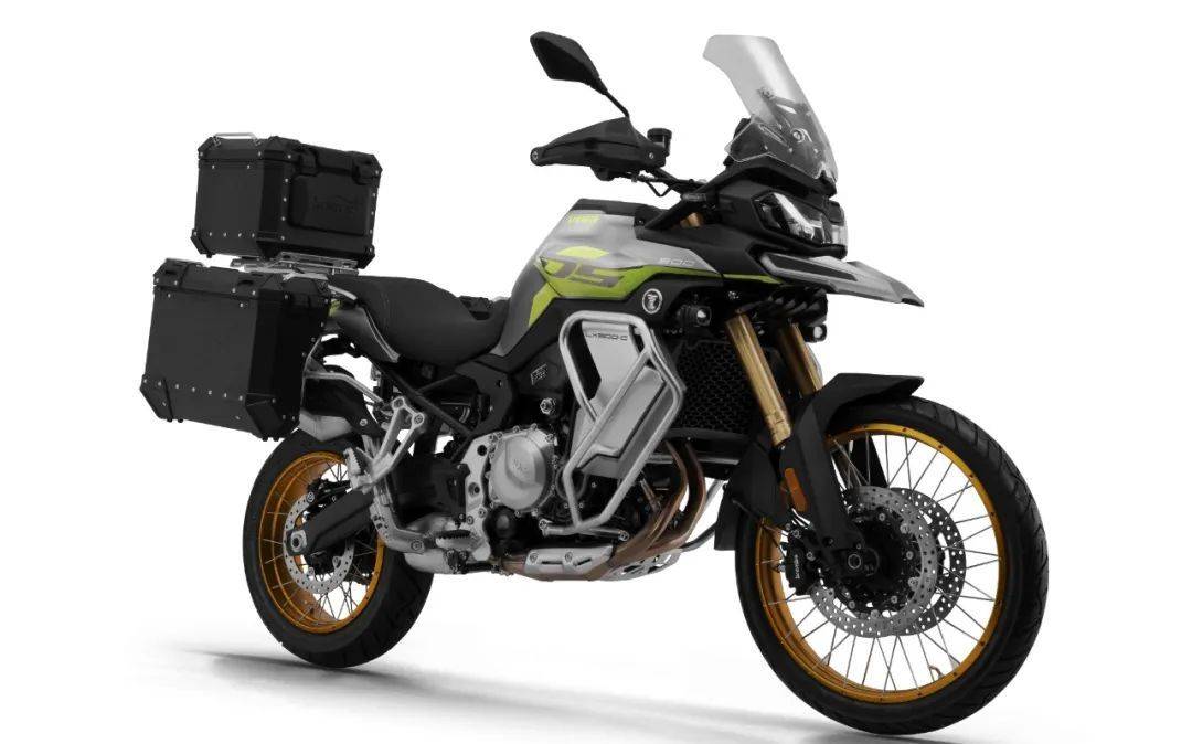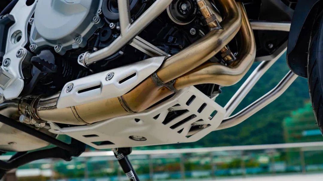全LED光源, 標(biāo)配一對輔助射燈、鋁合金發(fā)動(dòng)機(jī)底部護(hù)板、保險(xiǎn)杠、后貨架、手把護(hù)弓、轉(zhuǎn)向阻尼器、鋁合金后平叉。全可調(diào)的KYB前倒置減震,以及全可調(diào)的內(nèi)置氣囊KYB中央后減震,后減震自帶預(yù)載調(diào)節(jié)旋鈕,可以直接手動(dòng)調(diào)節(jié)。前雙浮動(dòng)碟,每碟單向雙活塞Brembo卡鉗,后單活塞Brembo卡鉗,配備Brembo上泵。鋁合金真空輻條輪轂,配倍耐力蝎子胎,前90/90-21后150/70-17。在舒適性方面,專為國人定制的人機(jī)三角和加高靠后手把,優(yōu)化騎行姿態(tài),配備了電熱手把、加熱座墊、無鑰匙啟動(dòng)、行車記錄儀、手動(dòng)可調(diào)風(fēng)擋,全部配齊。