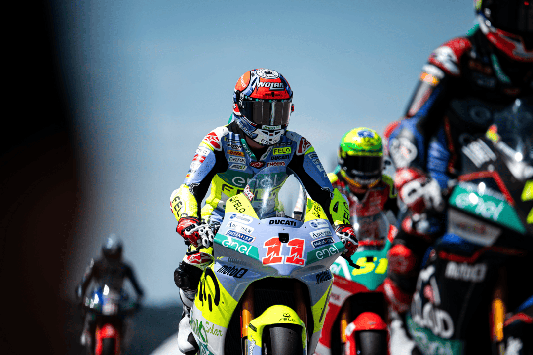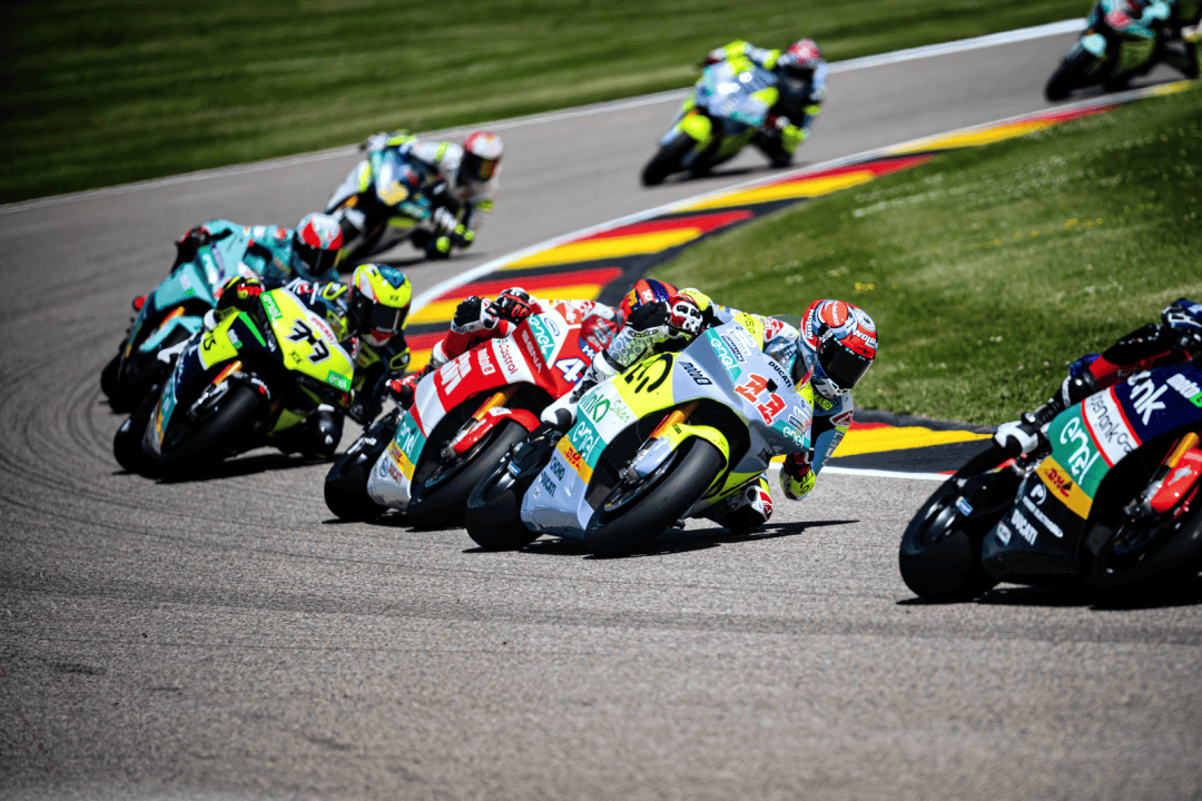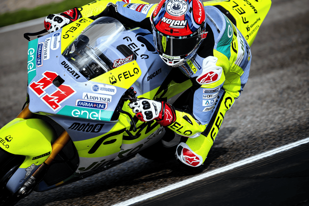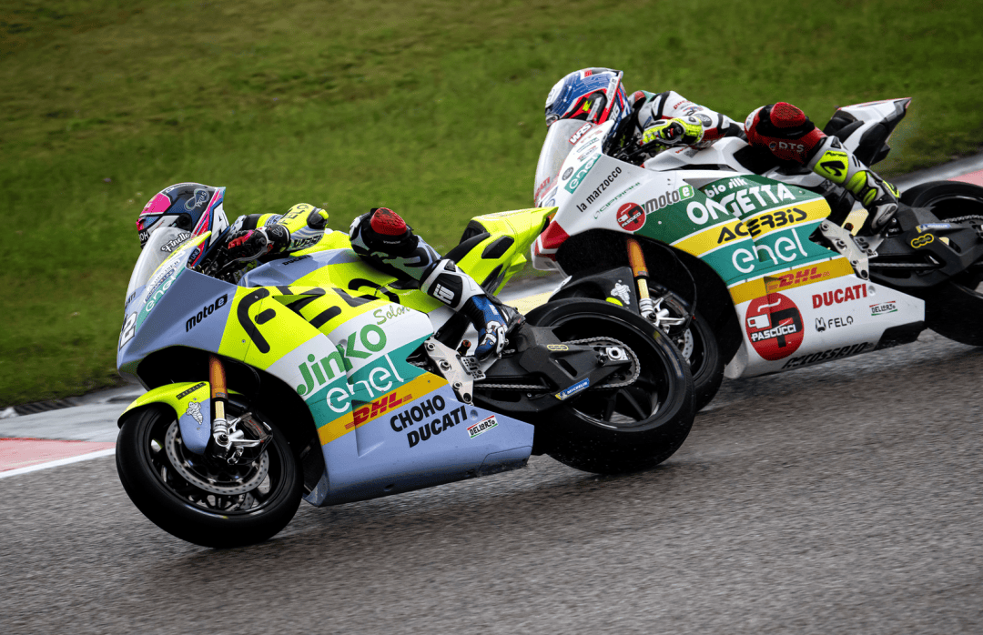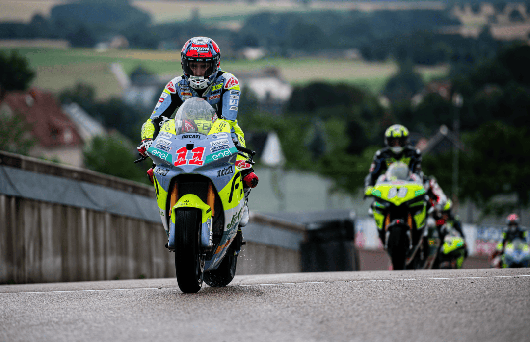 德國站的兩節(jié) MotoE 級別正式比賽在周末(七月 6 日)舉行,賽程為各8 圈、折合約 29 公里。第一節(jié)的比賽在干地之下展開,但首次發(fā)車后不久、就因為摔車意外而被紅旗所終止。重新起跑,賽程被縮短為只有 5 圈。這場短促的、只有七分鐘多一點的較量中,法拉利以迅猛的態(tài)勢全力向前,超越了多位車手之后、以第四名完賽,這是他在 2024 賽季開賽以來的最佳成績,與頒獎臺的距離只有 1 秒多。費內(nèi)洛也拿到了比賽的第十名。