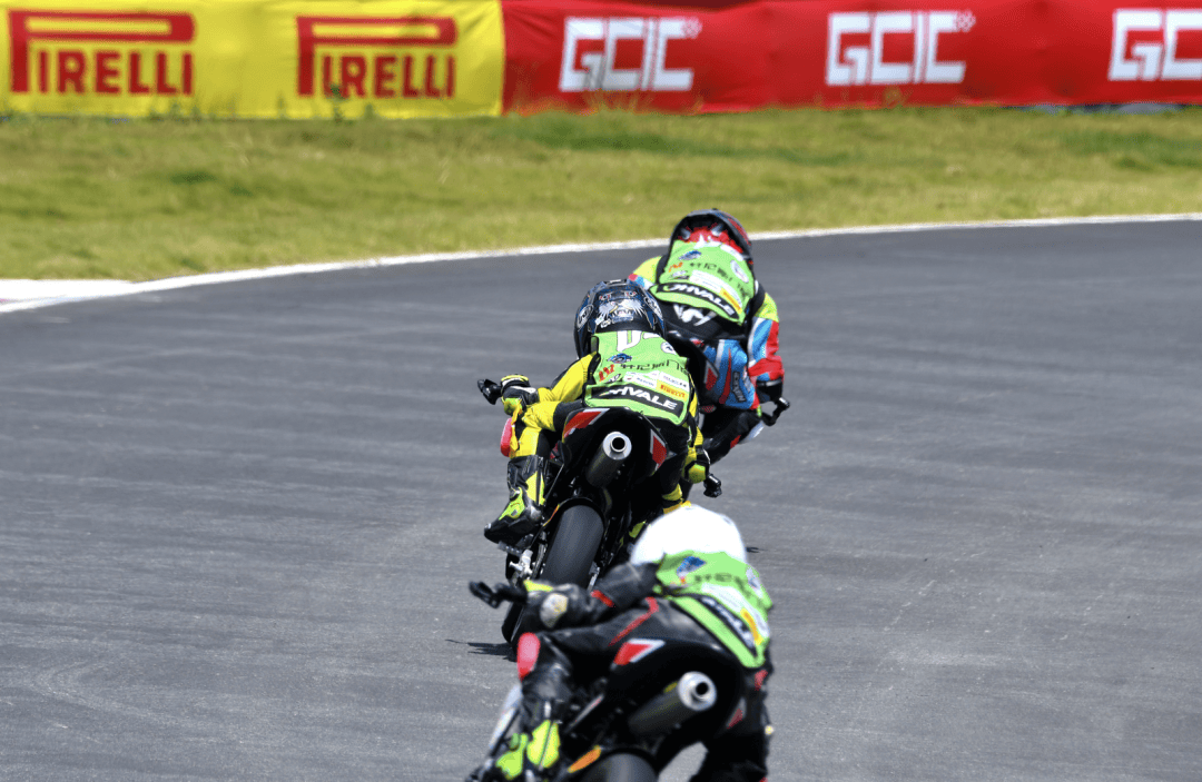 后面兩個競爭集團的較量、是場內的重要焦點:趙宥祎、李賈佑恩和蘇浩鈞,三人從起步開始、在大部分的比賽時間里,都在進行著近在咫尺的激烈追逐;而莊茗皓和王子新尉則是一前一后地努力尋求更快的速度、并嘗試迫近前車:莊茗皓跑出了 1 分 07.716 秒的個人最佳圈速,王子新尉也跑出了 1 分 07.623 秒的最好時間,而他們兩人在排位賽時的最佳圈速都是 1 分 08 秒的級別。