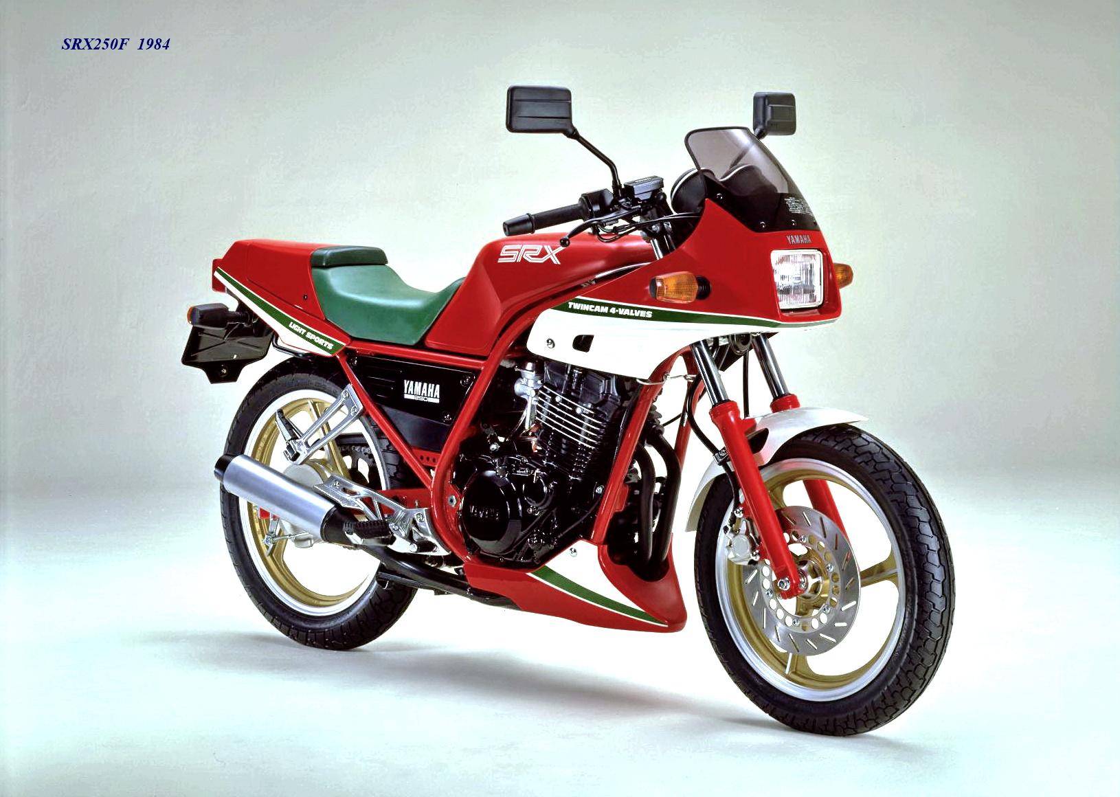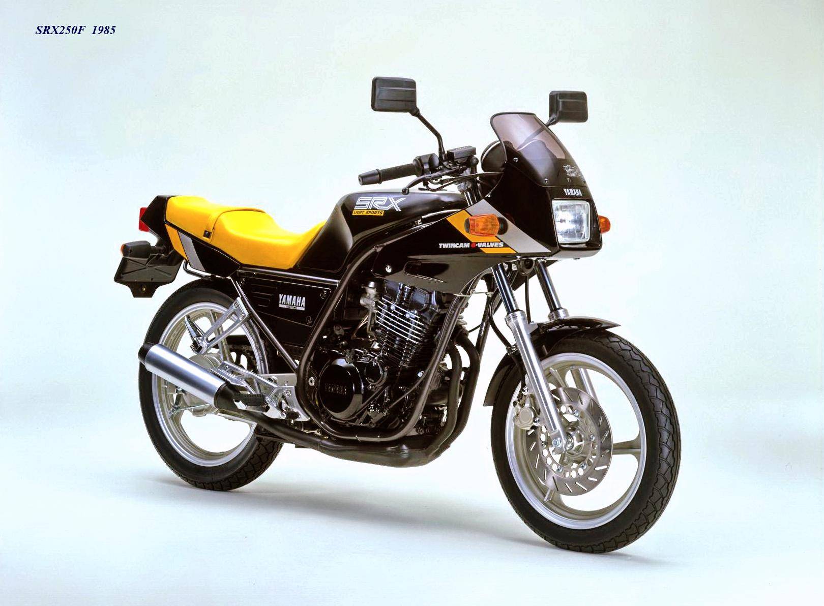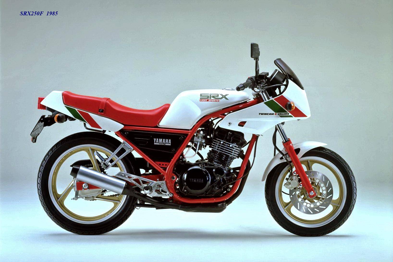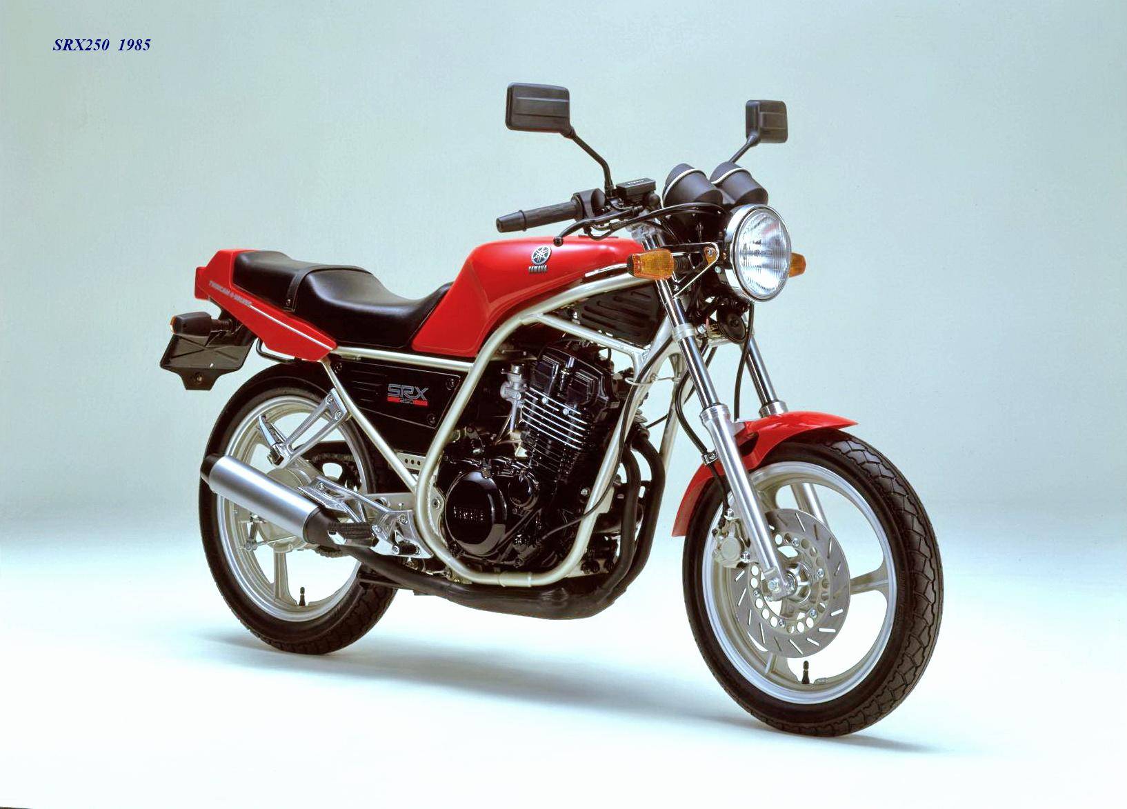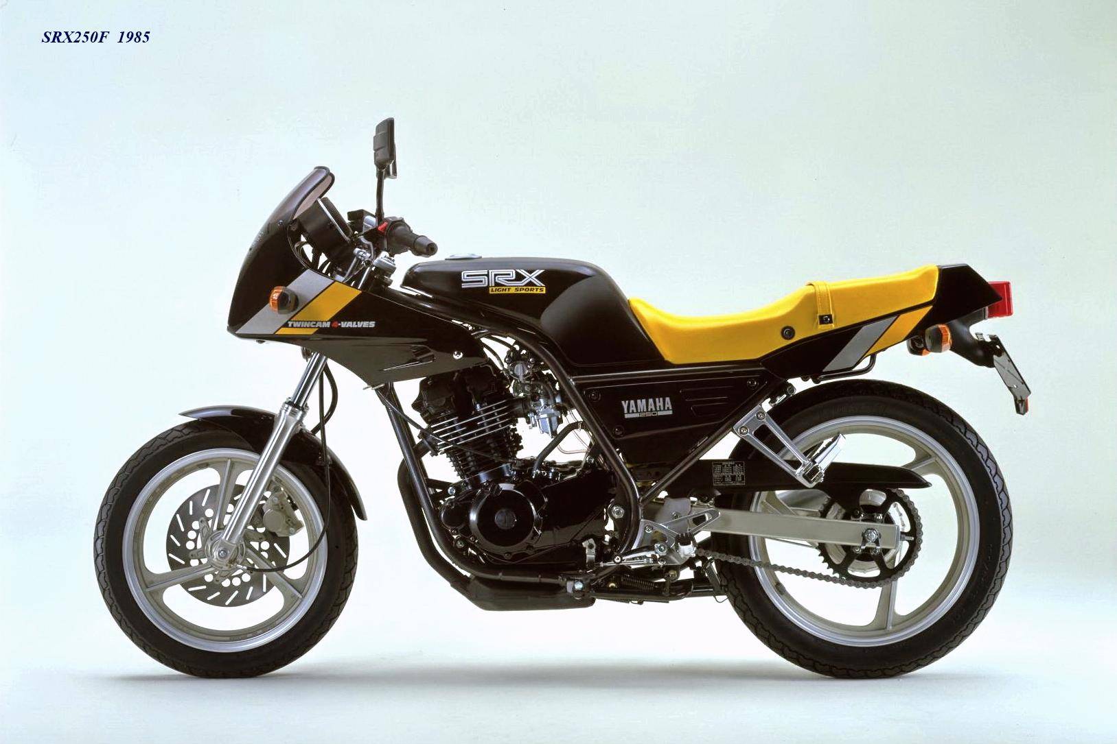 作為應(yīng)對市場競爭的手段,Yamaha 在 1984 年首次推出了 SRX250(本土版的工廠編號為 5 IY/Y24PV)。該車搭載一副從越野車 XT250 的動力單元升級而來的風(fēng)冷四沖程單氣缸、DOHC 四氣閥的發(fā)動機(jī)(當(dāng)時的 XT250 采用 SOHC 兩氣閥的發(fā)動機(jī)),缸徑、行程為 73 mm x 59.6 mm,排氣量 249 cc,配備了 Yamaha 獨(dú)創(chuàng)的 Y.D.I.S(Yamaha Digital Intake System,Yamaha 數(shù)字式進(jìn)氣系統(tǒng),也就是每個進(jìn)氣的氣閥、都配備了對應(yīng)的進(jìn)氣通道和化油器,單氣缸、雙化油器)技術(shù),讓車輛在低轉(zhuǎn)速之下、依然有著極佳的油門響應(yīng);標(biāo)配了電啟動,六檔的變速齒輪箱,最大馬力輸出 32 匹。