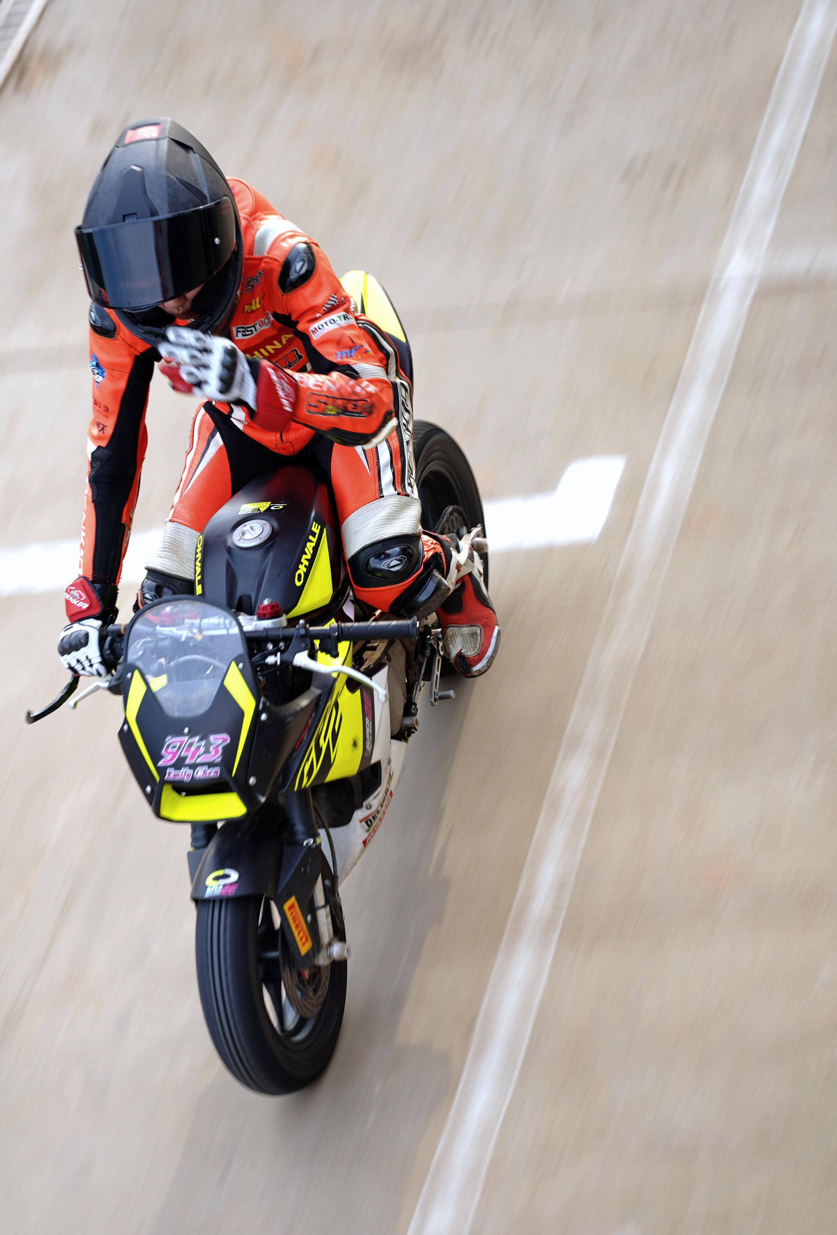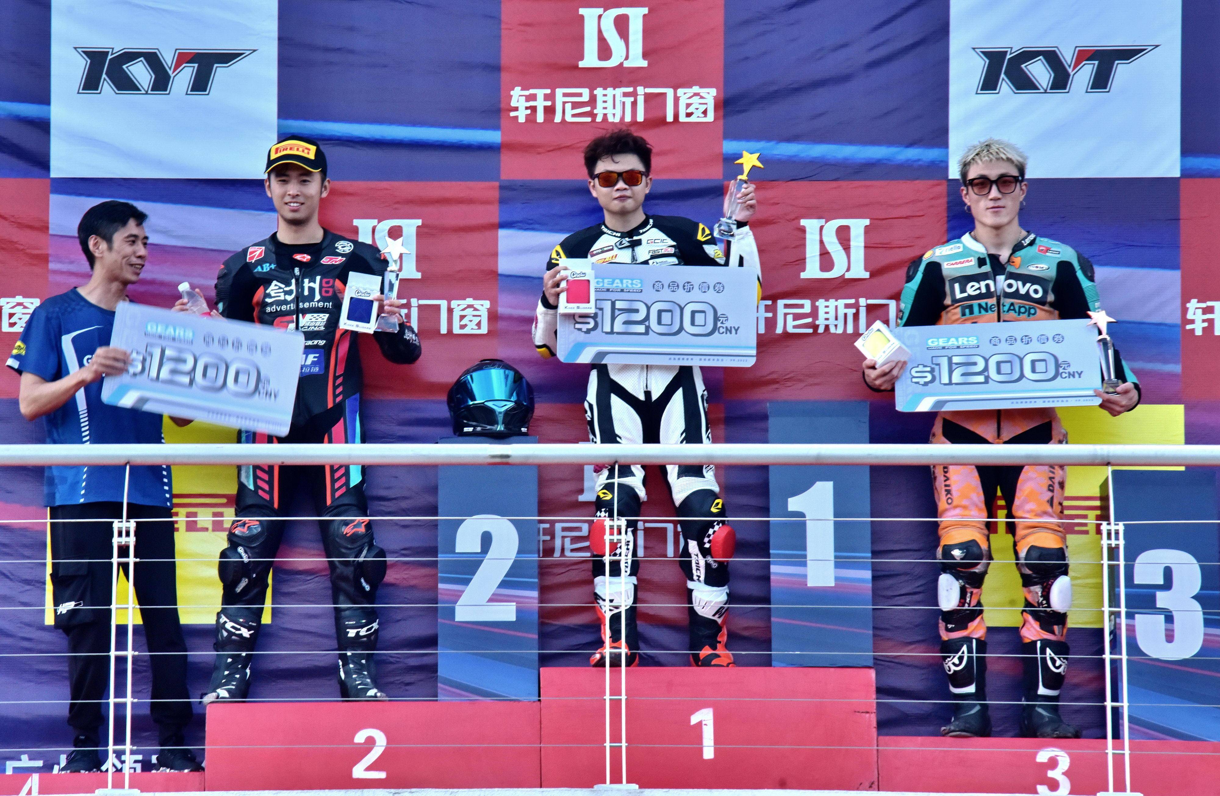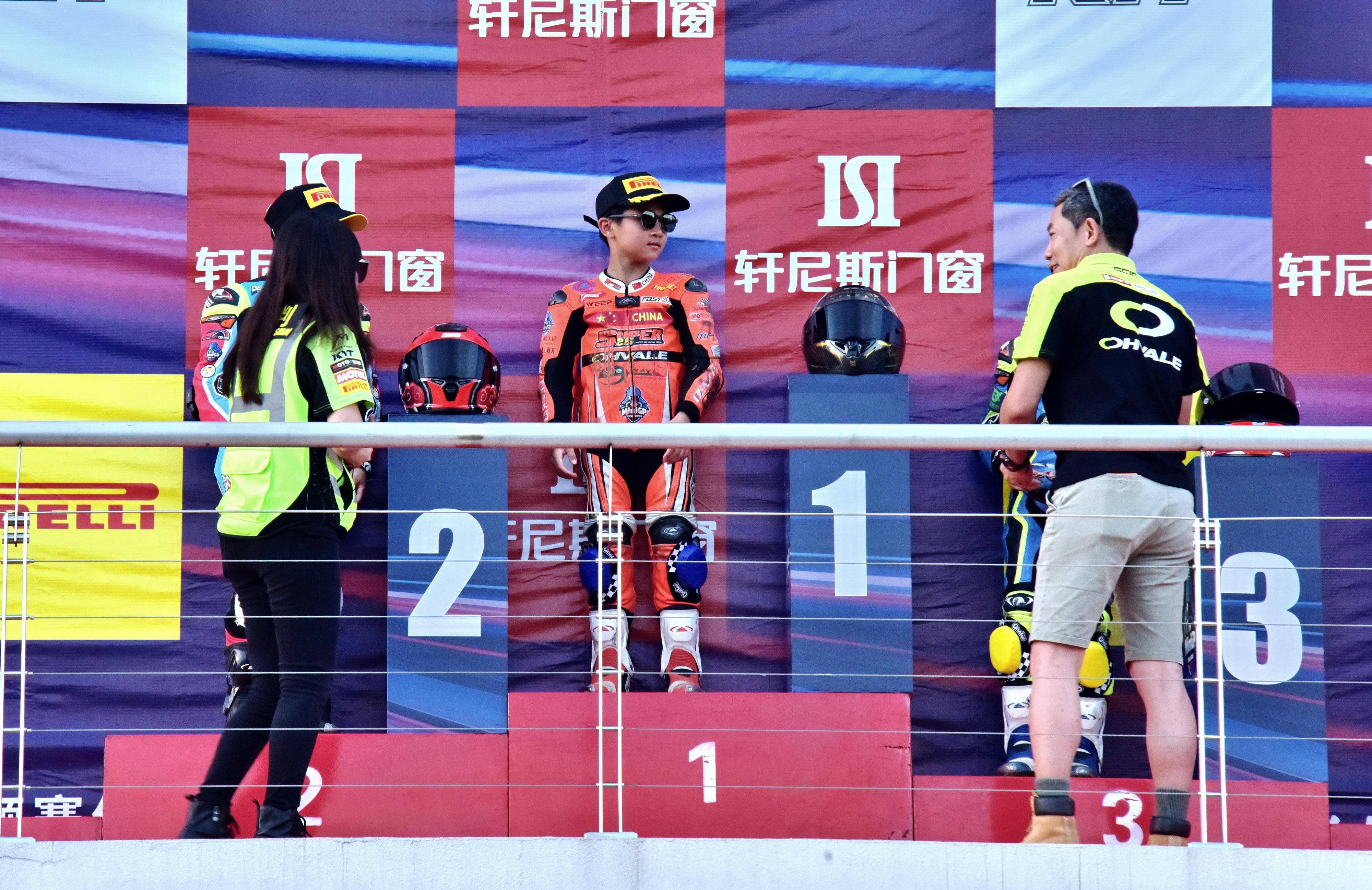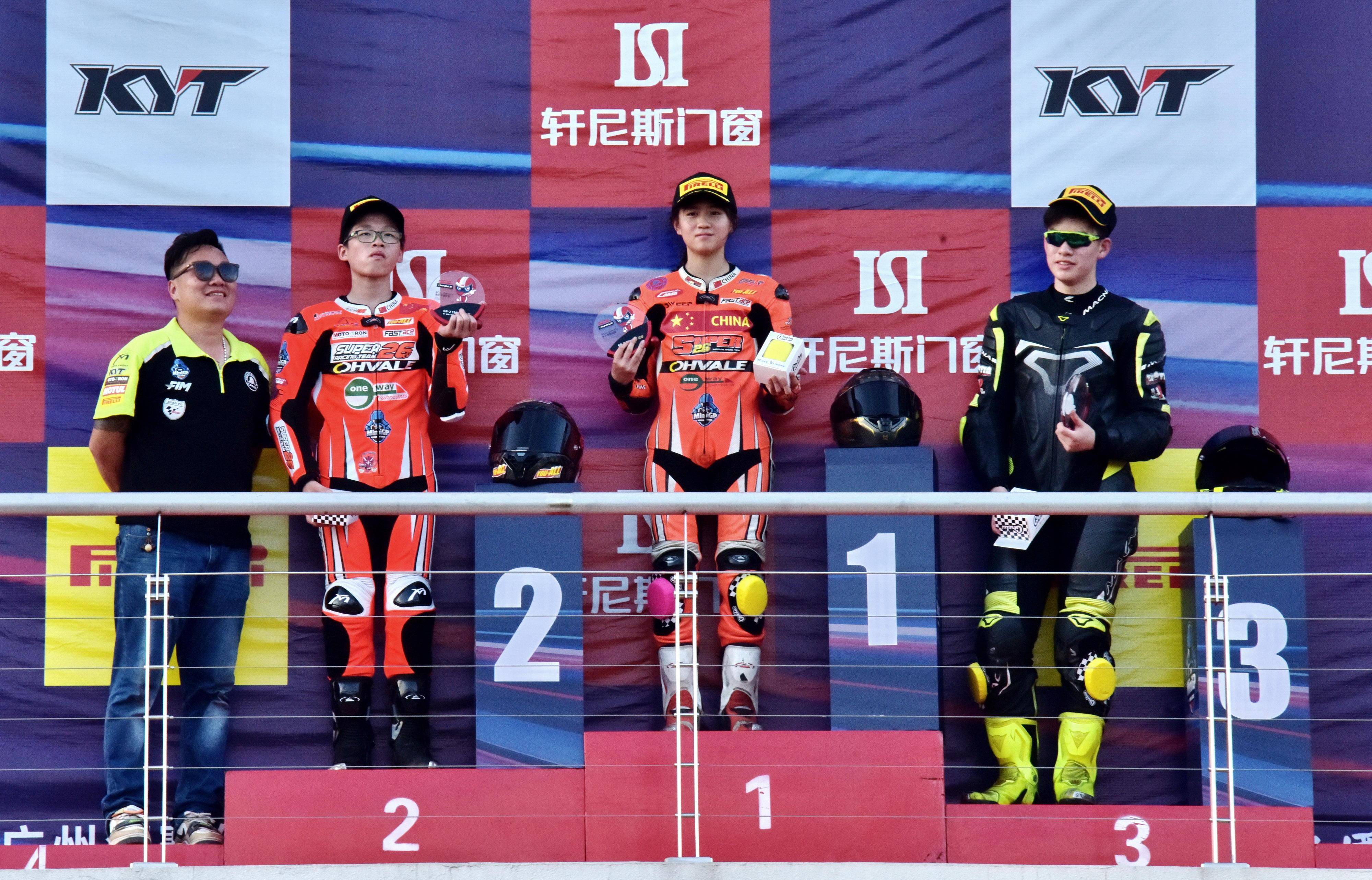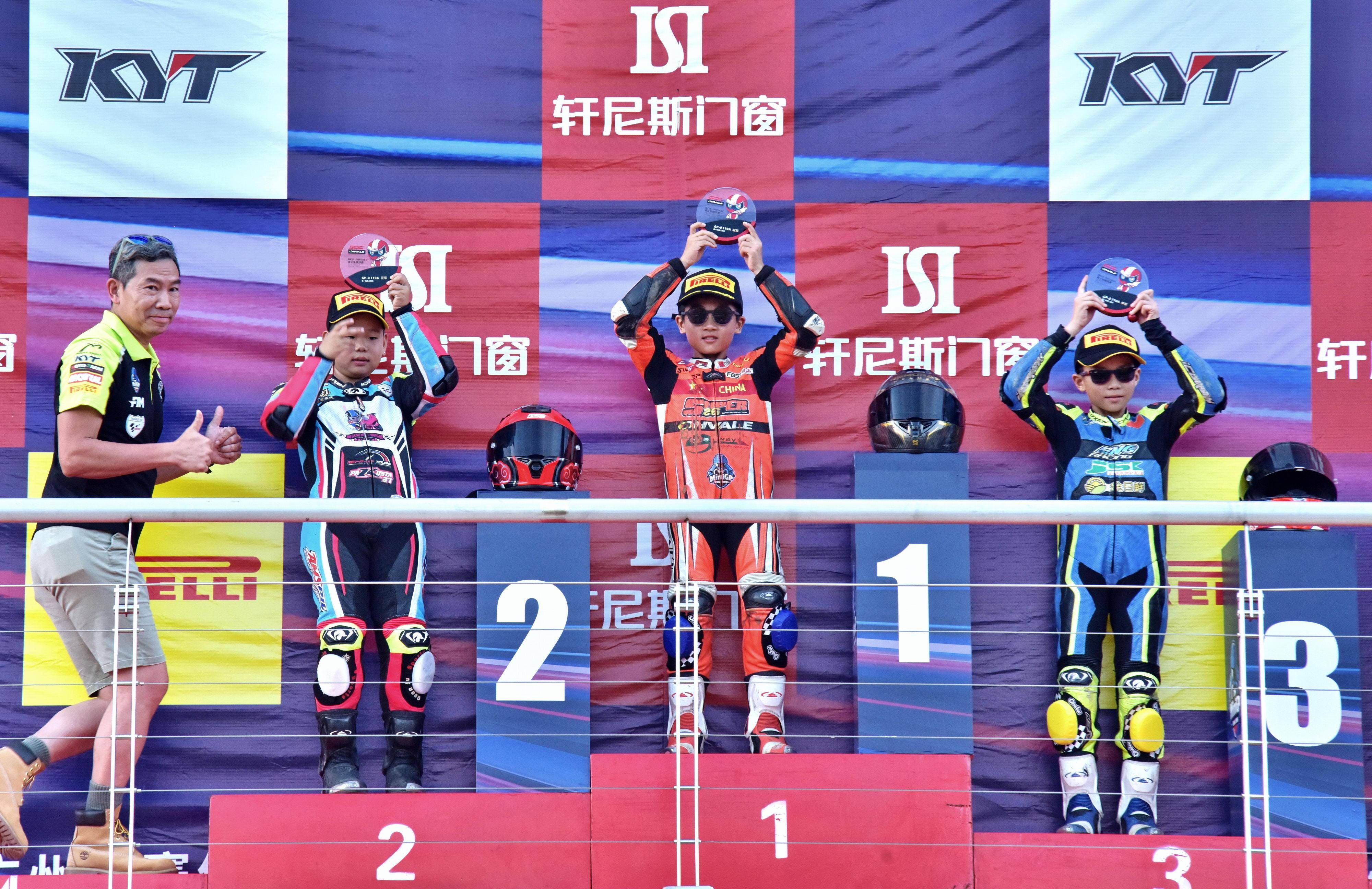 除了 Ohvale 的競(jìng)賽組別,從第二位發(fā)車、年輕的車隊(duì)創(chuàng)辦人廖梓旭,也奪得了第二節(jié)比賽的冠軍。