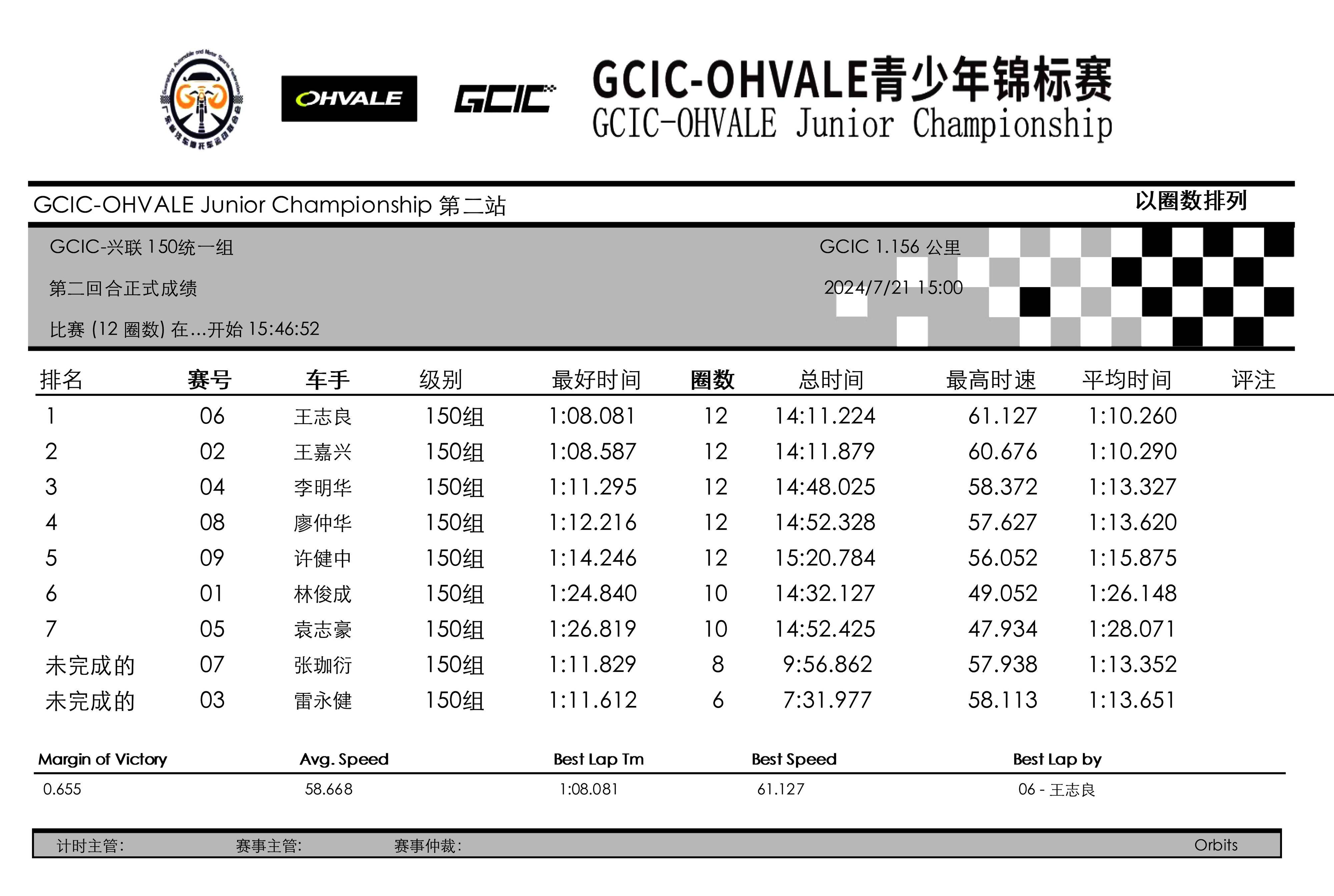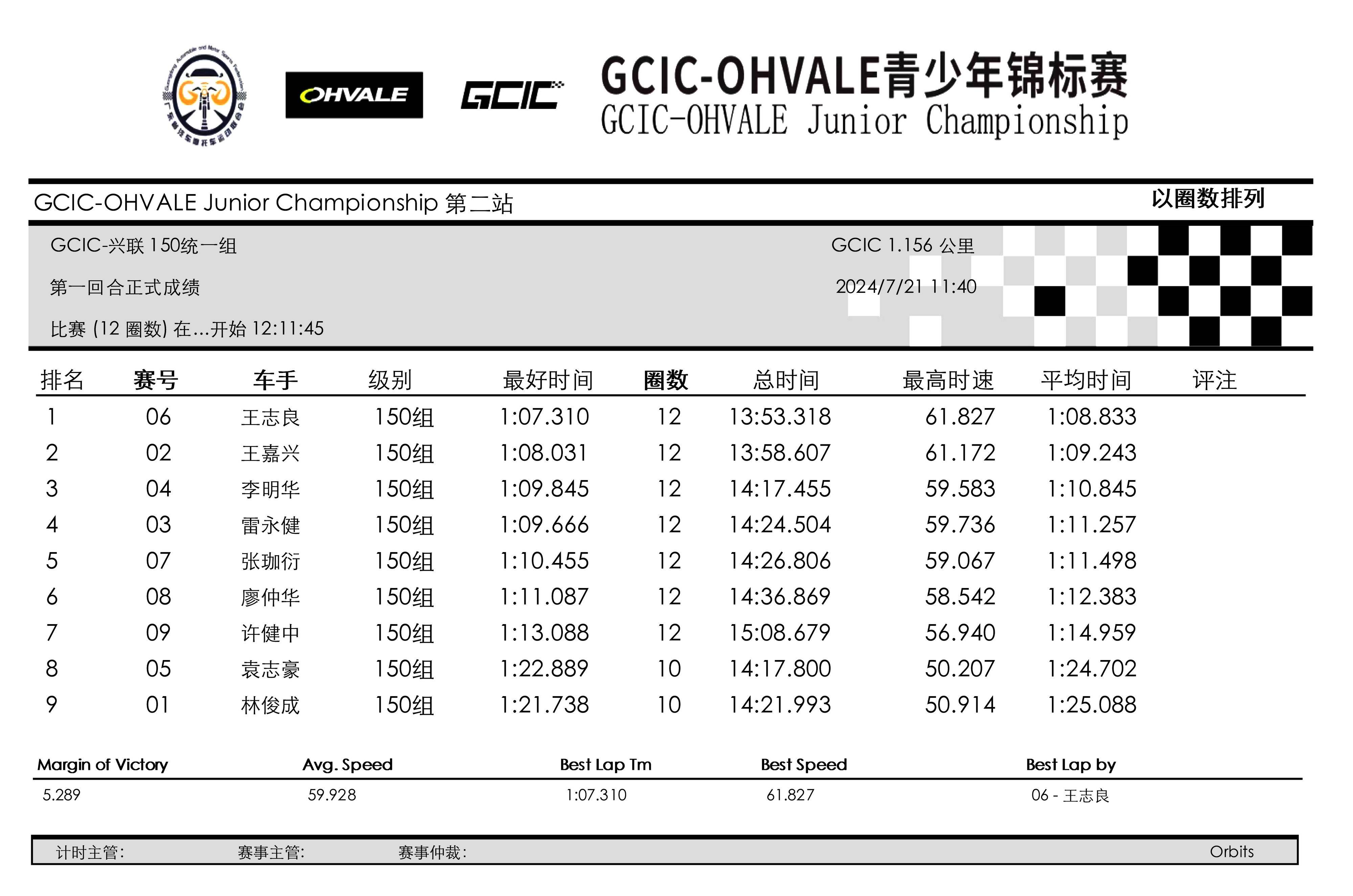注:GCIC 會(huì)賽興聯(lián) 150 統(tǒng)一組,計(jì)算最后名次的規(guī)則、是依據(jù)兩節(jié)正式比賽之后的綜合成績(jī)。
