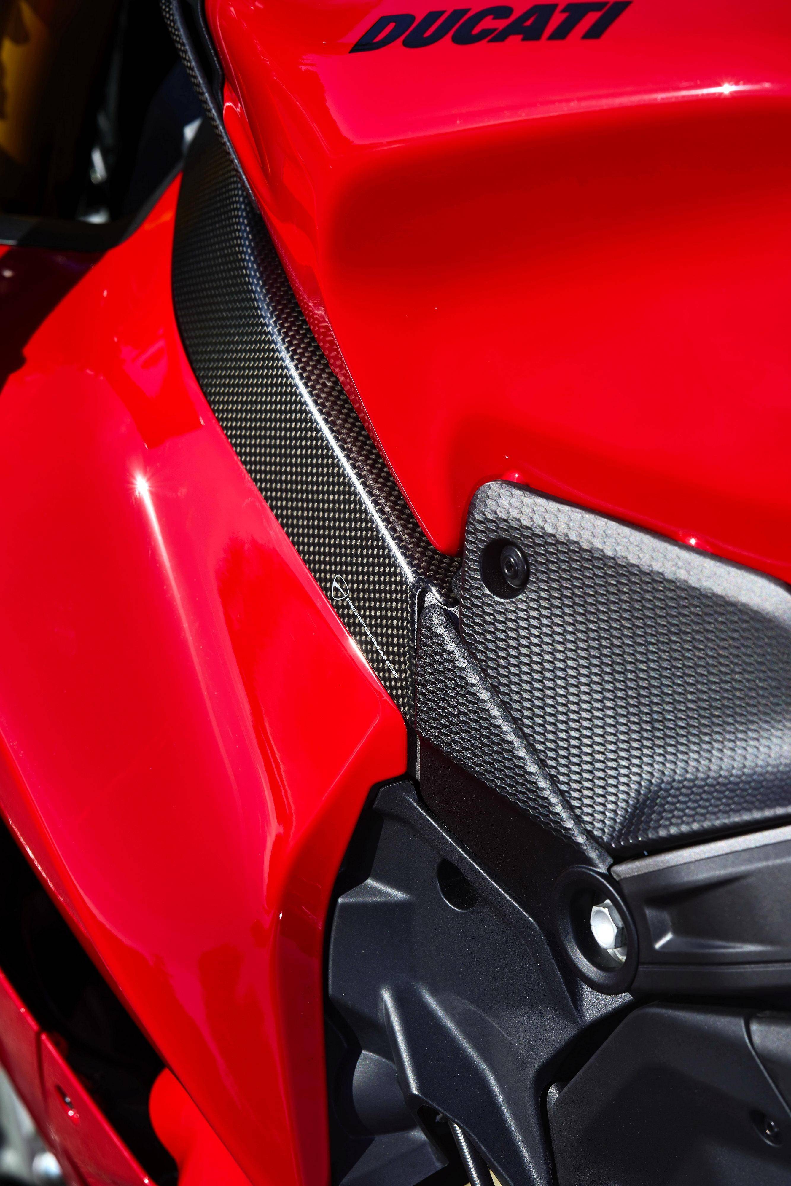 車體方面,為了使 Panigale V4 能夠充分利用 FIM WorldSBK 超級(jí)跑車世界錦標(biāo)賽中所使用的 Pirelli 倍耐力新型輪胎,廠方的賽車部門對(duì)車架和后搖臂的剛度要求提出了新的目標(biāo),新車的主車架經(jīng)過修改,并換裝了全新設(shè)計(jì)的左右對(duì)稱中空式后搖臂(現(xiàn)行款采用后單搖臂);設(shè)計(jì)靈感來自 916 的新外觀造型,集成了空氣動(dòng)力學(xué)組件的新整流罩、能將空氣阻力降低大約 4% 。