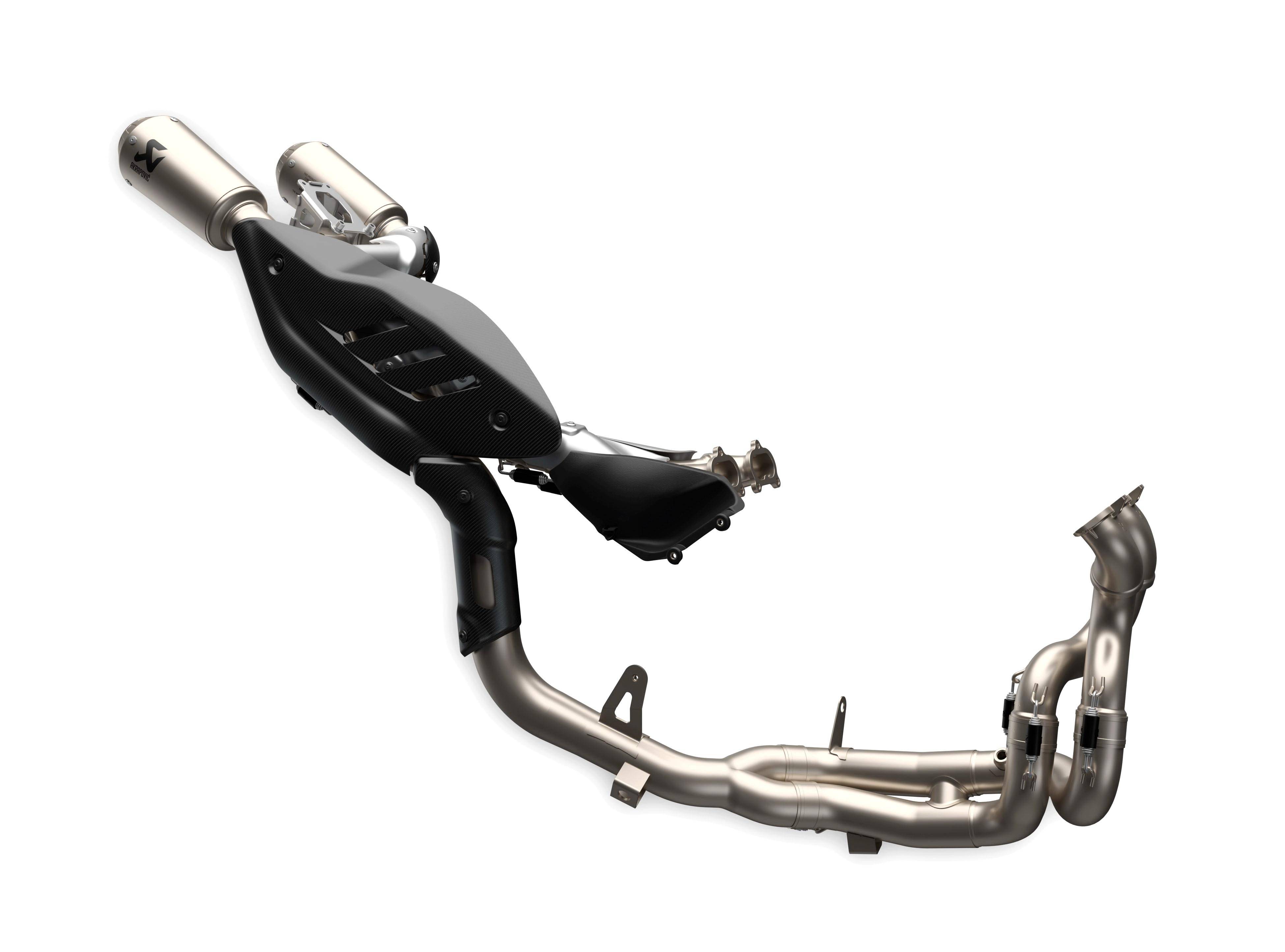 配置方面,新的 2025 Panigale V4 系列搭載一副經(jīng)過改進(jìn)的 V 型 90 度四氣缸 Desmosedici Stradale 發(fā)動(dòng)機(jī),缸徑、行程維持在 81 mm x 53.5 mm,排氣量 1103 cc 保持不變。發(fā)動(dòng)機(jī)內(nèi)部,配氣系統(tǒng)經(jīng)過升級(jí),進(jìn)氣系統(tǒng)、ECU 數(shù)據(jù)包也經(jīng)過修改,符合歐五 + 排放標(biāo)準(zhǔn);新車在原廠標(biāo)準(zhǔn)狀態(tài)下的峰值動(dòng)力輸出為 158.9 kw(約 216 匹,歐洲版?,F(xiàn)行款歐洲版的峰值動(dòng)力輸出為 158.5 kw、約 215 匹),換裝了賽道規(guī)格、由 Akrapovic 阿克拉波維奇配套的 Ducati Performance 杜卡迪高性能原廠賽車排氣系統(tǒng),最大動(dòng)力輸出則可提高到 228 匹。