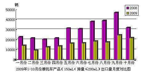據(jù)海關(guān)提供出口統(tǒng)計數(shù)據(jù)顯示,由中國汽車工業(yè)協(xié)會編輯整理,現(xiàn)將2009年10月份摩托車產(chǎn)品(150mL<排量≤200mL)出口情況分析如下: