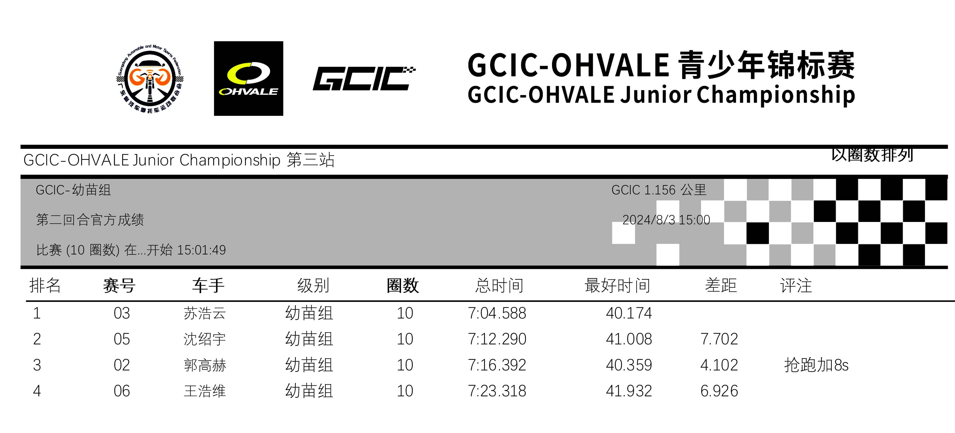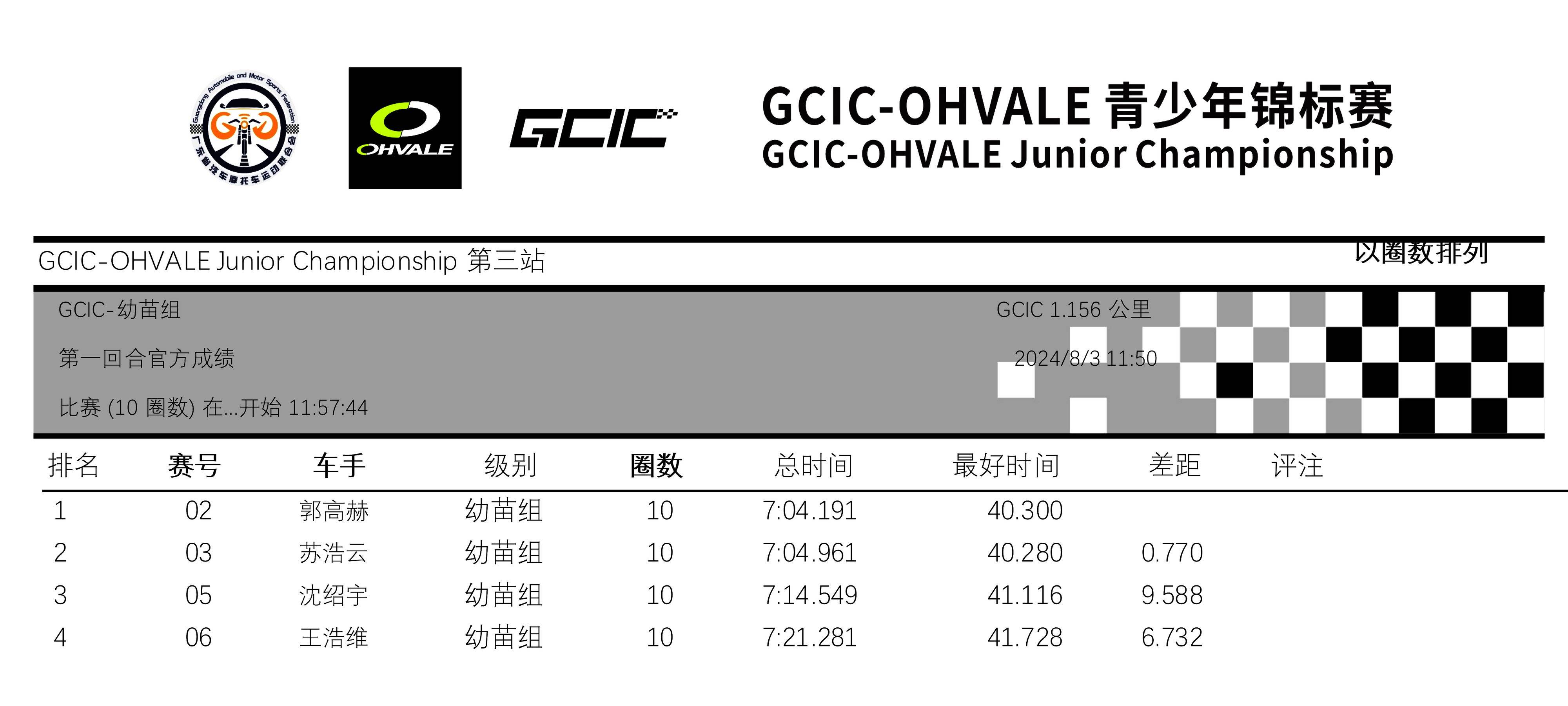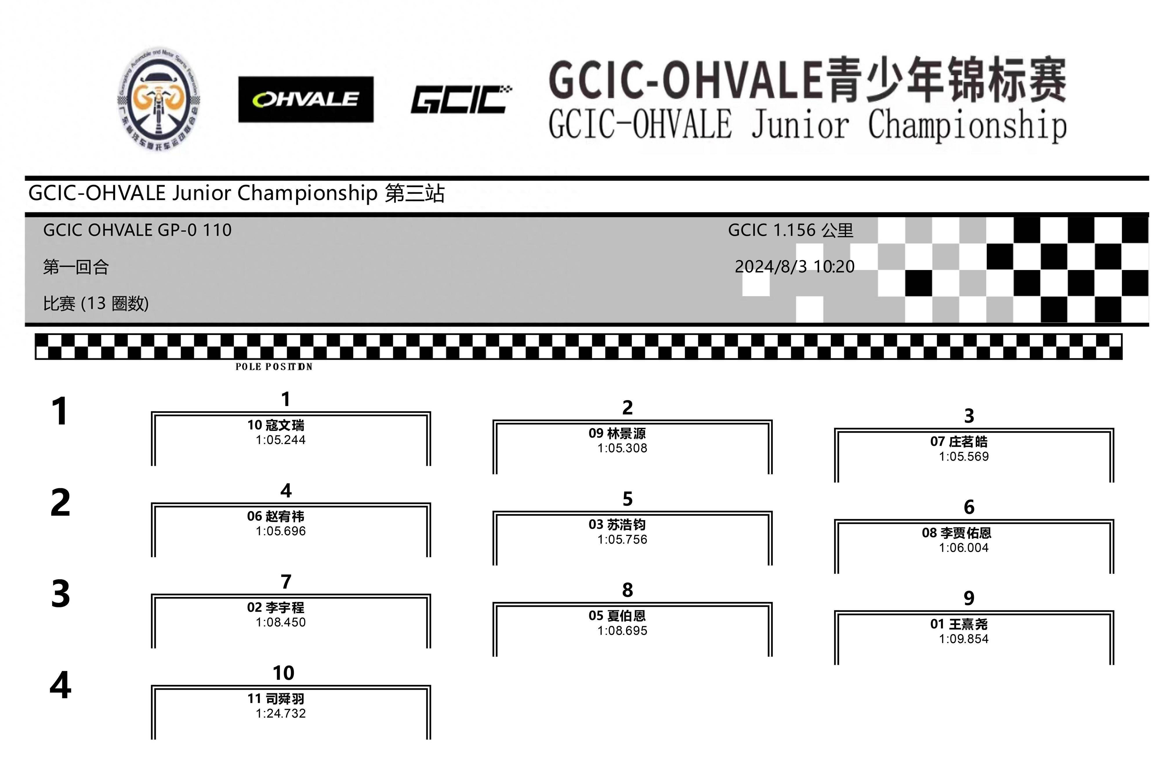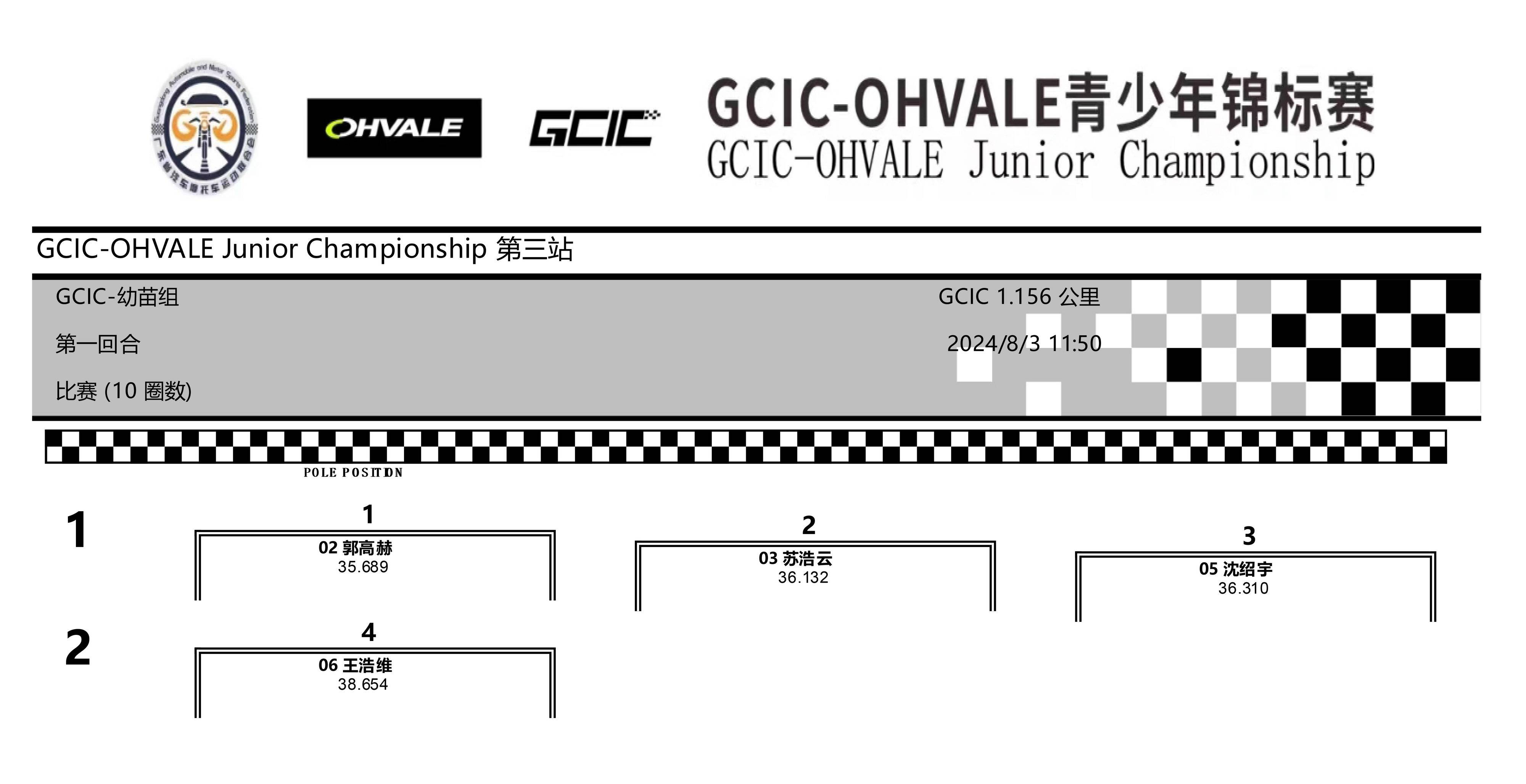 GCIC 會賽、幼苗組,從上一場的第二站比賽開始、采用了半場賽道的形式,駕駛 2 號車的郭高赫、在排位賽刷出了 35.689 秒的最佳圈速,比第二站比賽時的 39.878 秒時間、有了大幅的提升。