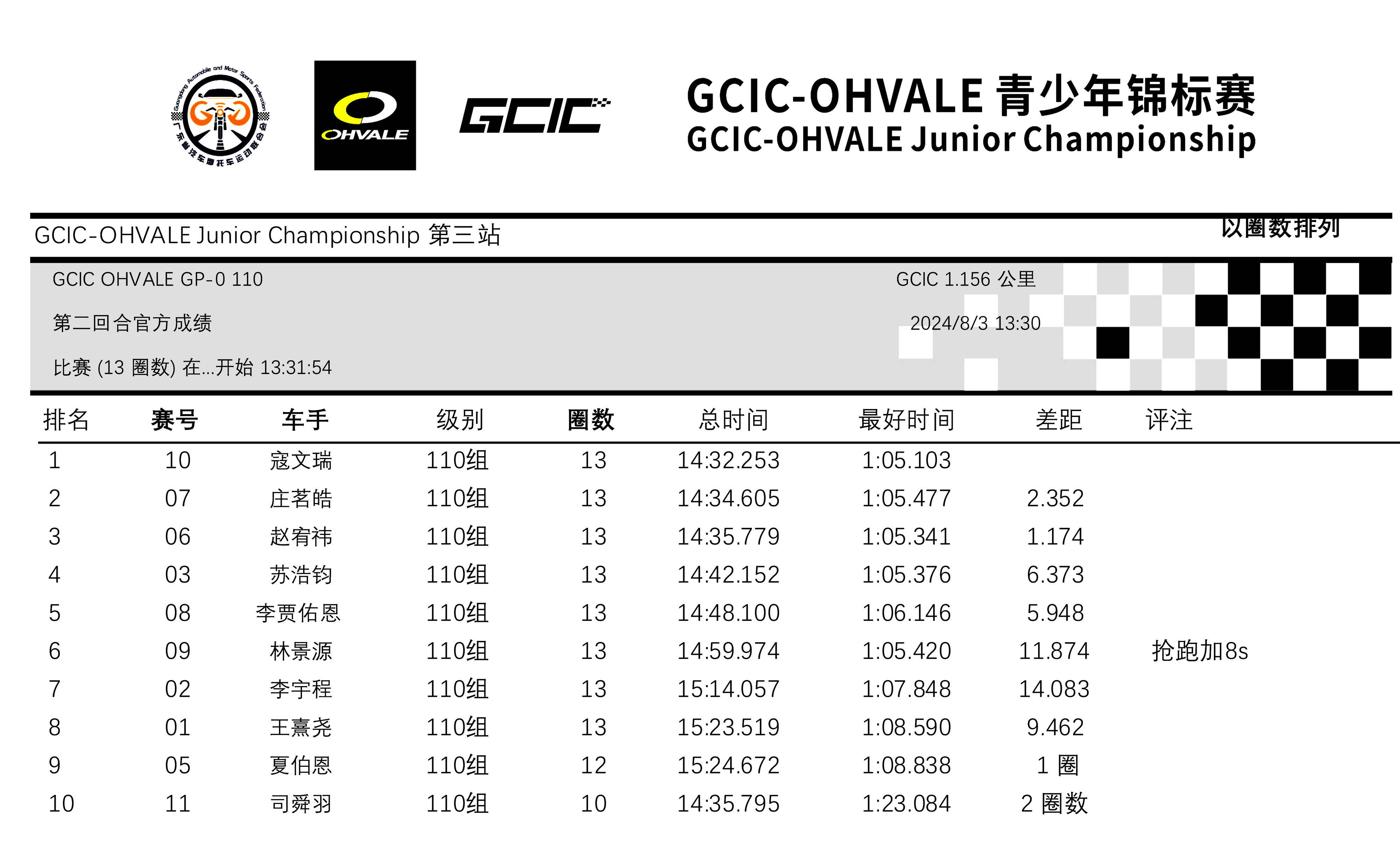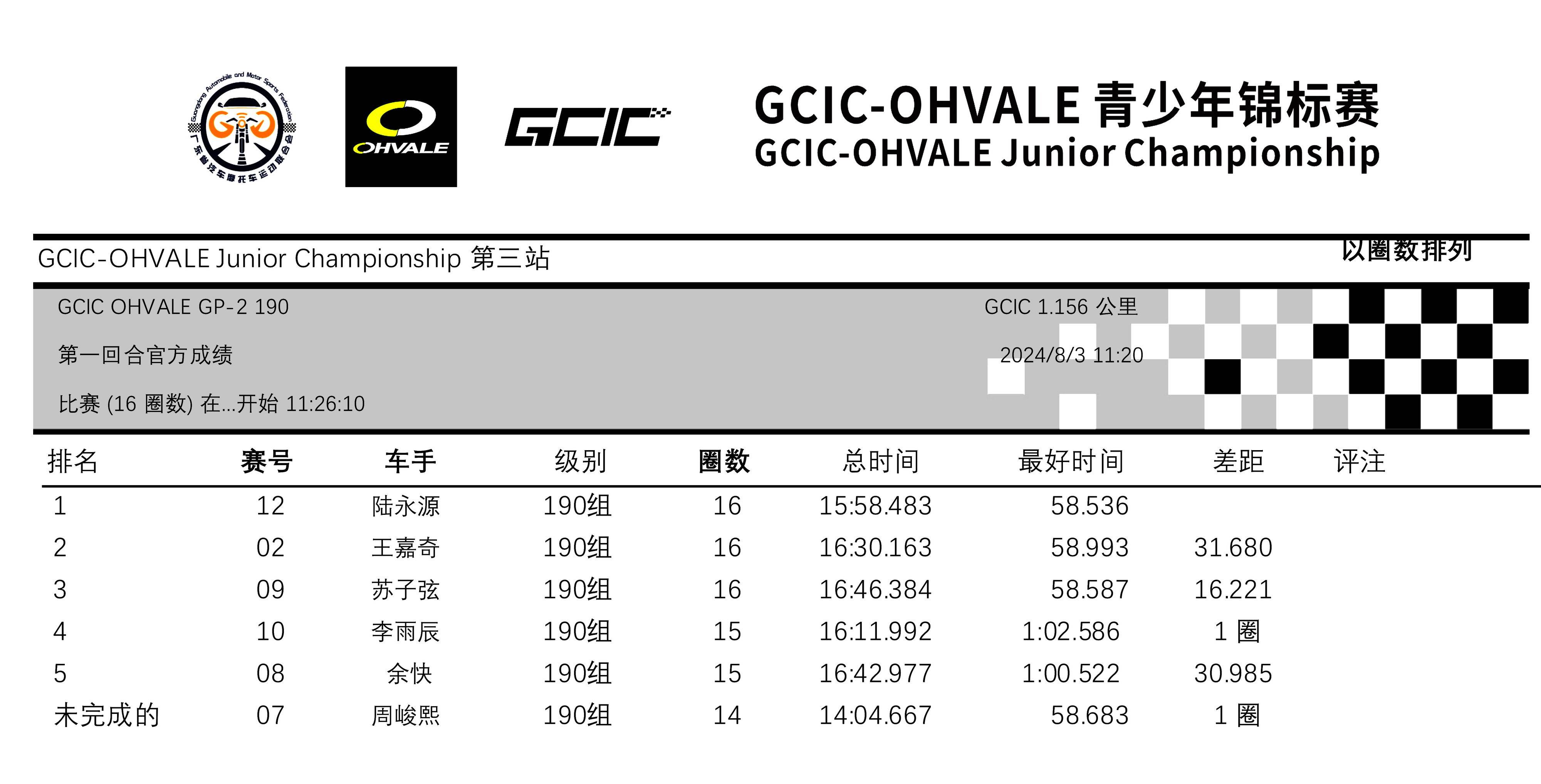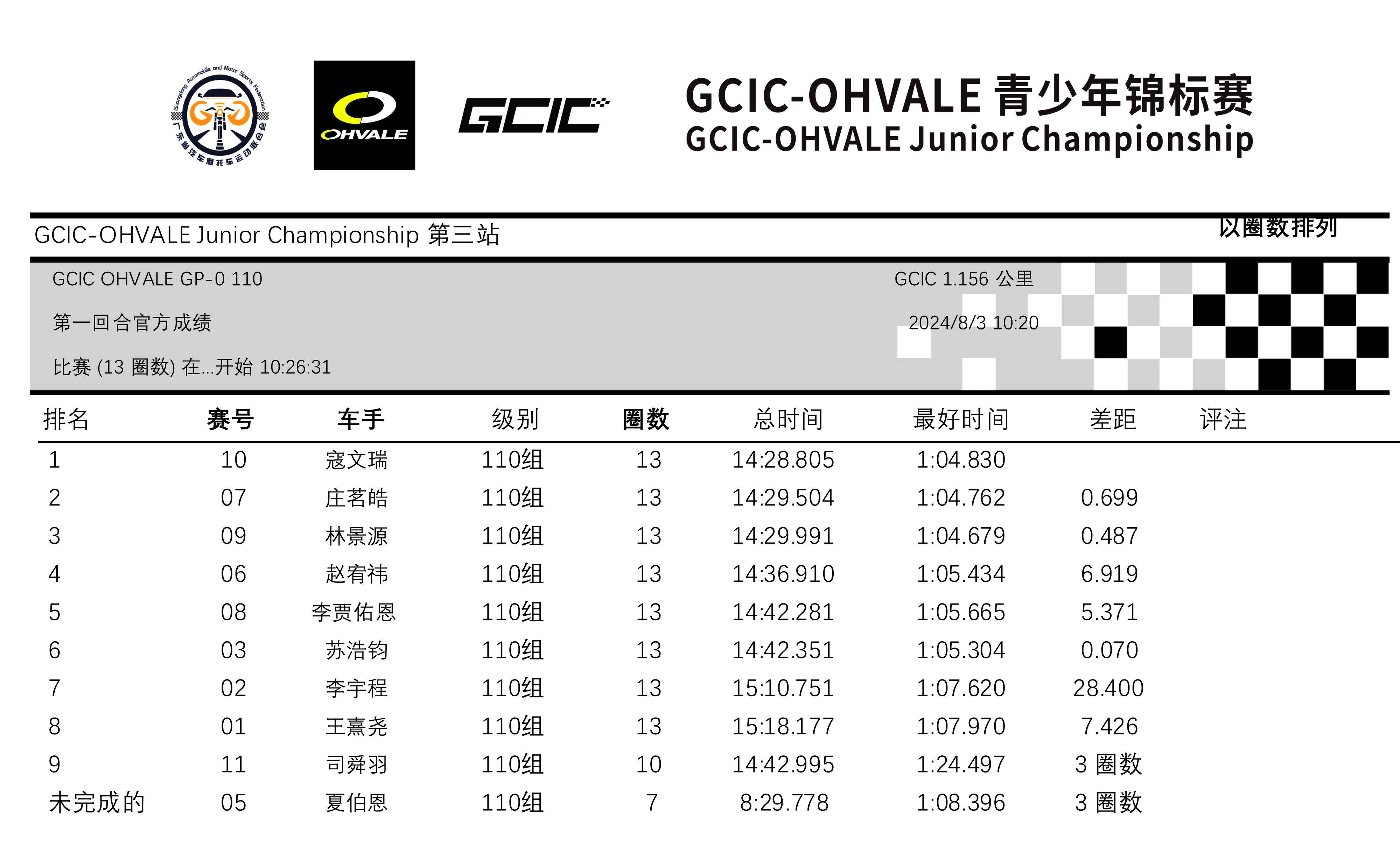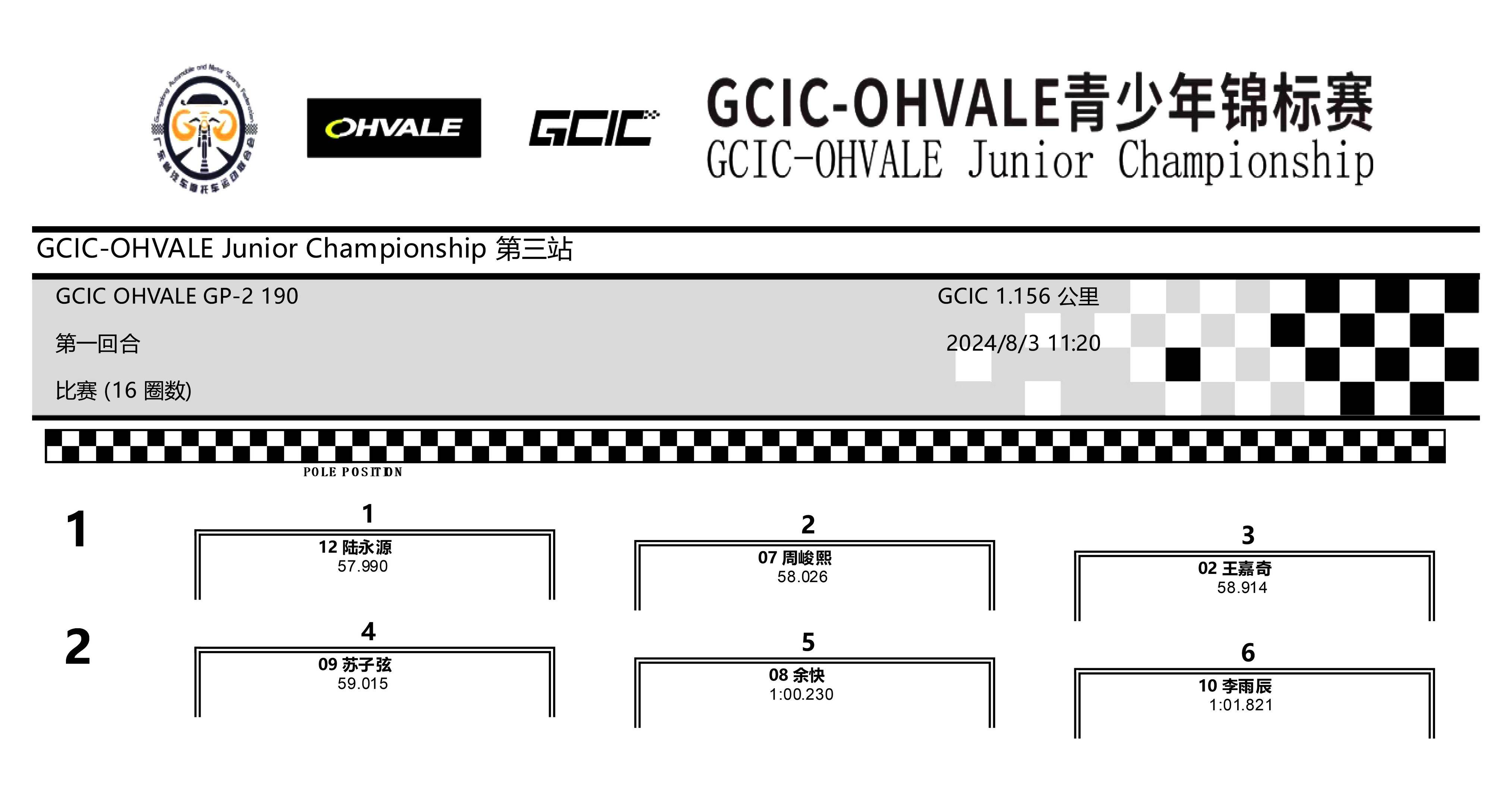 GCIC 會賽、幼苗組,從上一場的第二站比賽開始、采用了半場賽道的形式,駕駛 2 號車的郭高赫、在排位賽刷出了 35.689 秒的最佳圈速,比第二站比賽時的 39.878 秒時間、有了大幅的提升。