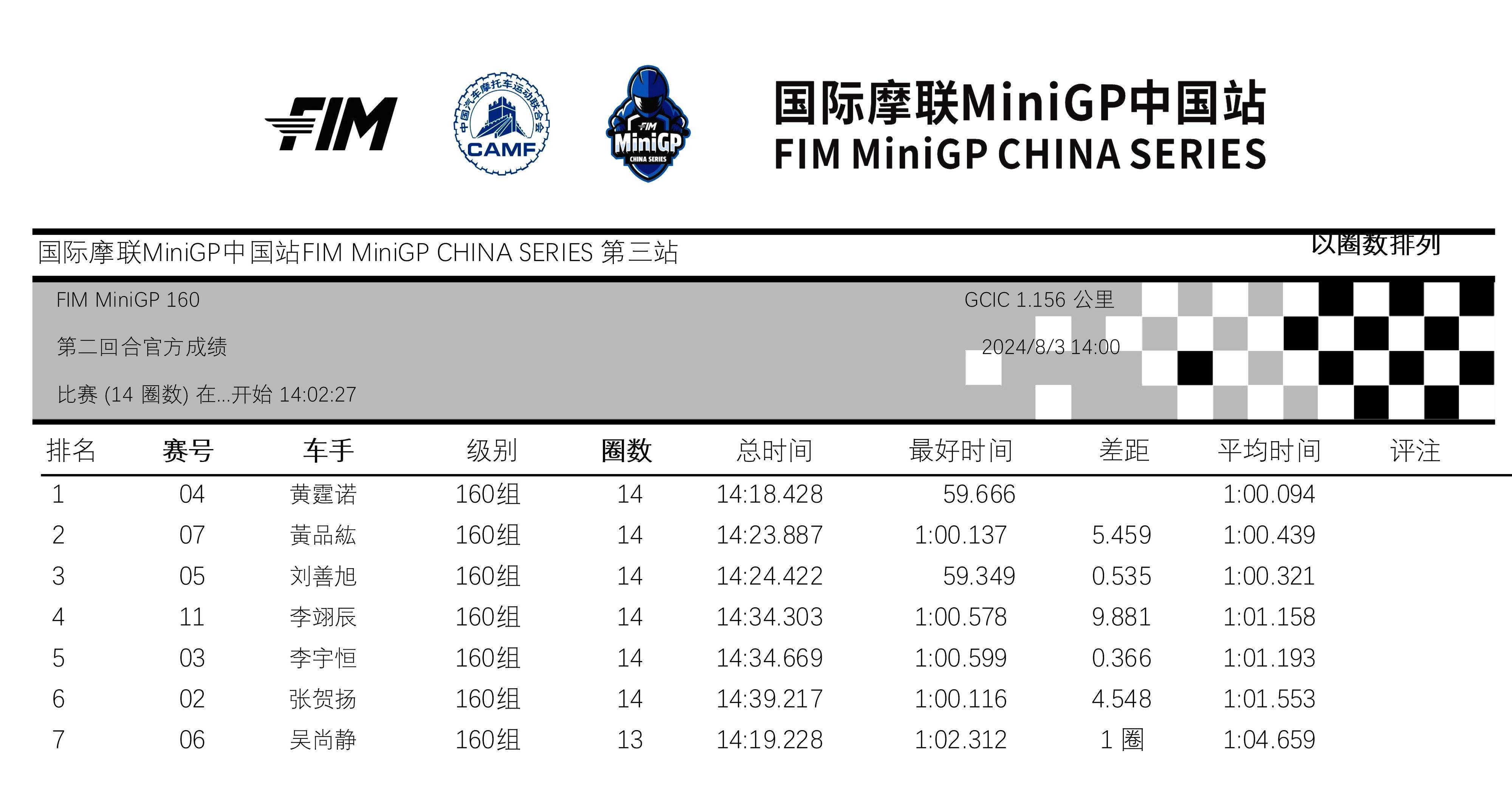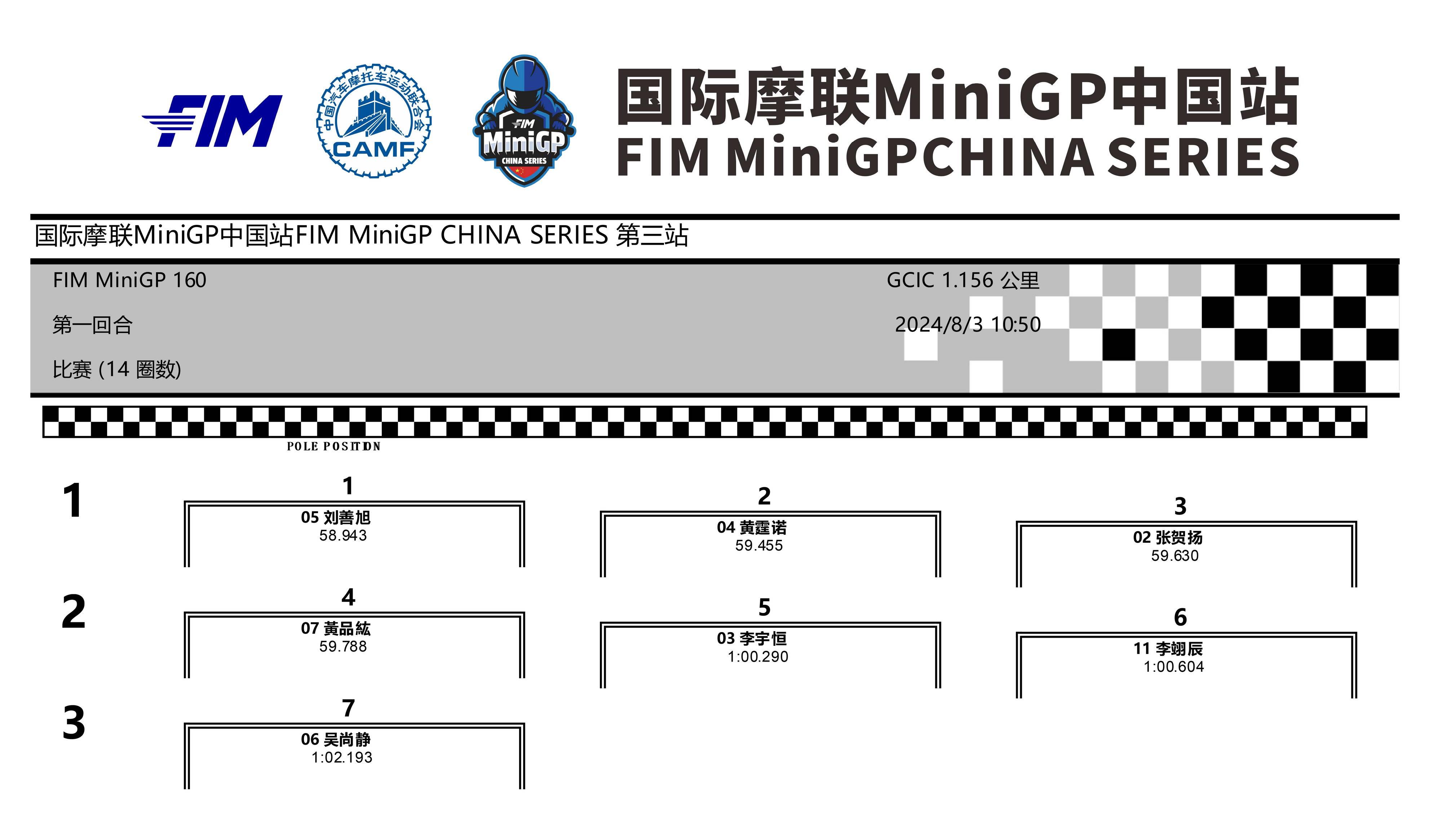 3、Ohvale GP-0 160 組:58.706 秒,伊凡(Qabil Irfan Bin Azlan),馬來西亞;中國車手 58.943 秒,劉善旭;