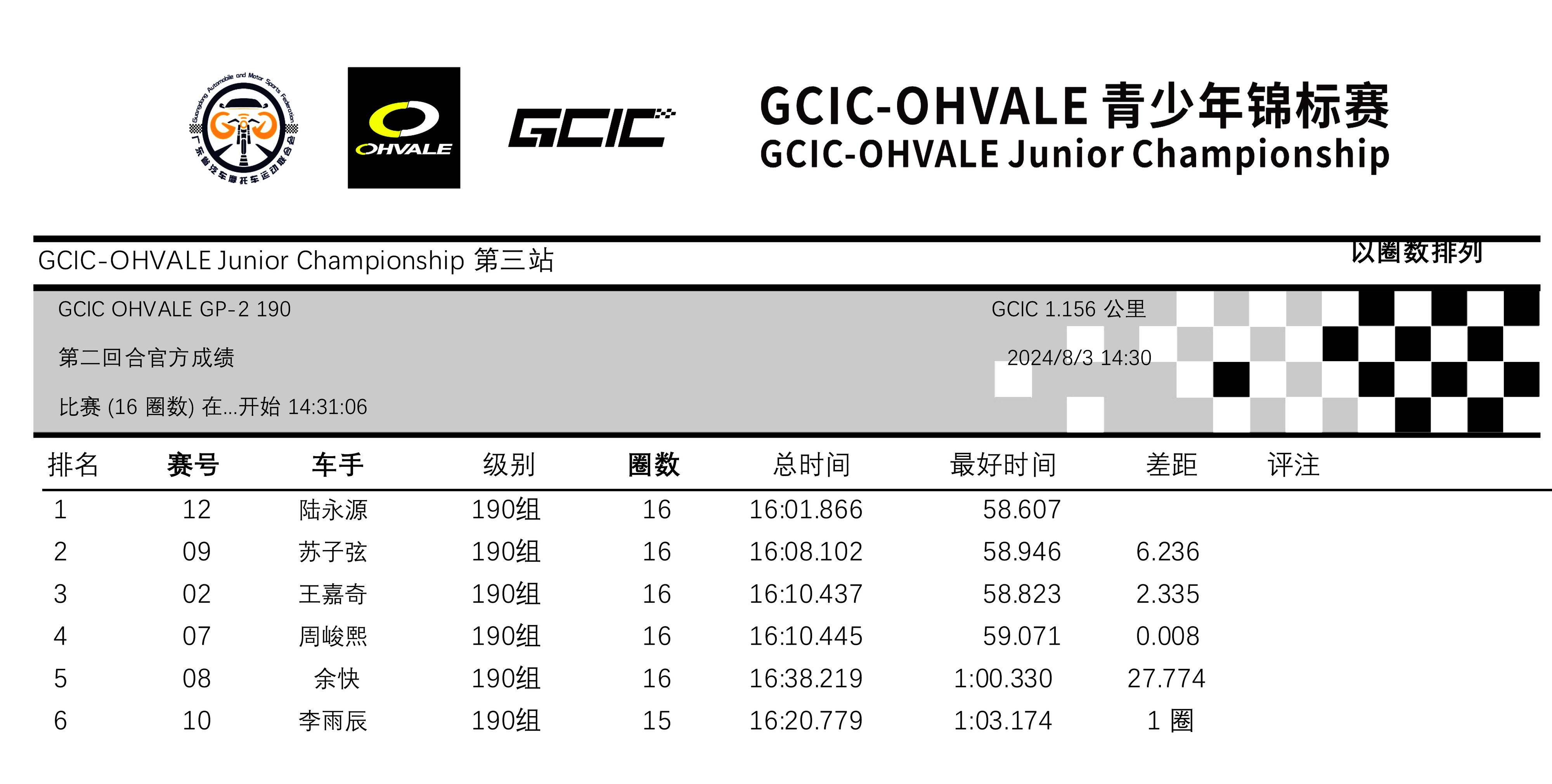 3、GCIC Ohvale 青少年錦標賽,采用 Ohvale GP-2 190 賽車的 190 組;