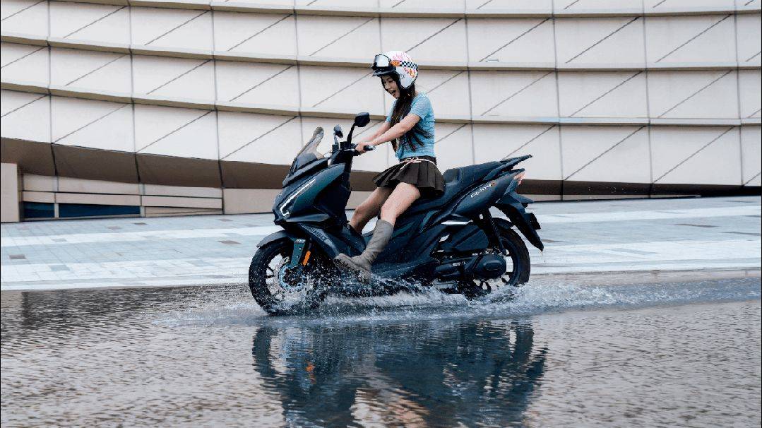 這里是人工湖,有一片淺淺的積水區(qū),瞬間有種想去玩水的沖動(dòng)。 巡弋150 GT四氣門引擎的動(dòng)力,啟動(dòng)瞬間的爆發(fā)力很強(qiáng),一個(gè)油門就沖了出去,濺起陣陣水花。雖然是涉水騎行,但有TCS,完全沒有打滑感,從干燥的水泥路面到積水的大理石積水區(qū),騎行通過(guò)沒有什么差異感。淺水區(qū)里稍擰油門,依然很自然的提速,也沒有打滑感,怎么騎都安全感滿滿。第一次騎著車子玩水,有點(diǎn)小激動(dòng)。