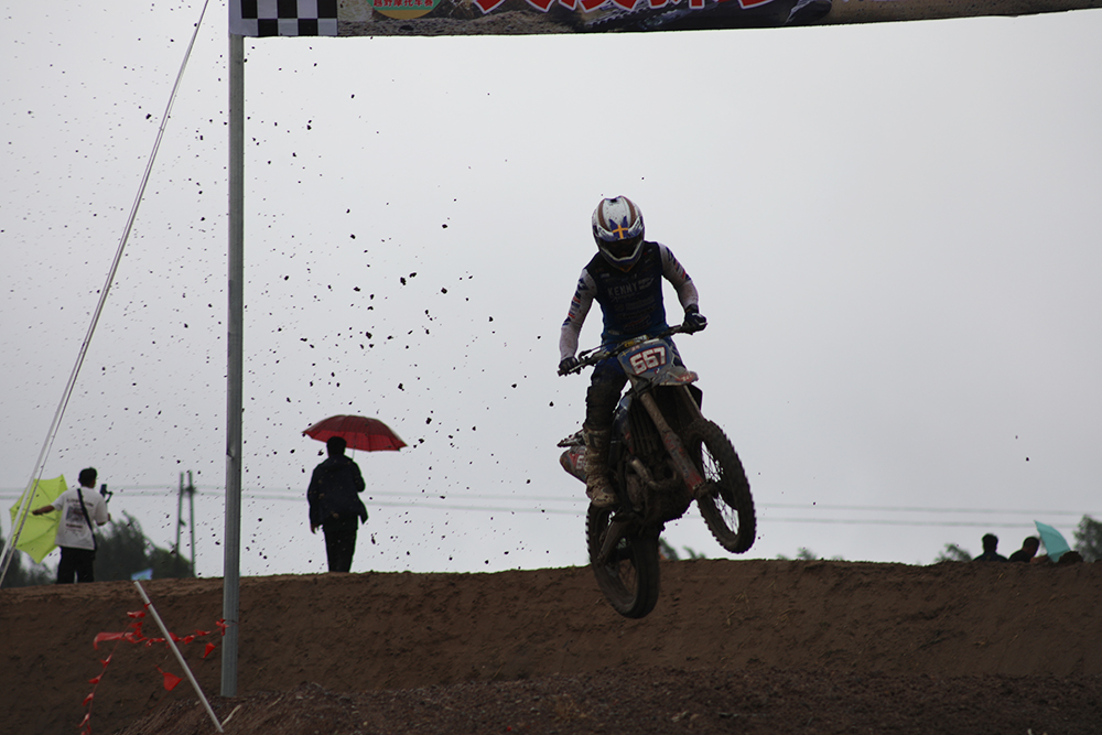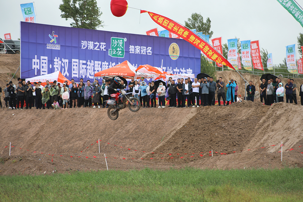 開幕式上進行了精彩的摩托車、越野車場地表演賽,賽車手們在由沙地筑成的高低起伏賽道上漂移過彎、空中飛躍,精準的過彎技巧贏得了現(xiàn)場觀眾的陣陣掌聲和歡呼聲。