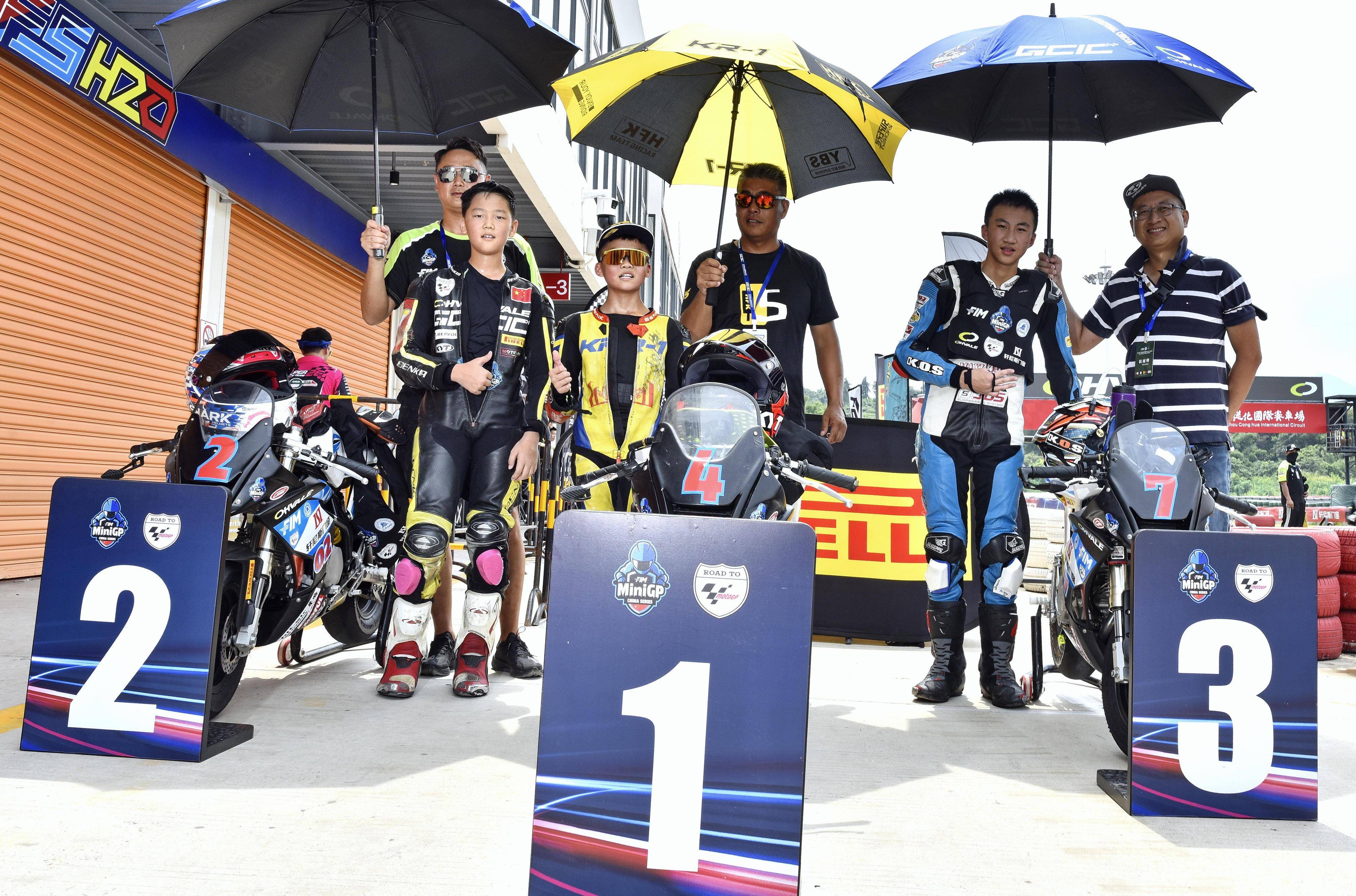 作為焦點組別的 FIM MiniGP 160 組,刷新了這一組別圈速紀錄、4 號車的黃霆諾,順利奪得了兩節(jié)正式比賽的冠軍,提前一站、鎖定了進軍西班牙年度總決賽的席位。2 號車的張賀揚、7 號車的黃品纮獲得了第一節(jié)比賽的亞軍、季軍;在第一節(jié)比賽的后段發(fā)生摔車意外、5 號車的劉善旭,拿到了第二節(jié)比賽的亞軍,張賀揚獲得了季軍。
