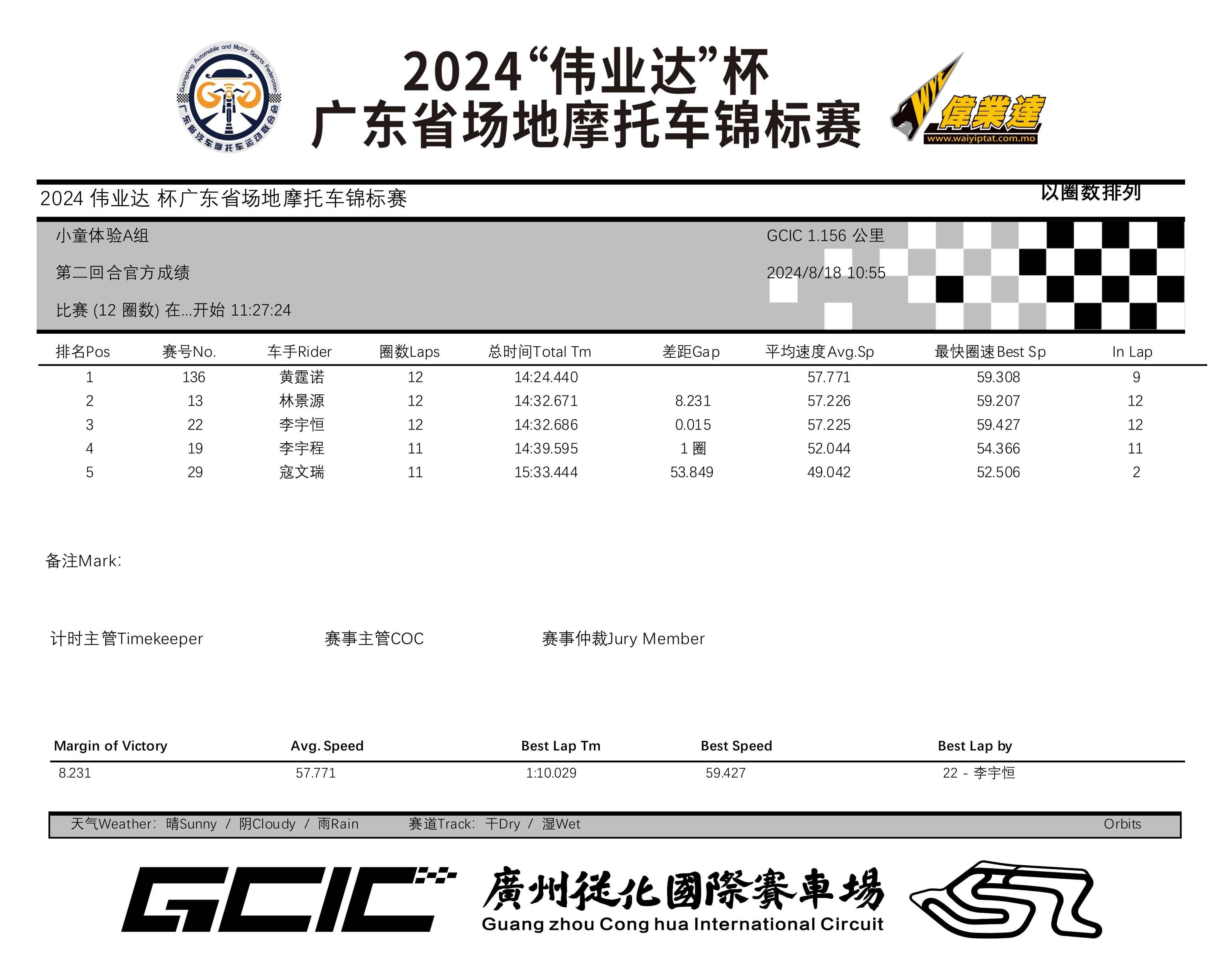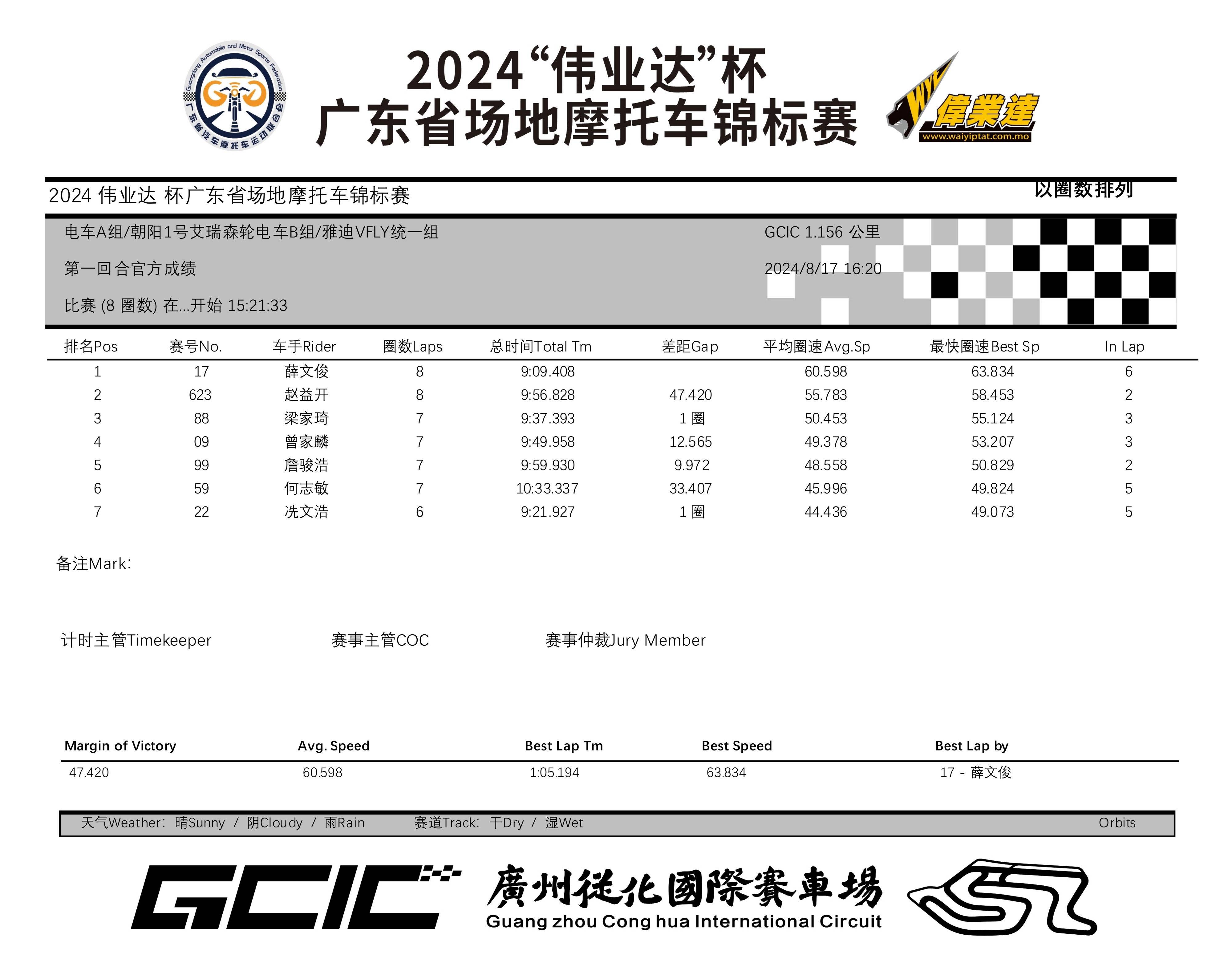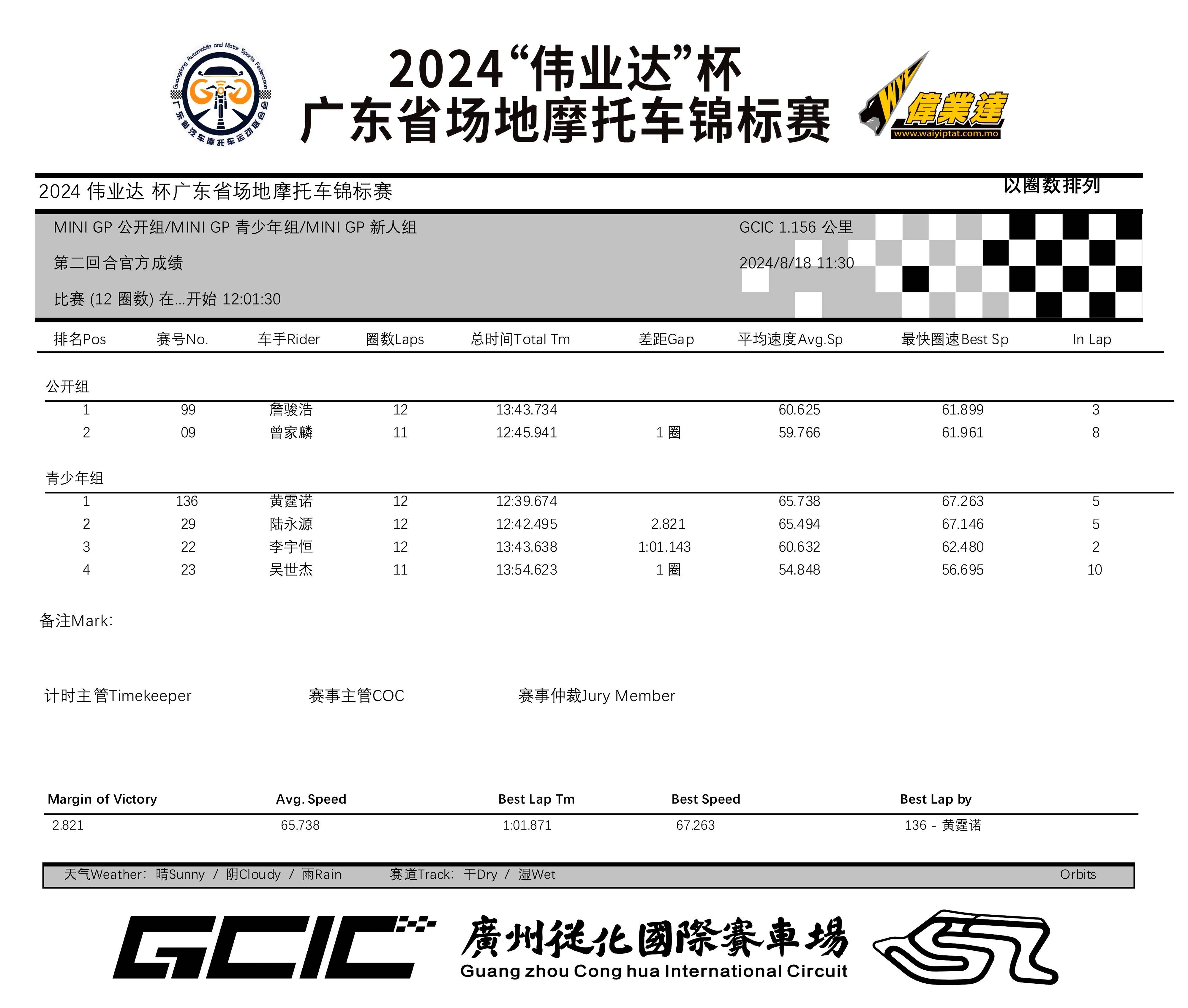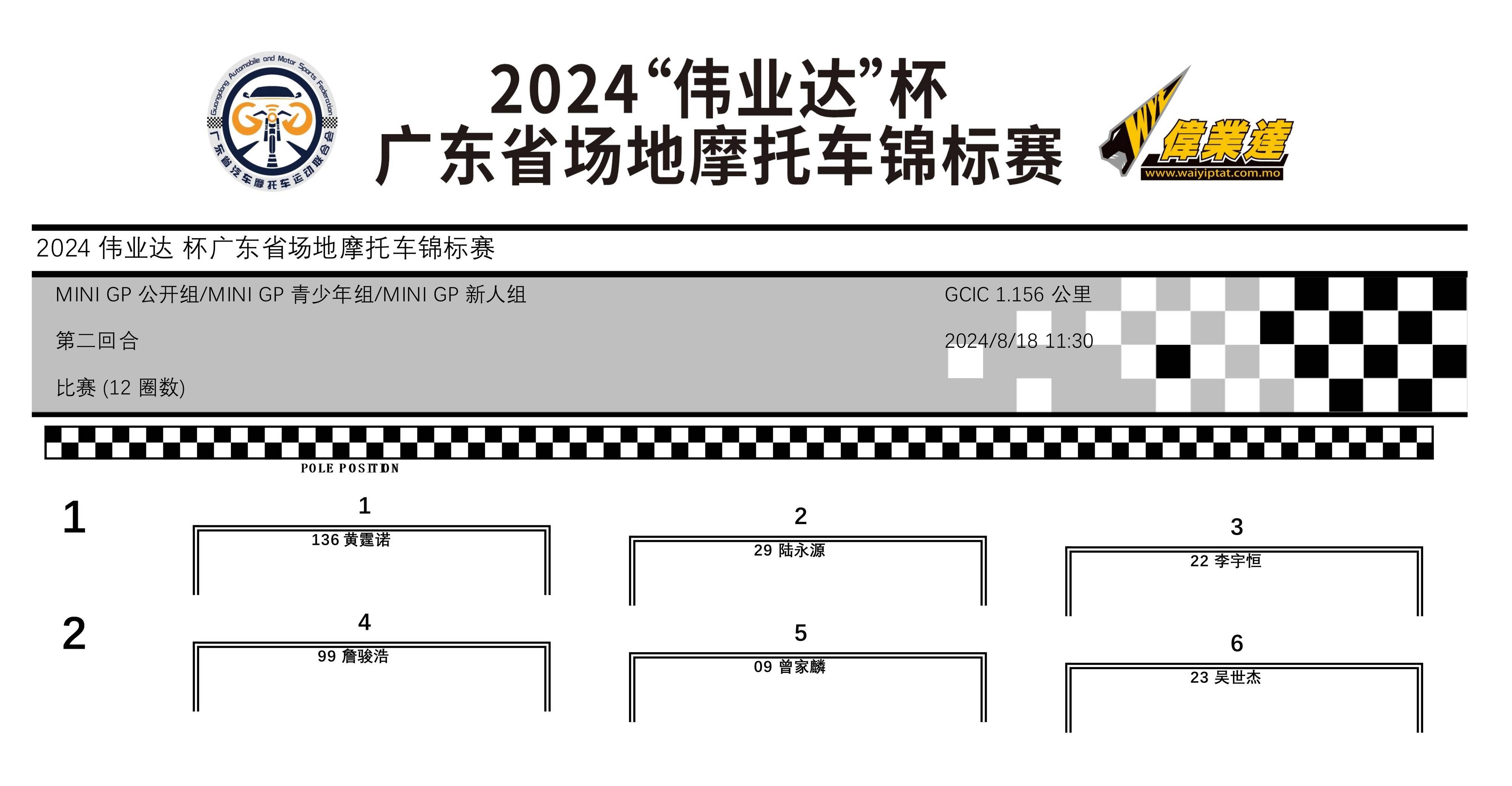 2024 偉業(yè)達(dá)杯 廣東省場(chǎng)地摩托車(chē)錦標(biāo)賽廣州從化站:成績(jī)