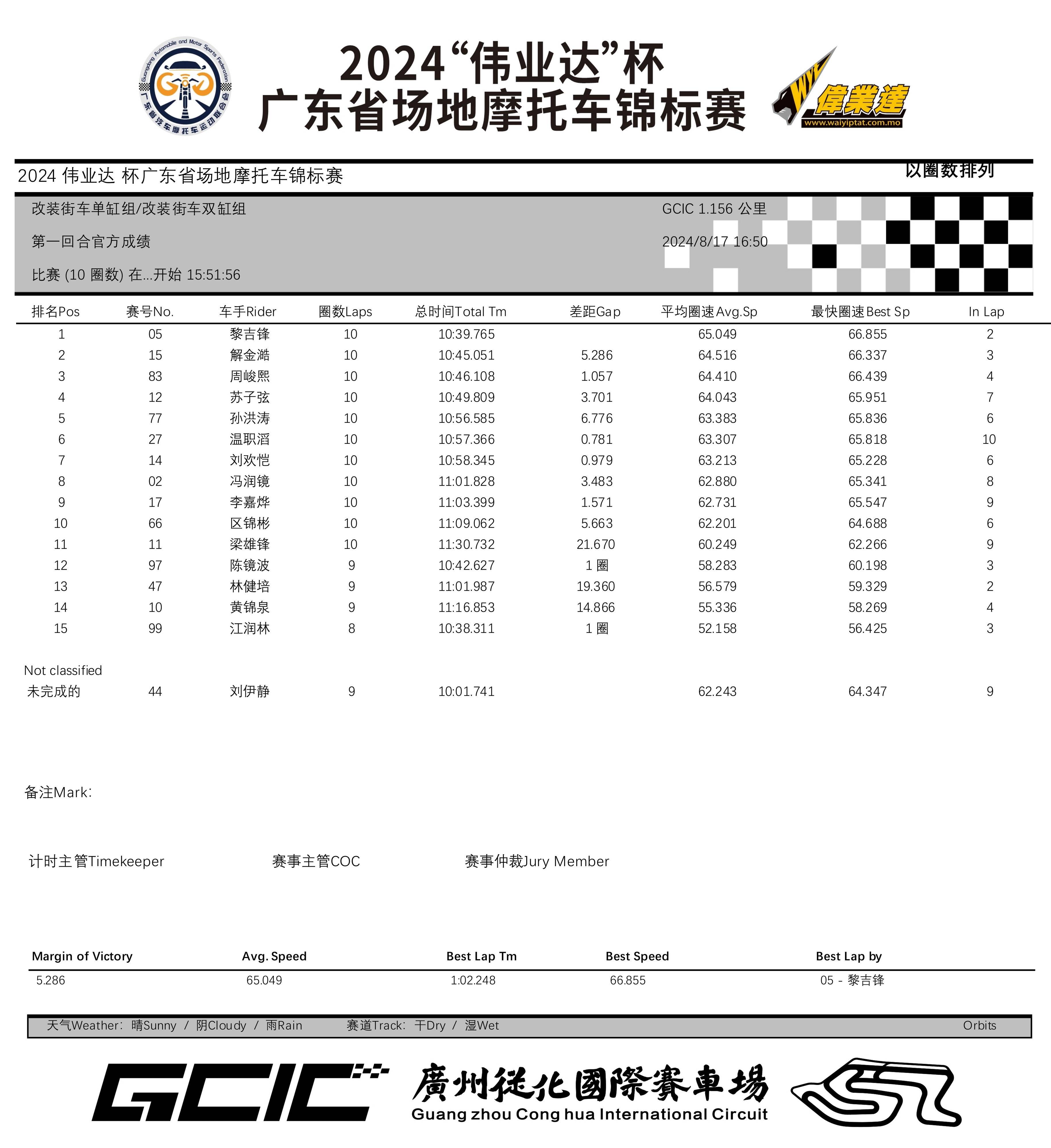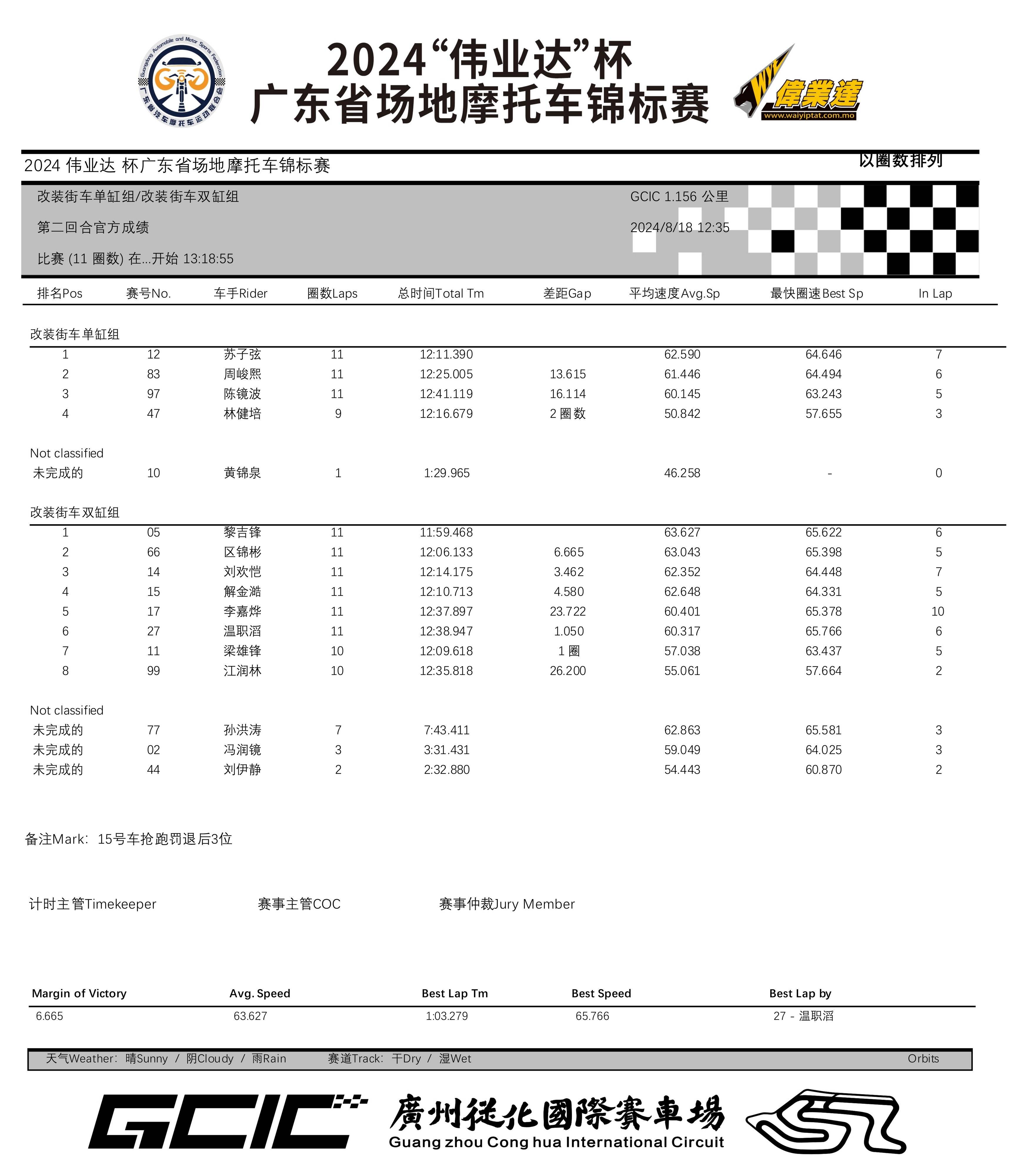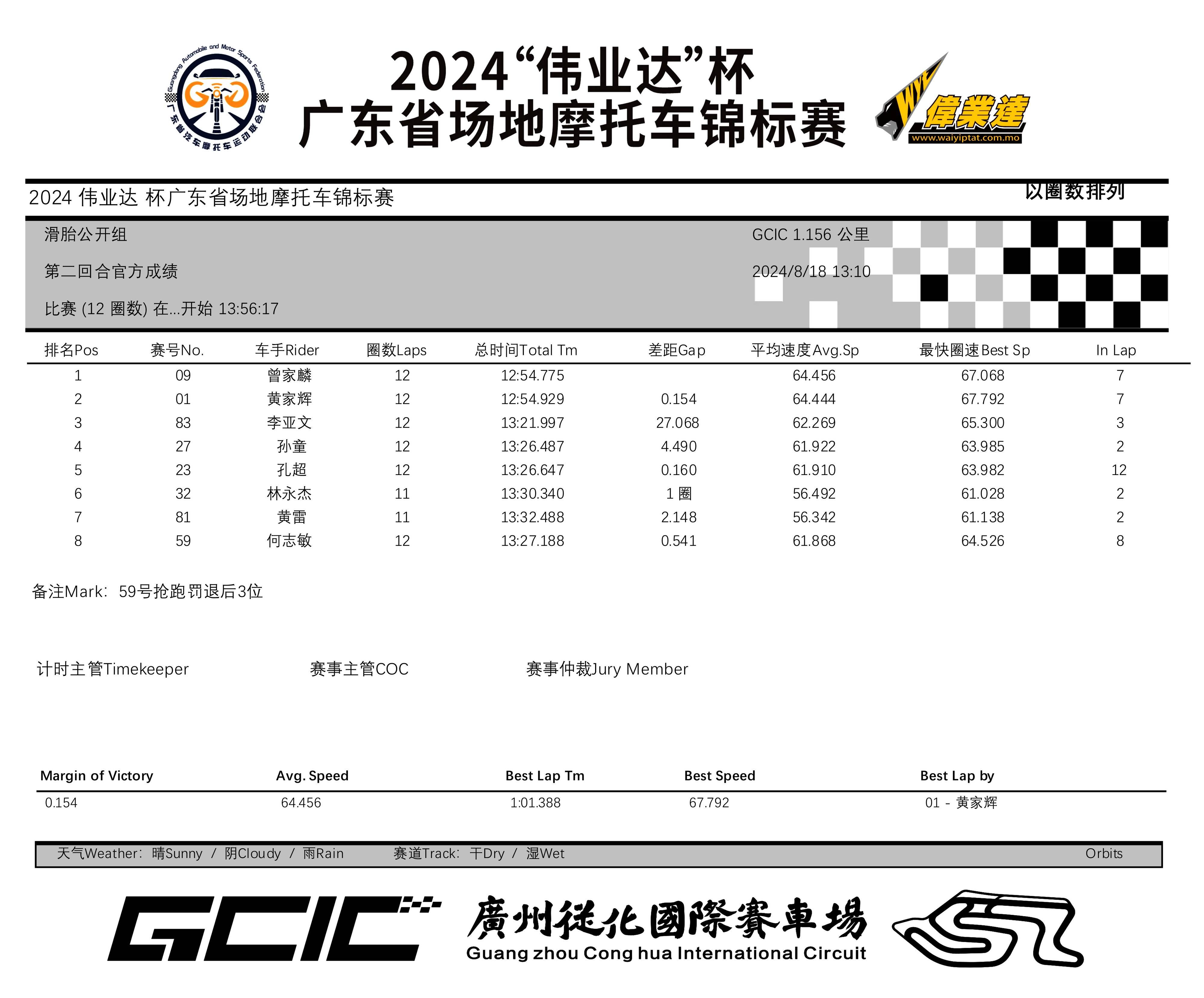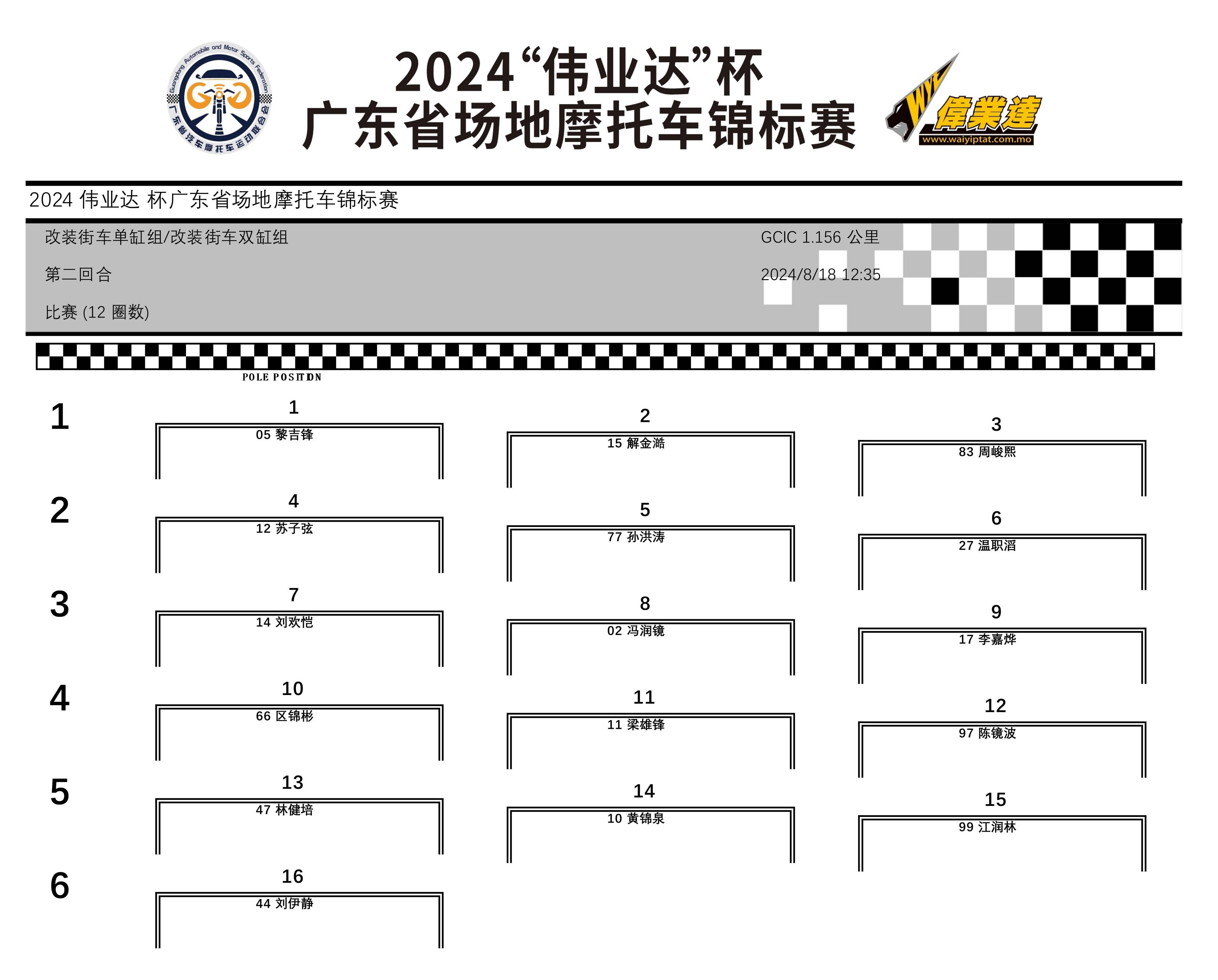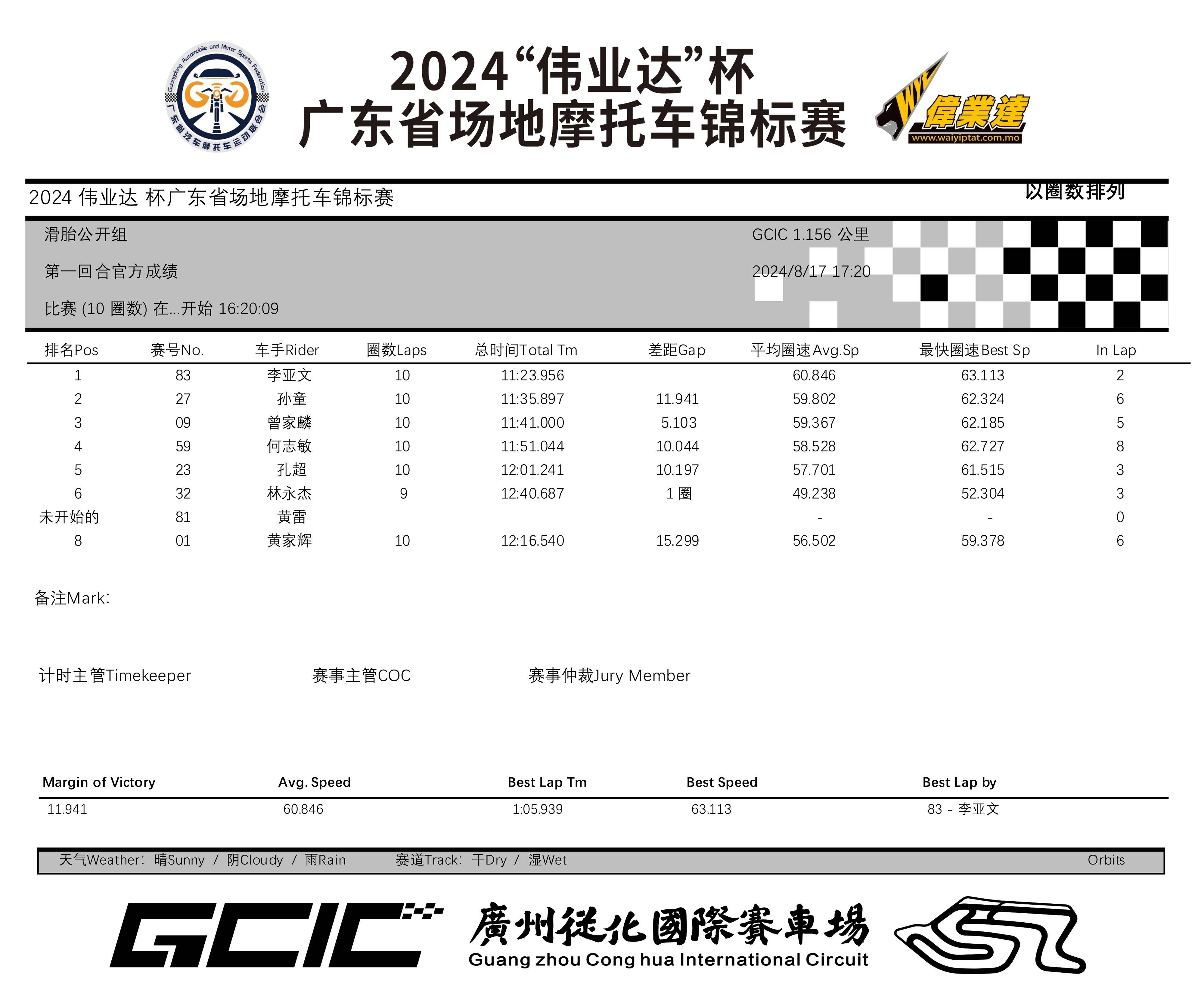 2024 偉業(yè)達(dá)杯 廣東省場(chǎng)地摩托車(chē)錦標(biāo)賽廣州從化站:成績(jī)
