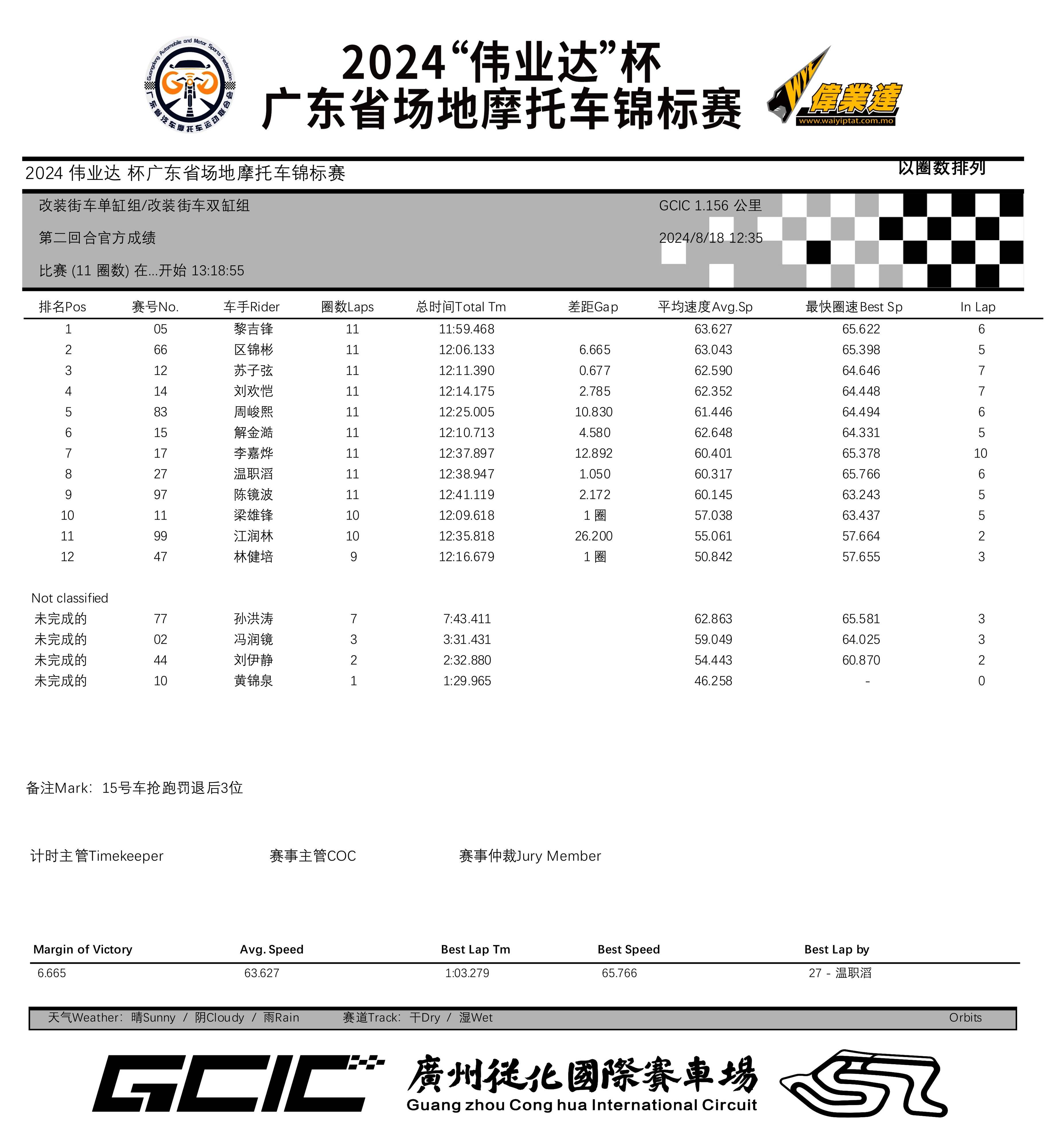 本站比賽是偉業(yè)達(dá) GP/偉業(yè)達(dá)杯首次在廣州從化國(guó)際賽車(chē)場(chǎng)舉行的較量,為期兩天的比賽、大部分的競(jìng)賽環(huán)節(jié)都在濕地之下進(jìn)行,各競(jìng)賽組別所跑出來(lái)的最快圈速紀(jì)錄如下: