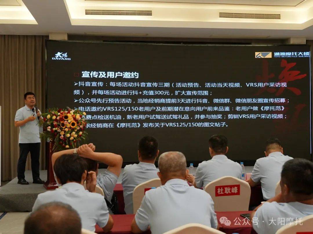 會(huì)議由北易公司營(yíng)銷副總監(jiān)杜耿峰為大家發(fā)布--大陽(yáng)VRS金大陽(yáng)紀(jì)念版,引人注目。大陽(yáng)VRS金大陽(yáng)紀(jì)念版是一款順勢(shì)而為,滿足用戶需求的臻品車型。