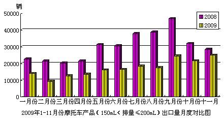 據(jù)海關(guān)提供出口統(tǒng)計(jì)數(shù)據(jù)顯示,由中國(guó)汽車工業(yè)協(xié)會(huì)編輯整理,現(xiàn)將2009年11月份摩托車產(chǎn)品(150mL<排量≤200mL)出口情況分析如下: