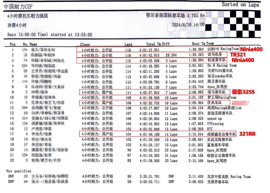 2024年 8 月15 -18 日,2024年CEF第二站鄂爾多斯站,共吸引國內(nèi)外三十支余車隊百多名車手參賽,諾馬極影325 榮獲國產(chǎn) 300cc-400cc組冠軍,諾馬鐵人TR321榮獲300cc-400cc公開組亞軍。