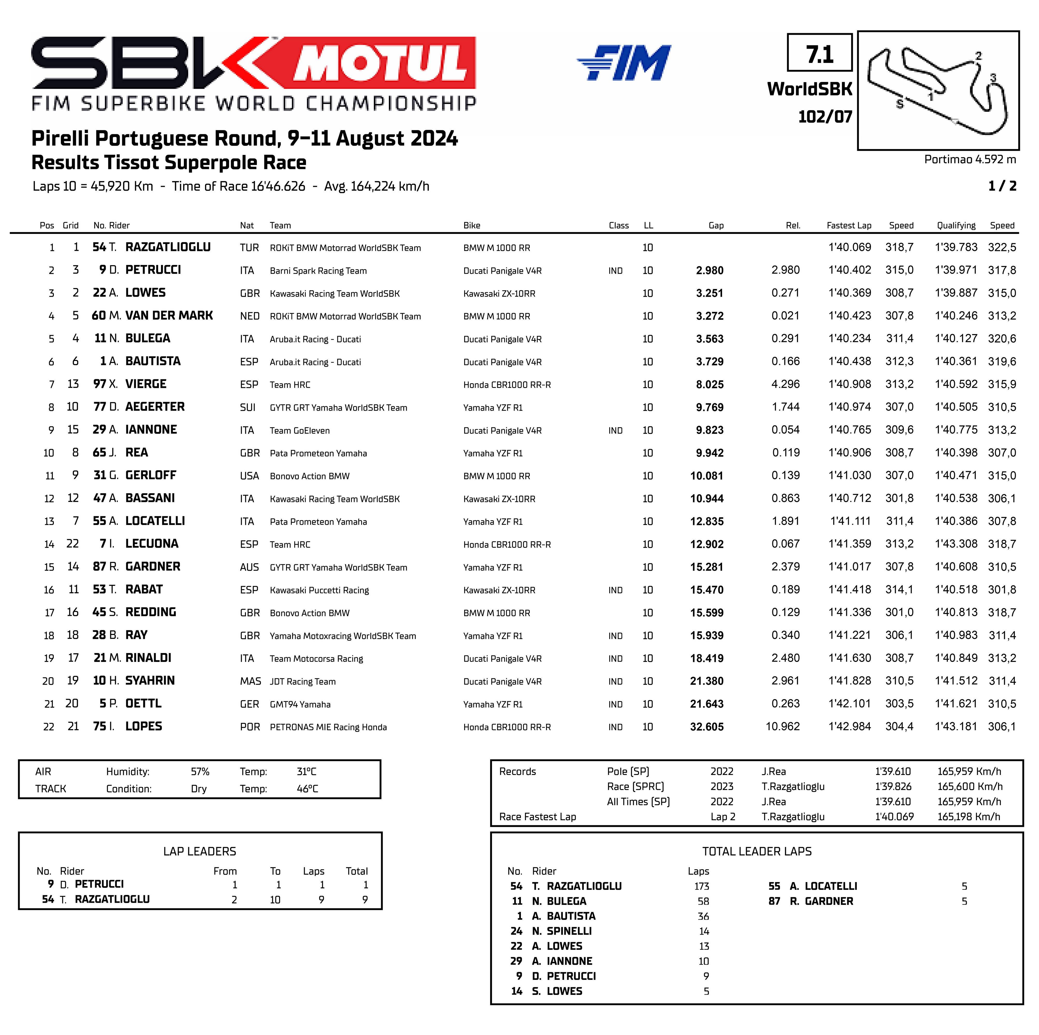 FIM WorldSBK 超級跑車世界錦標(biāo)賽(FIM Superbike World Championship)2024 賽季第七站的比賽,八月 9 - 11 日在葡萄牙的阿爾加維(Algarve,也稱之為 Portimao 波蒂芒)賽車場舉行。