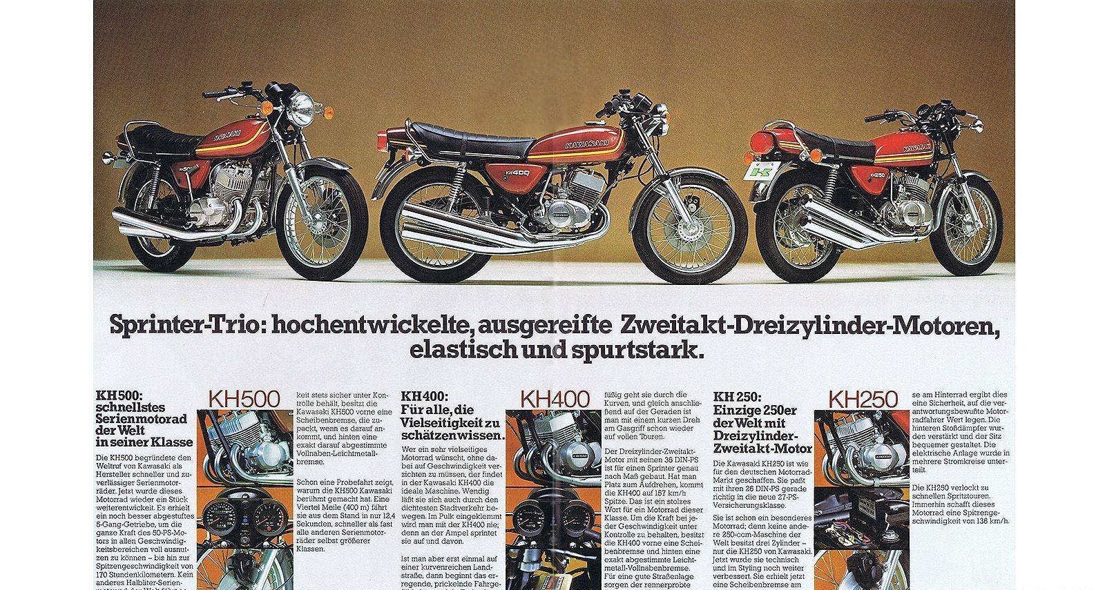 Mach III之后川崎陸續(xù)推出350c.c.、250c.c.的二沖程三缸車款