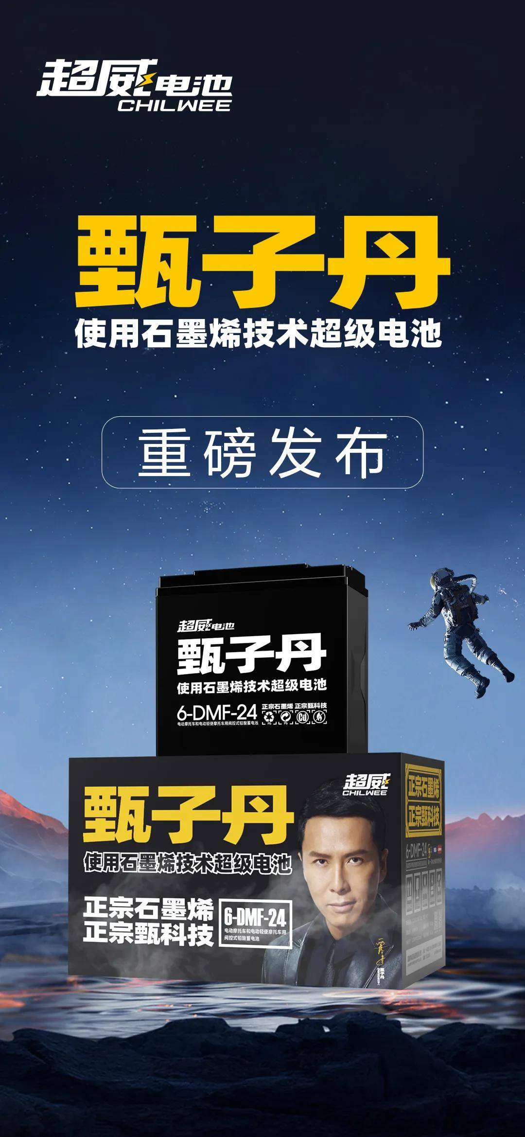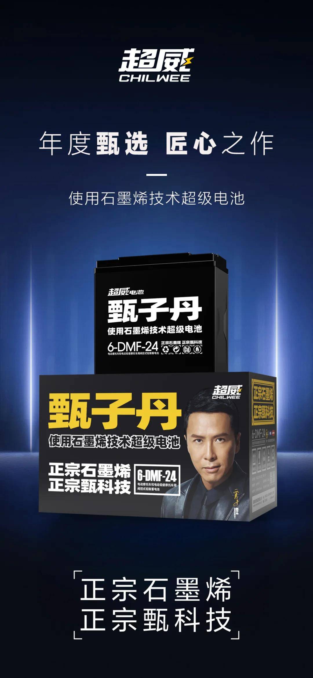 正宗石墨烯電池,就選超威!超威甄子丹使用石墨烯技術(shù)超級(jí)電池全球上市!
