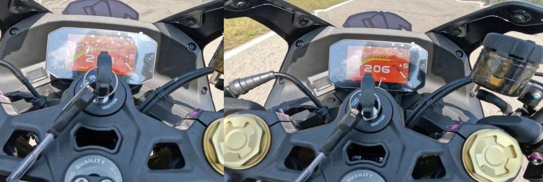 在大直線出來RR660拉到200+的速度,連續(xù)降檔補油很絲滑,后輪依然非常穩(wěn)定,完全沒有后輪鎖止的狀態(tài),表現(xiàn)驚艷;這套布雷博的對向四活塞卡鉗提供的強悍性能令人影響深刻,直線重剎入彎,從200km/h的速度三秒左右降到100km/h左右,制動力來的非常直接,沒有絲毫的不穩(wěn)定感,制動優(yōu)異,這是RR660作為“超賽”又一大亮點。“超賽”的電子快排