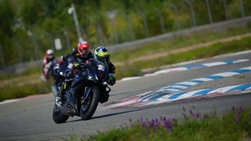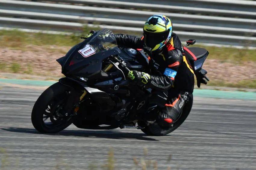 鄂爾多斯賽車場的高速彎,我們騎下來RR660可以用100出頭的時速過彎,職業(yè)車手可以將速度放到140以上,高速彎中沒有絲毫的不穩(wěn)定感,給人非常強的信心。在賽道里不停地開腿,磨膝,在輪胎已經(jīng)吃滿的狀態(tài)下,仍未能觸到探地釘,RR660的原廠傾角以及彎道性能足夠出色了,難以想象經(jīng)過賽道化改裝后,這輛車會擁有多強的彎道表現(xiàn)?通過經(jīng)典的馬背連續(xù)S彎,RR660的車架穩(wěn)定性、彎中循跡性表現(xiàn)都是相當出色,快速傾倒游刃有余,不過連續(xù)的傾倒快速翻身,還是能感覺到4缸引擎的重量感,需要騎手一定的駕駛技巧。稍不完美的是這套不可調(diào)的前避震器,在進彎前的重剎時會有一定的不穩(wěn)定感,這也是RR660的設(shè)定,兼顧了一定的日常使用的舒適性。不太理解為何不采用全可調(diào)的前避震,這樣可以在賽道中調(diào)硬一些,會有更出色的表現(xiàn)。這套CST高性能輪胎在我們連續(xù)的暴力駕駛,時速200+的重剎狀態(tài)下,抓地表現(xiàn)依然出色,原廠的輪胎在賽道中就能玩得很盡興。"超賽"的可變聲浪超賽也是需要足夠的好聲音加持,原廠配備可變閥門排氣提供兩種開啟方式,一種是運動模式下到3000rpm自動開啟閥門,另一種則是通過右手把位的閥門,一鍵開啟好聲音。開啟閥門后的聲浪明顯更渾厚,開閥后伴隨著轉(zhuǎn)速的攀升,聲浪非常的渾厚且高亢,給人的激情愉悅相當?shù)轿?,太讓人著迷?/strong>。