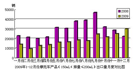 據(jù)海關(guān)提供出口統(tǒng)計(jì)數(shù)據(jù)顯示,由中國(guó)汽車(chē)工業(yè)協(xié)會(huì)編輯整理,現(xiàn)將2009年12月份摩托車(chē)產(chǎn)品(150mL<排量≤200mL)出口情況分析如下: