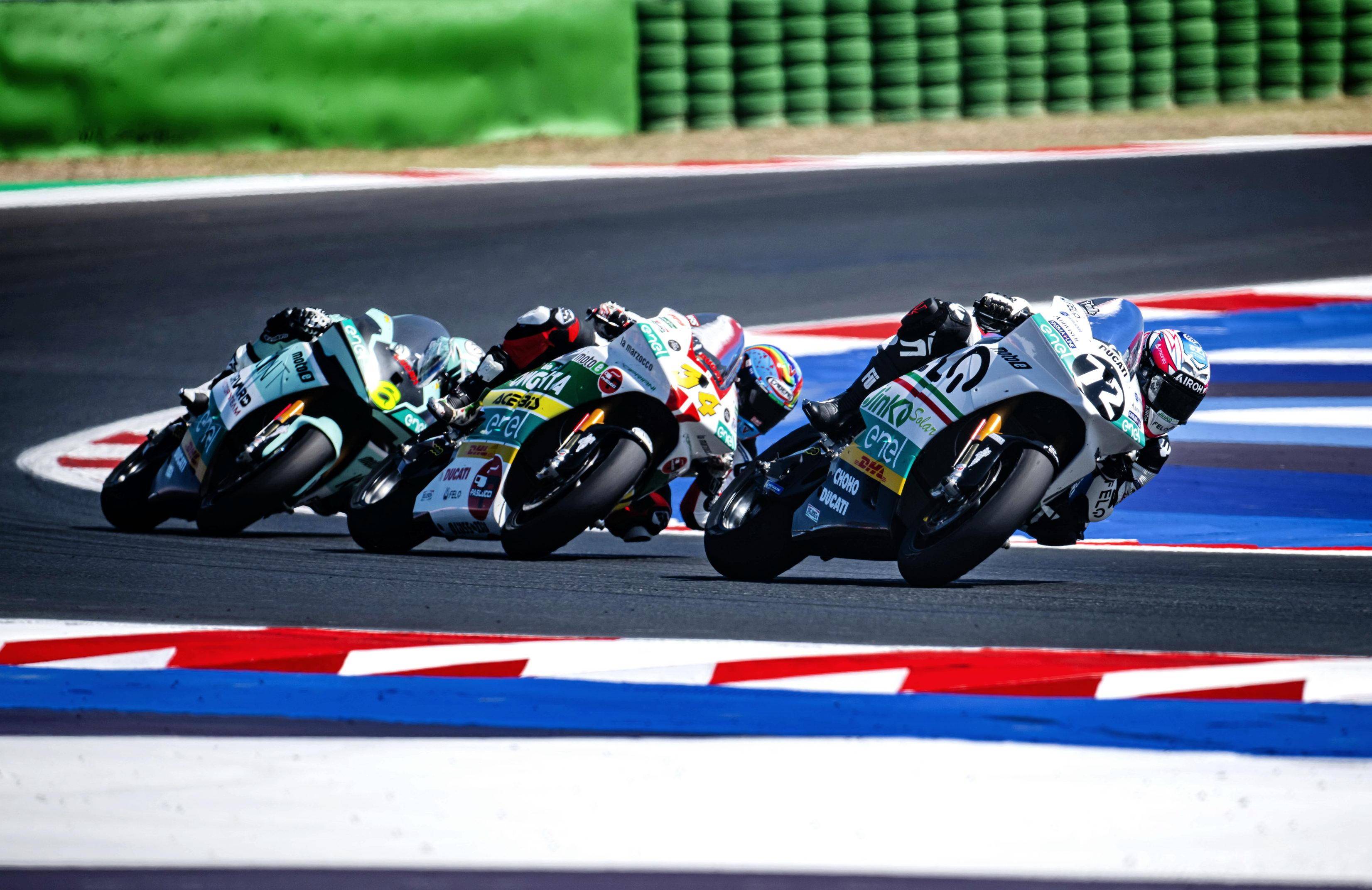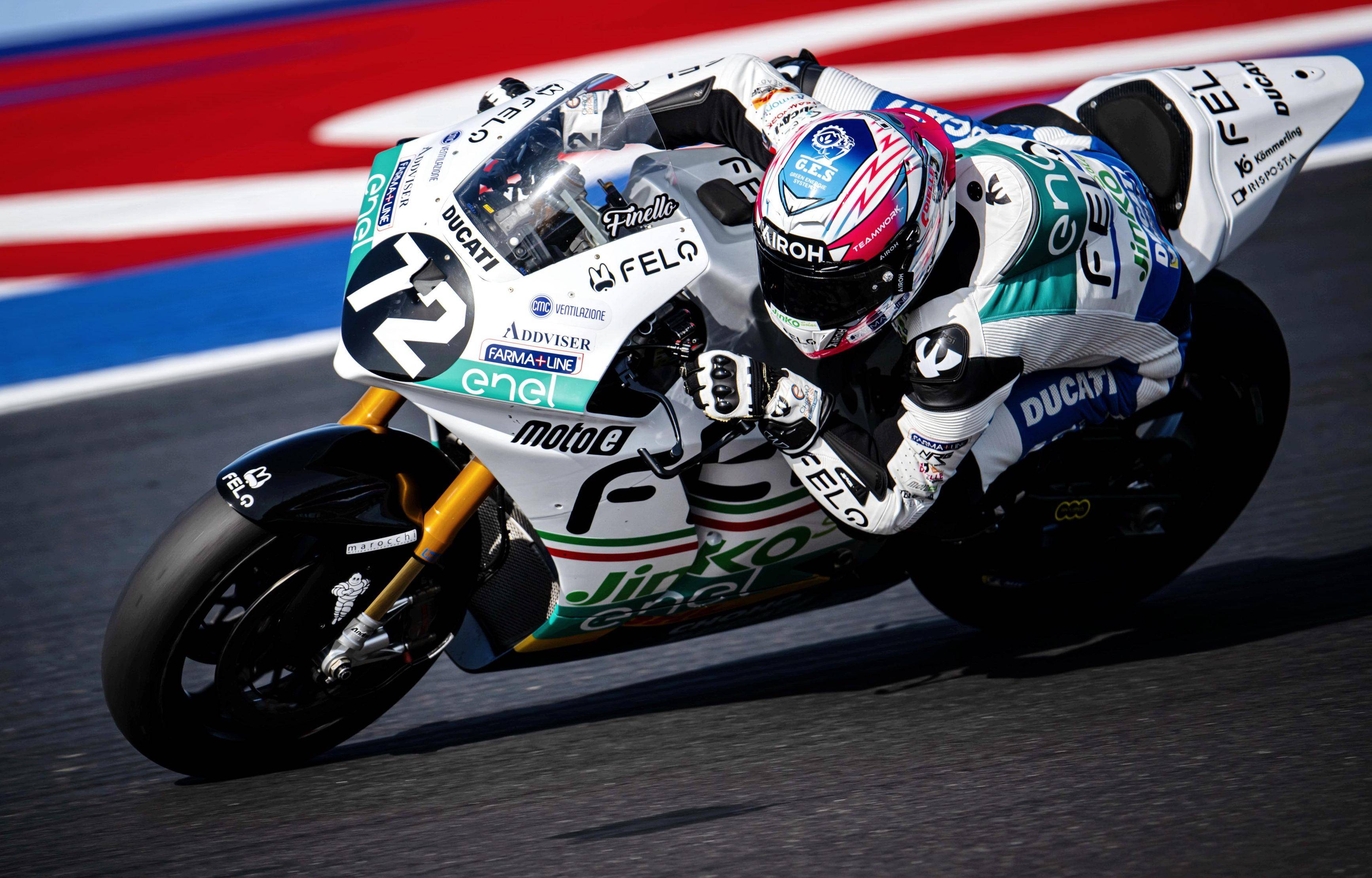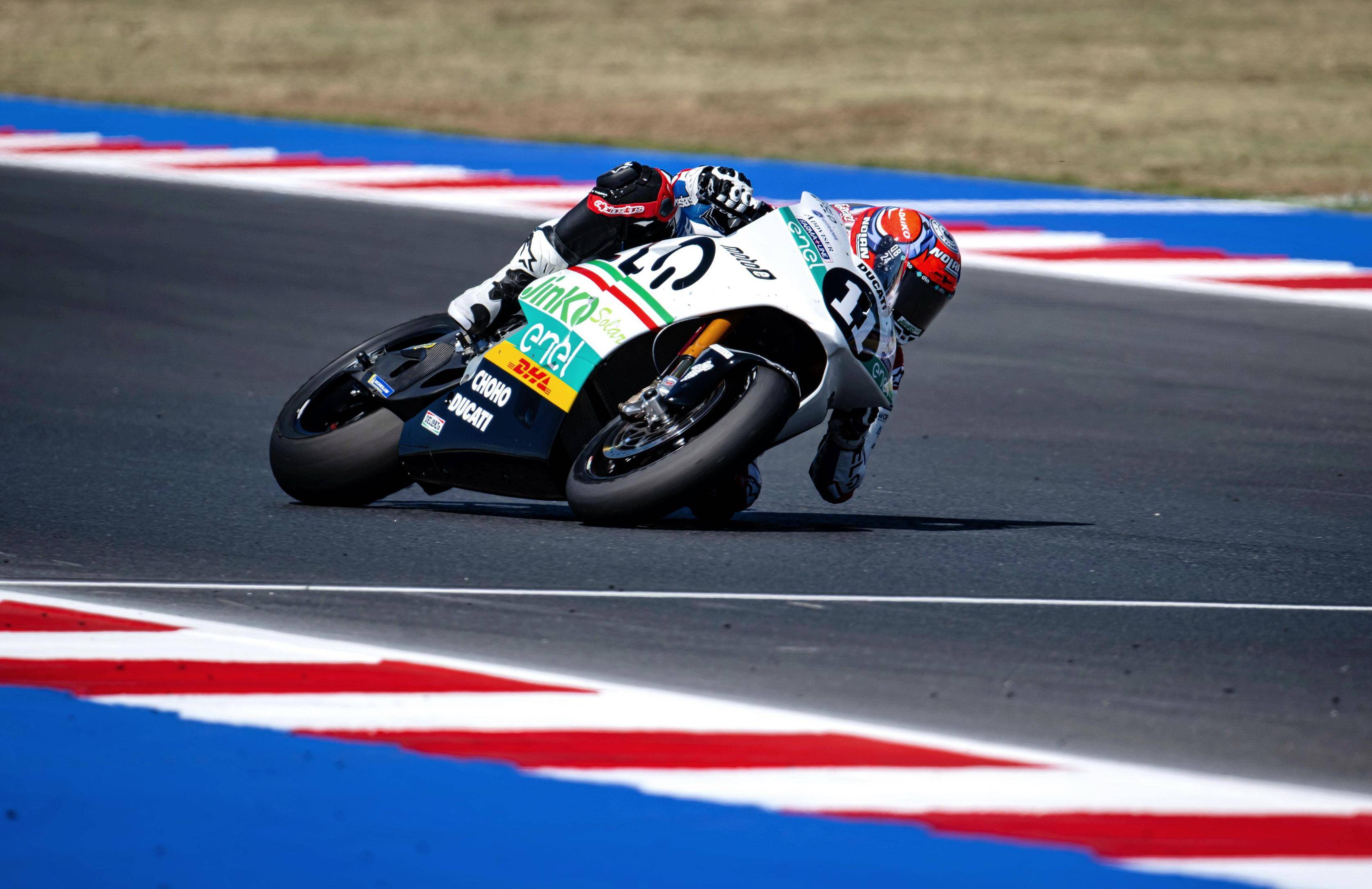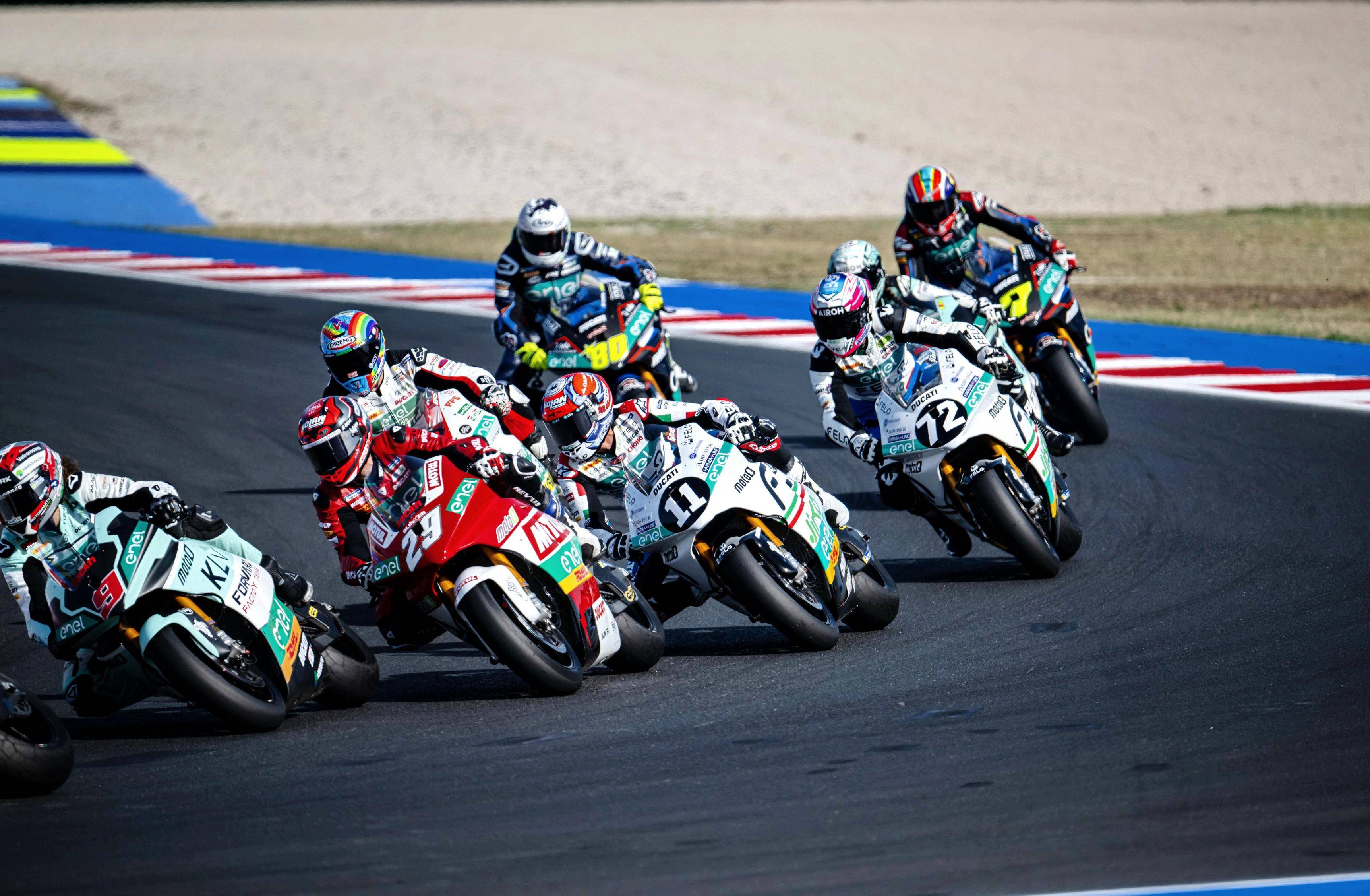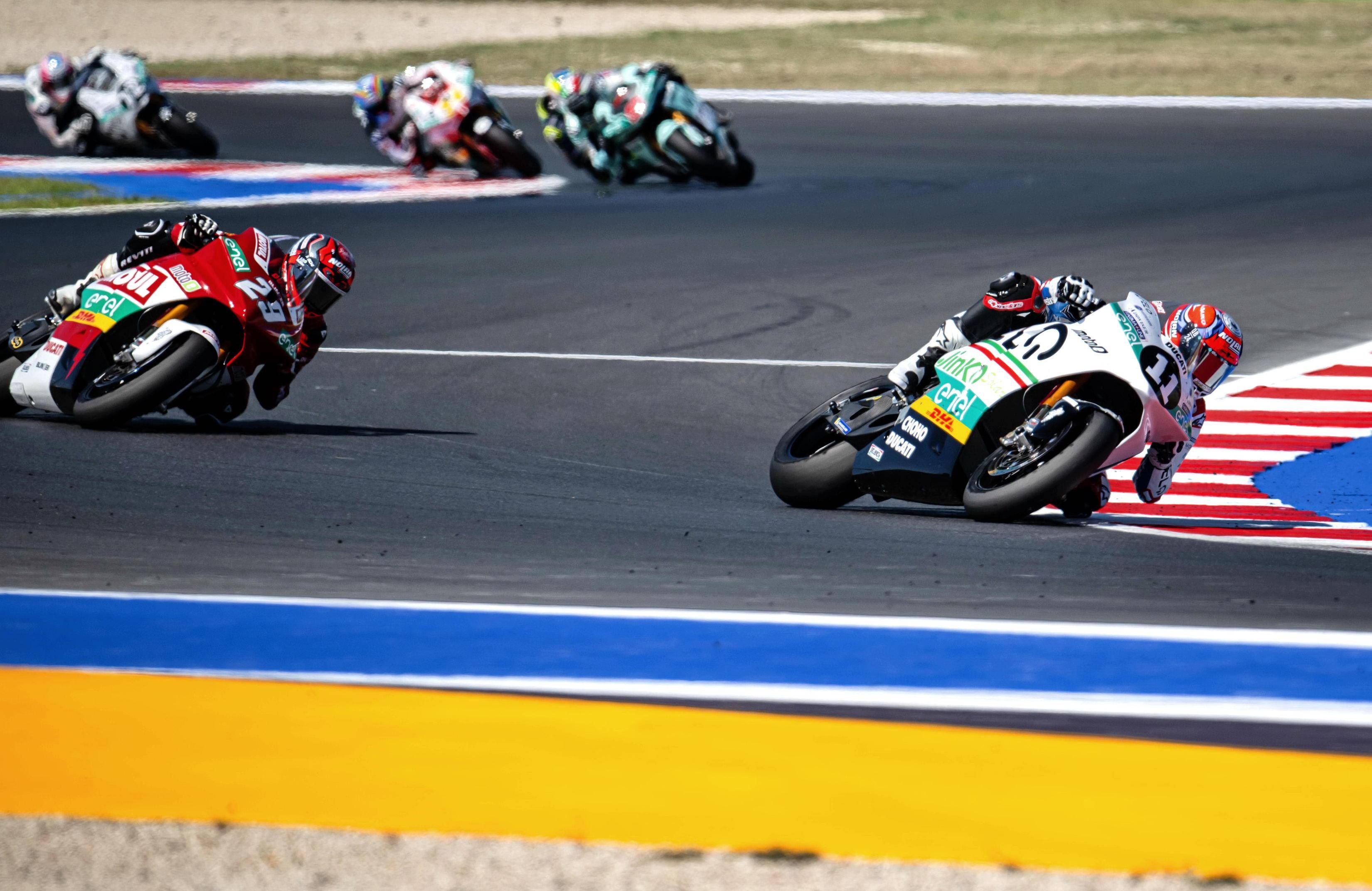 MotoE 的兩節(jié)比賽,每一節(jié)的賽程均為 8 圈、折合約 33.8 公里。從第十位出發(fā)的法拉利、在第一節(jié)比賽跑了兩圈之后就升上了第八位,到第 3 圈結(jié)束時(shí)他再超越了一位對(duì)手升上第七、并處于第二競(jìng)爭(zhēng)集體領(lǐng)頭的位置上,最終他奪得了第六名。 后面,努力加速的費(fèi)內(nèi)洛最后奪得了第十二名。