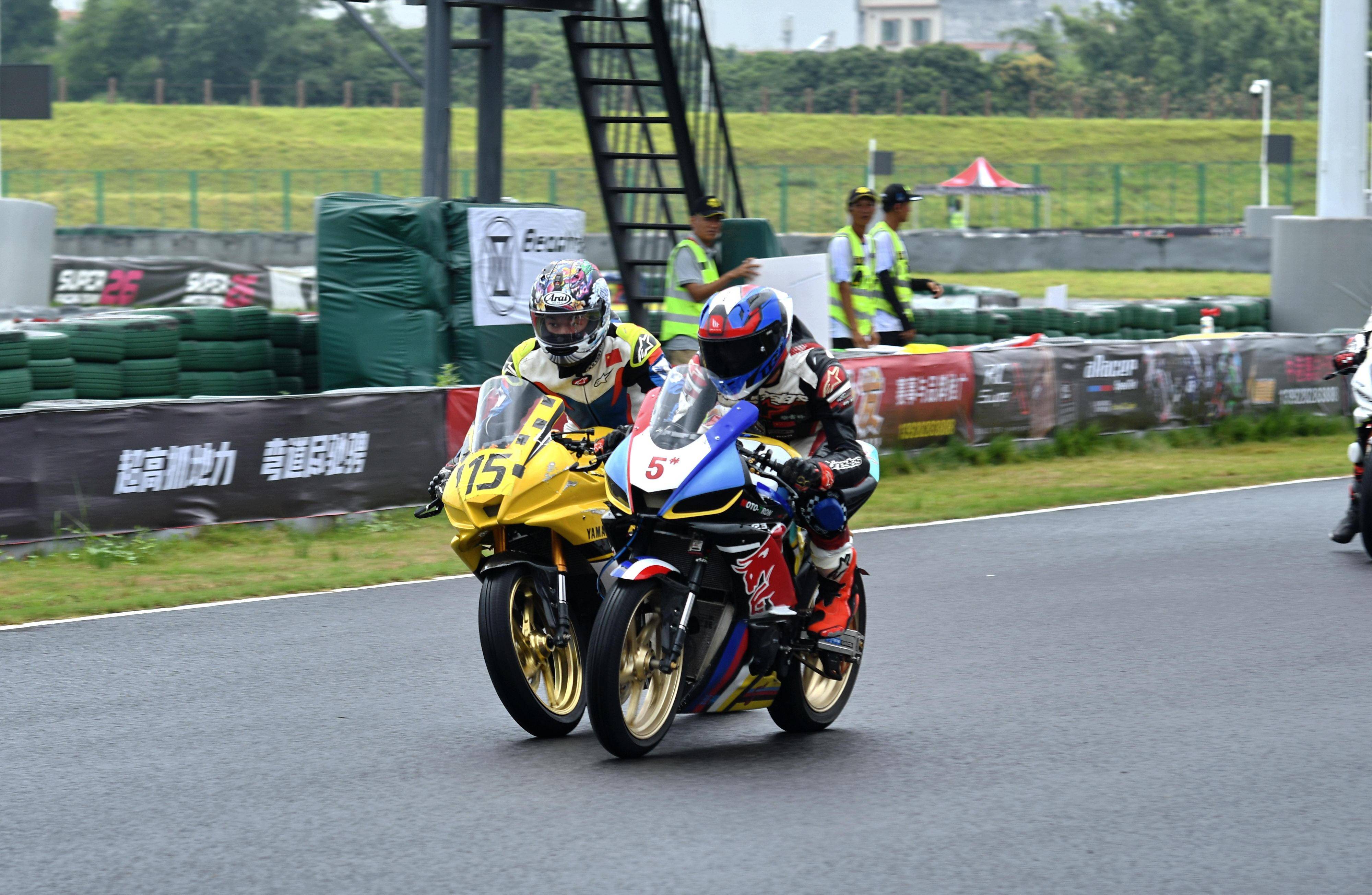 賽前的排位,5 號(hào)車(chē)的黎吉鋒(雙缸組)延續(xù)著第一站南京時(shí)的強(qiáng)勢(shì),拿下了第一節(jié)比賽的排頭位發(fā)車(chē);15 號(hào)車(chē)的解金澔(雙缸組)、83 號(hào)車(chē)的周峻熙(單缸組)分別排在第二、第三位起步。